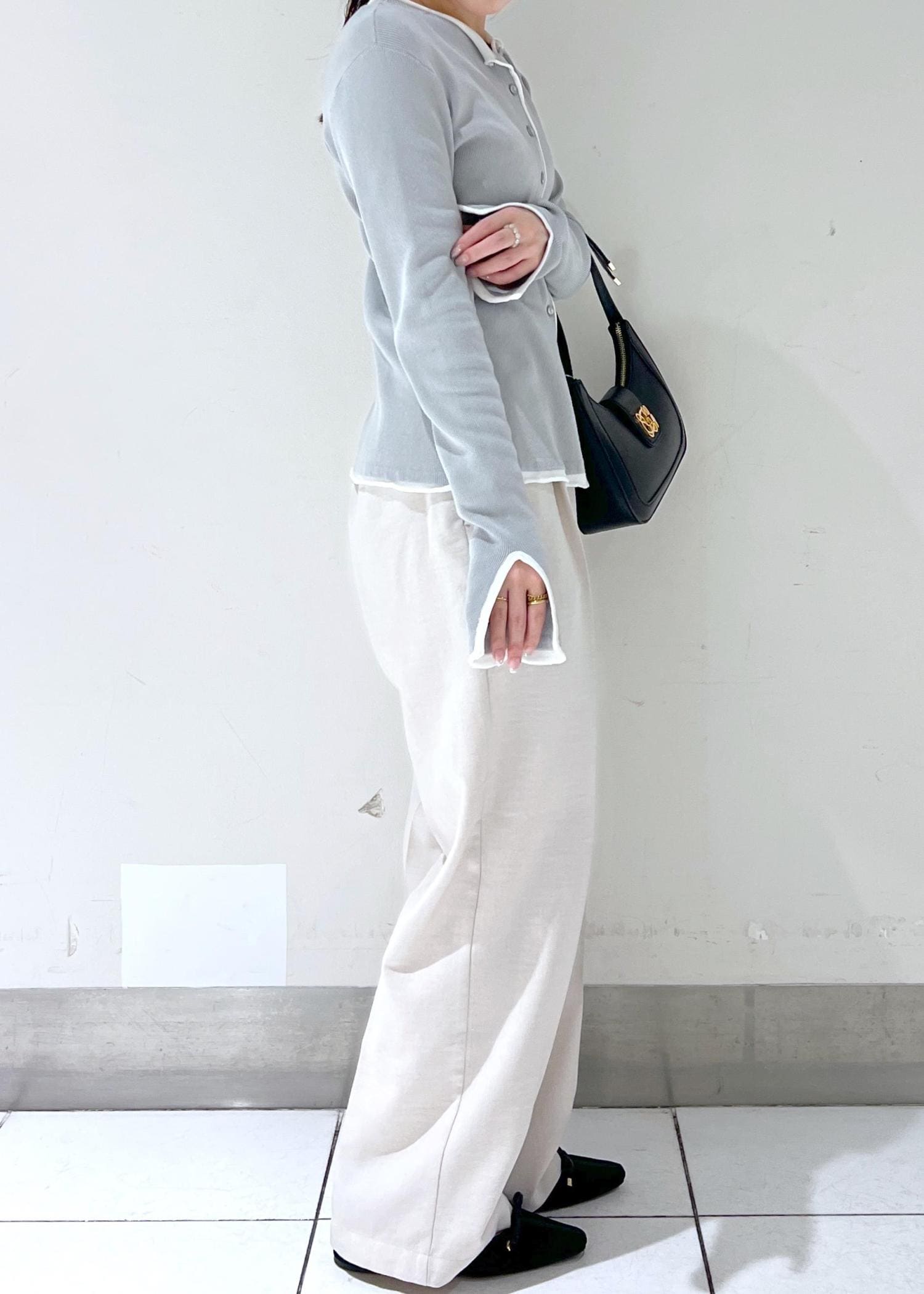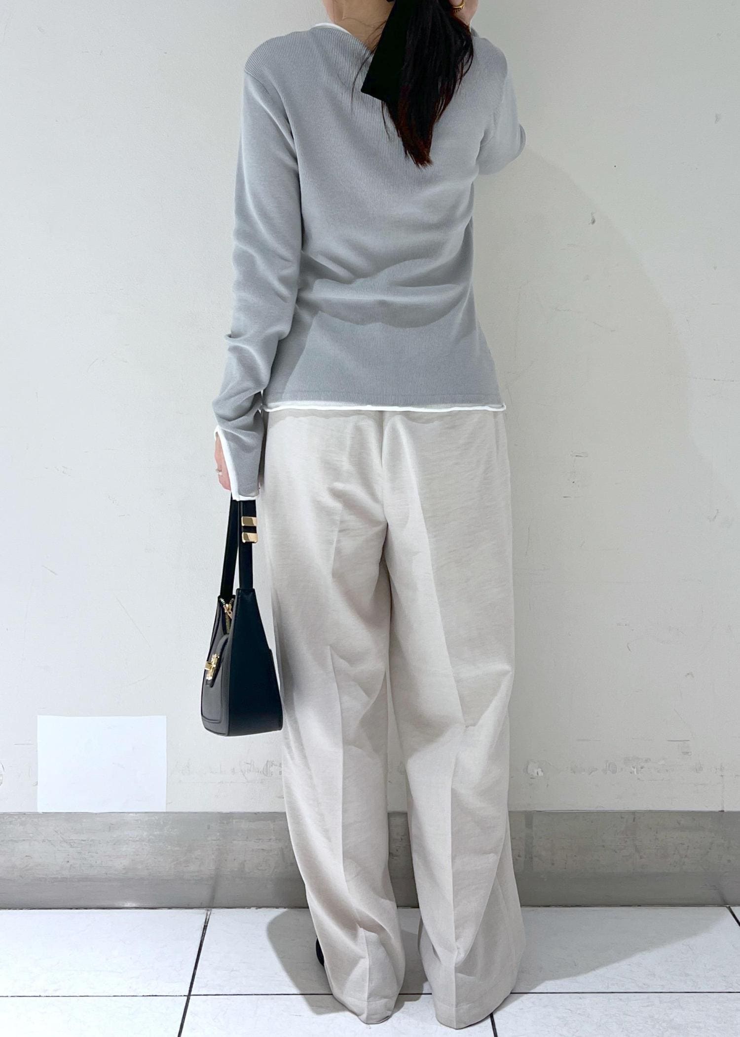 肌触りの優しい生地で、袖は長めで女性らしく、バイカラーのトレンド感があります◎ -