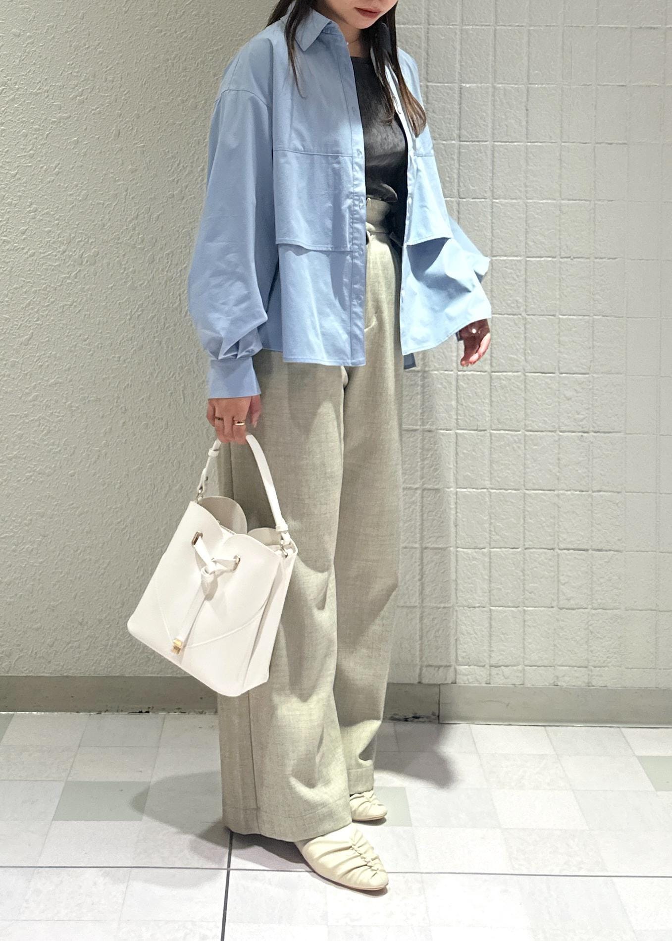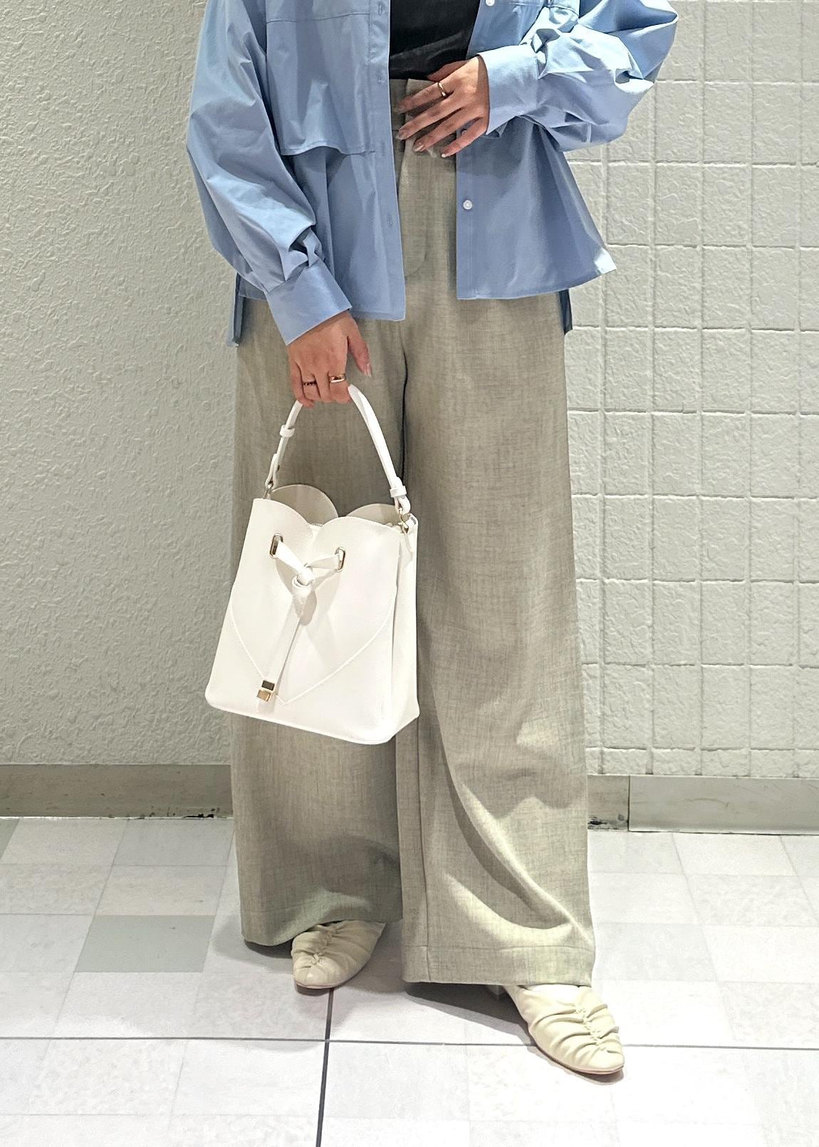 重たくなりすぎないように足元とバッグは白系で爽やかにしています!
