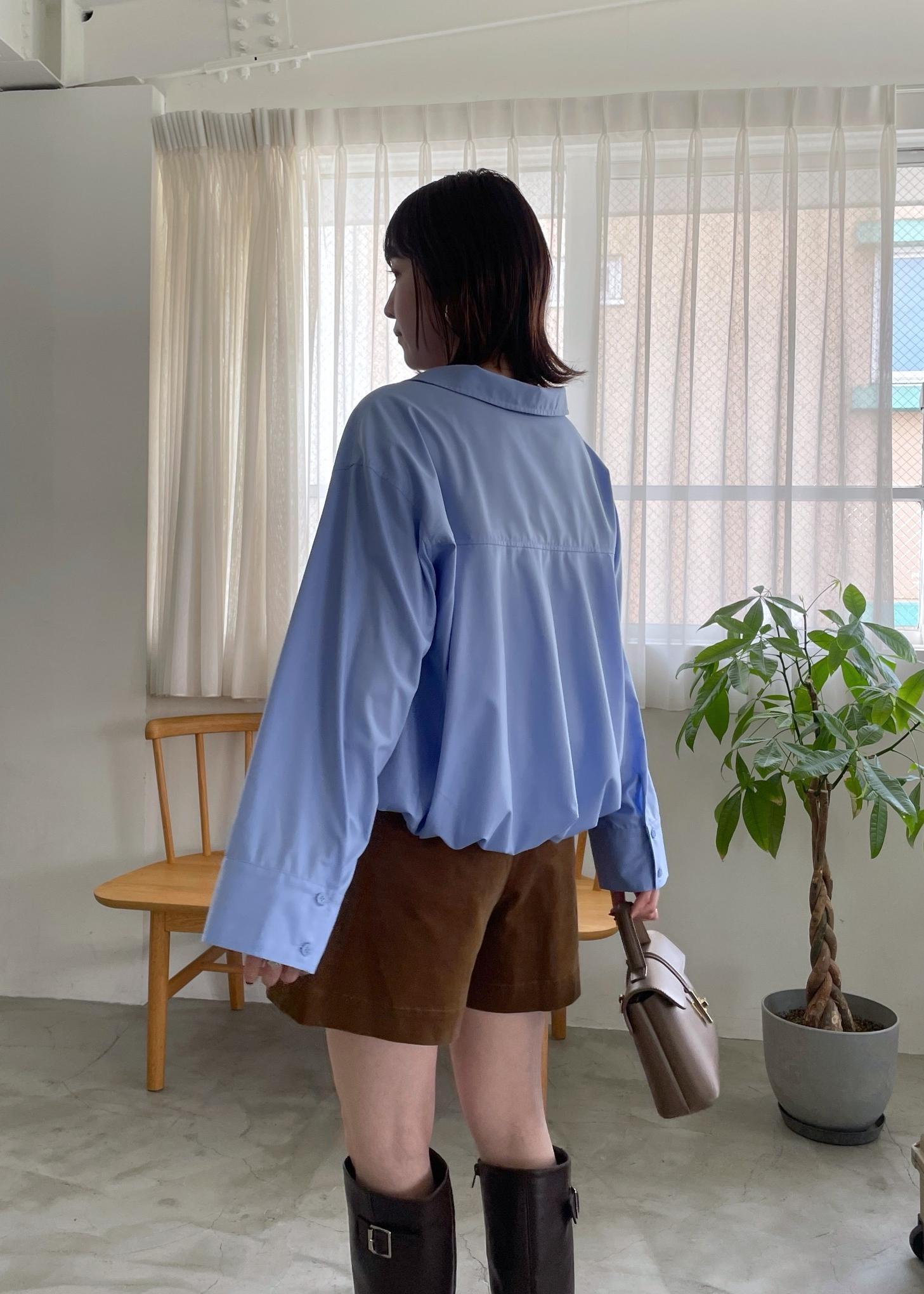 VIS【WEB限定】バルーンペプラムブラウスサックス / F¥3,293レビュー身長159cmでちょうど腰くらいの着丈、バルーンシルエットで裾にボリュームがあるので腰回りの体型カバーをしてくれます◎身幅は広めでゆったり着れるサイズ感、骨ストさんは釦を1.2個開け首元見せて着用すると膨張せずスッキリ着れます♡