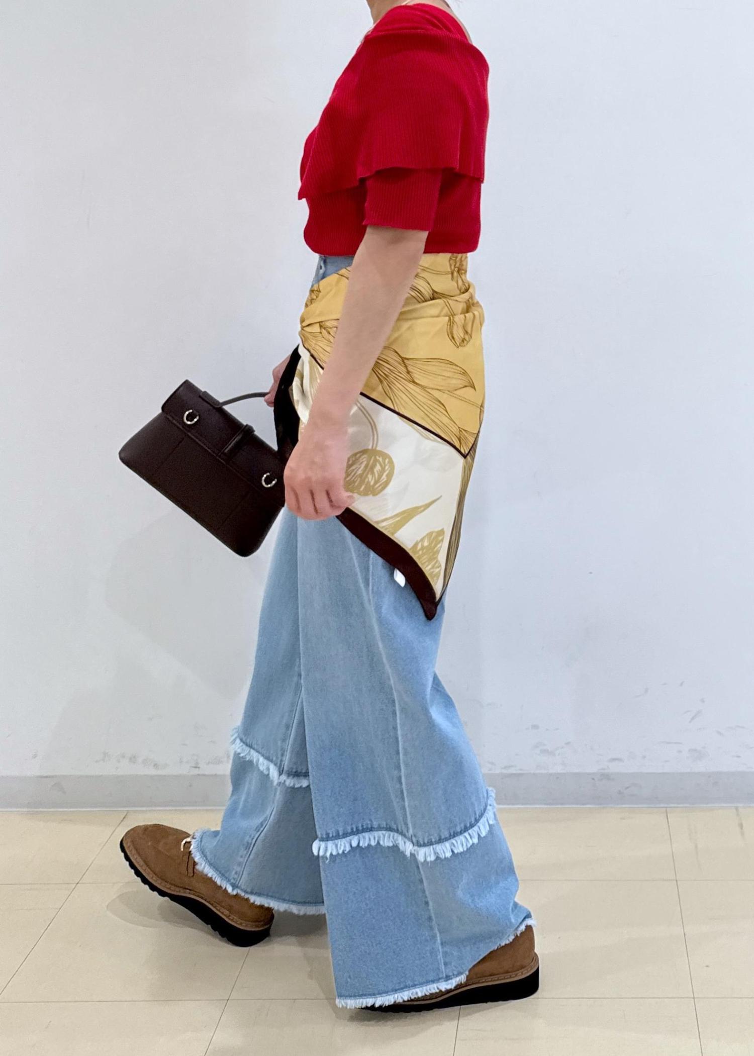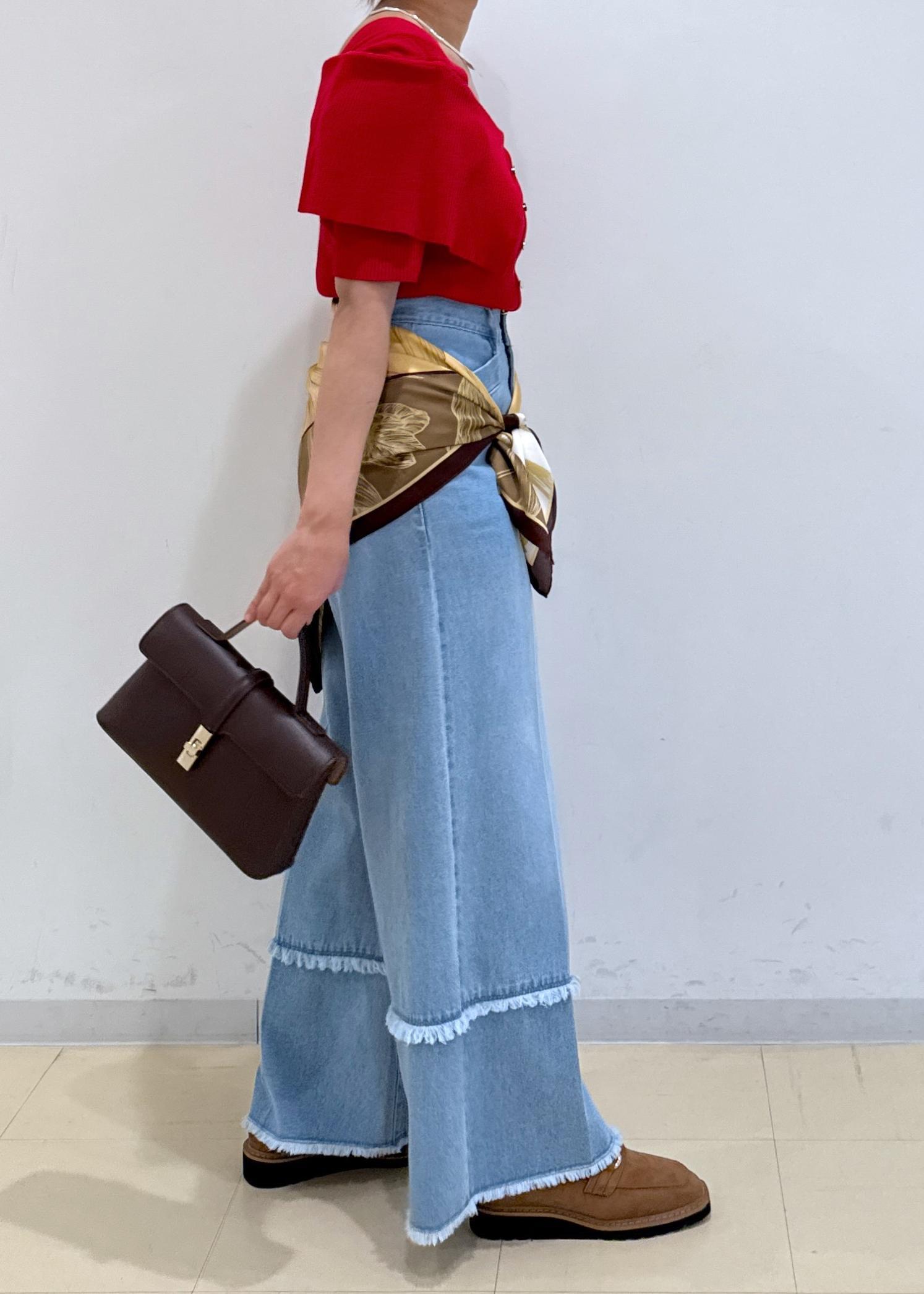 VISフリンジフレアデニムサックス / S¥4,395レビューセンタープレスが入ってるため、足のラインを拾わないです◎