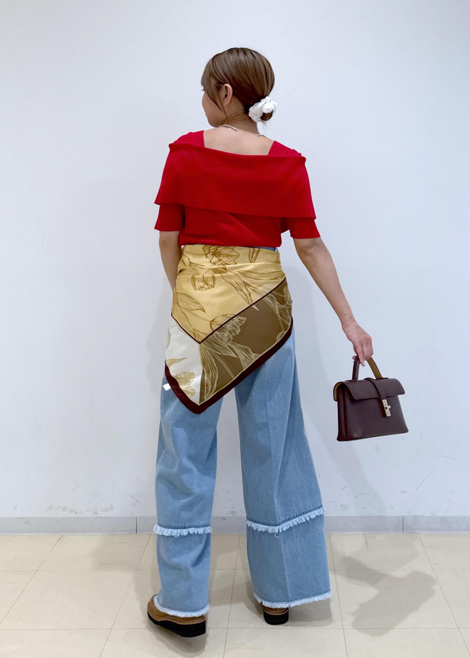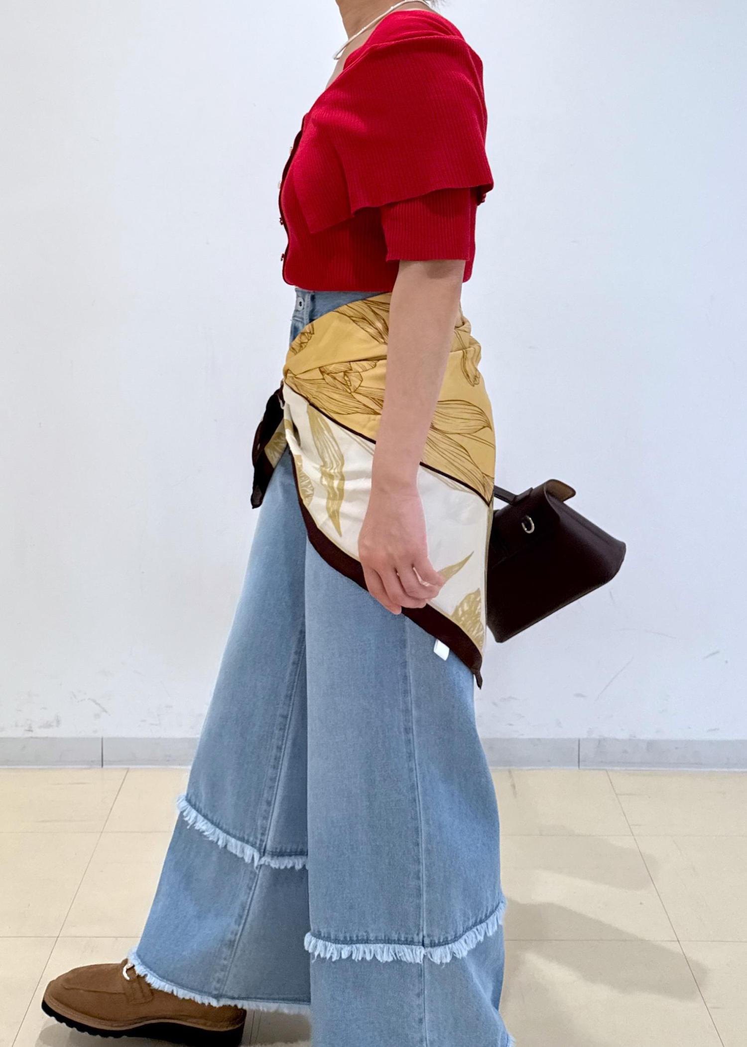 大きめのスカーフなので半分に折り、腰に巻いてもお尻がしっかりと隠れました! -