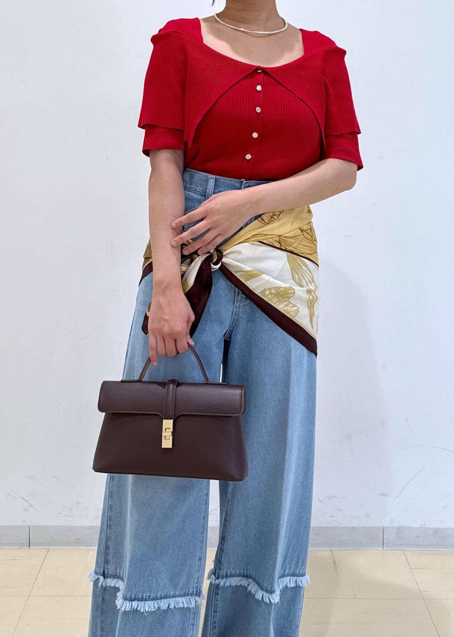 VISビックカラーオフショルハーフスリーブニットレッド / F¥2,963レビュー首元が開いてるのでスッキリ見え、ビックカラーで小顔効果もあります!