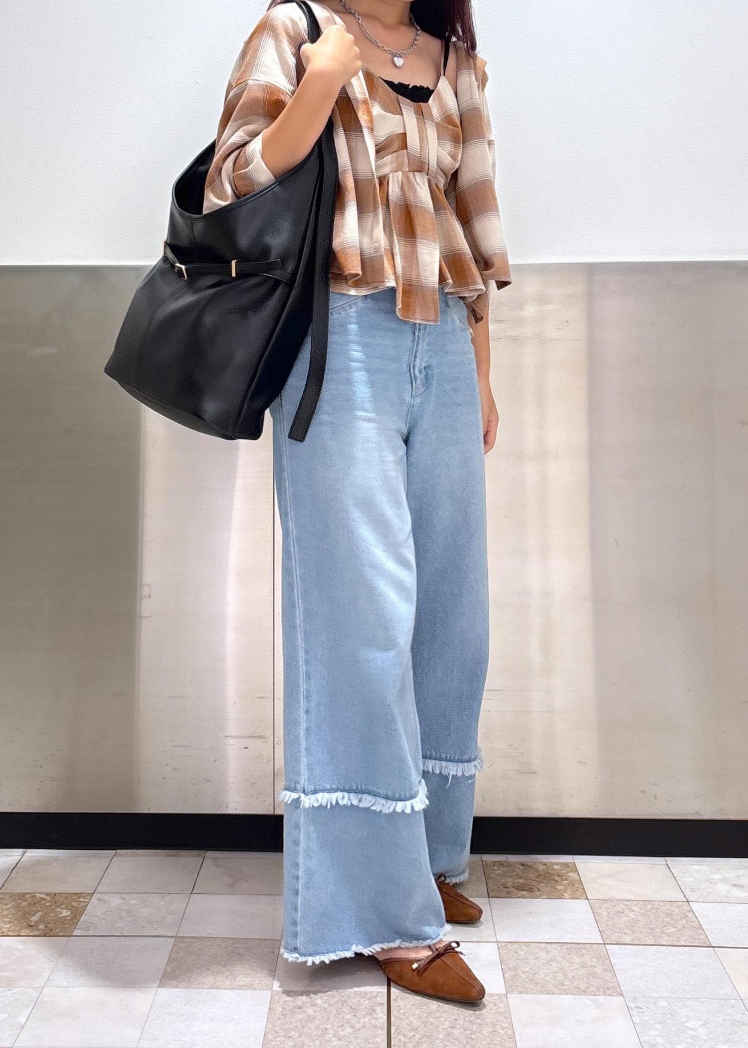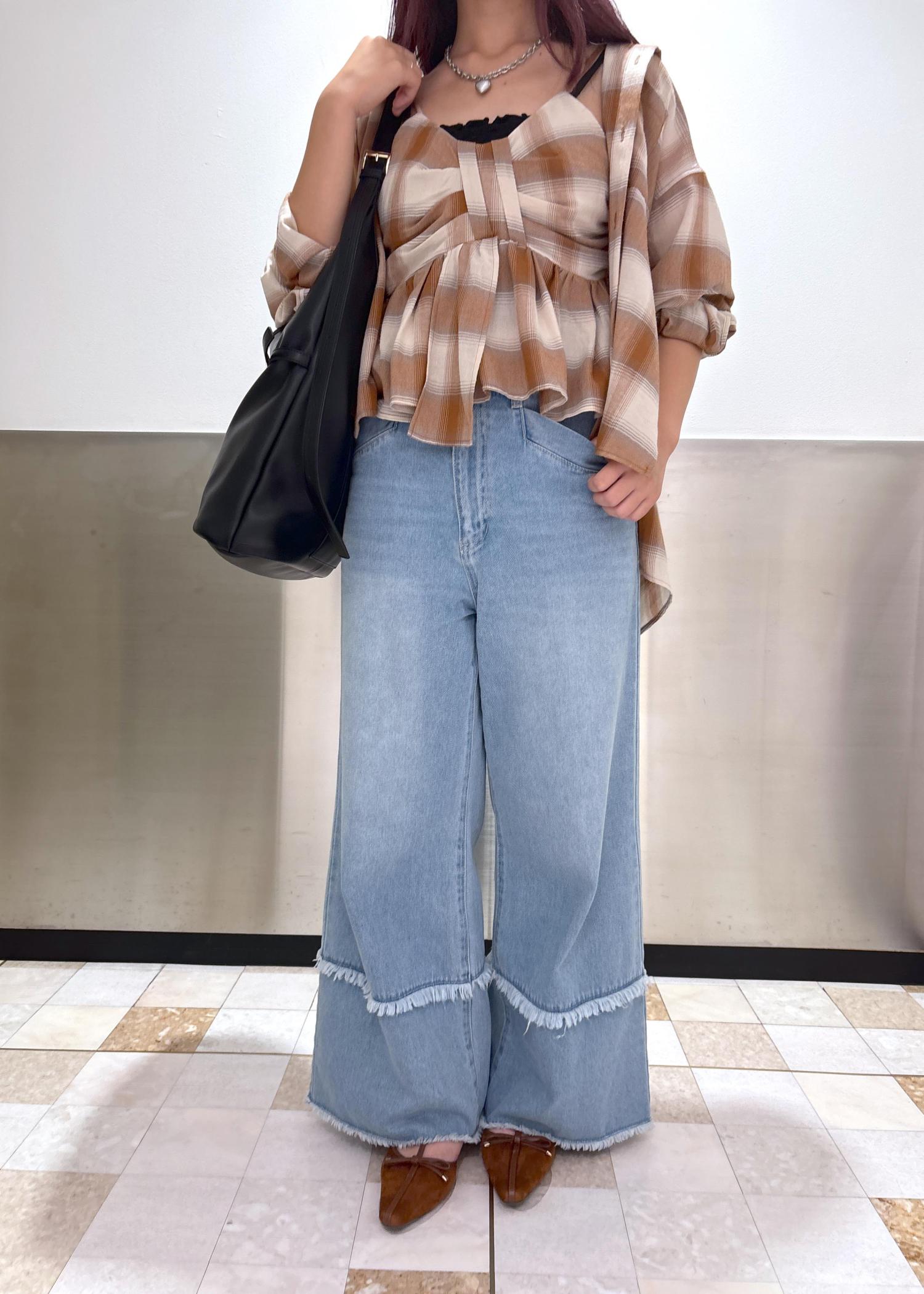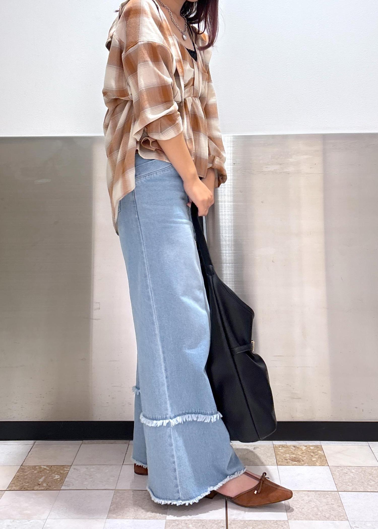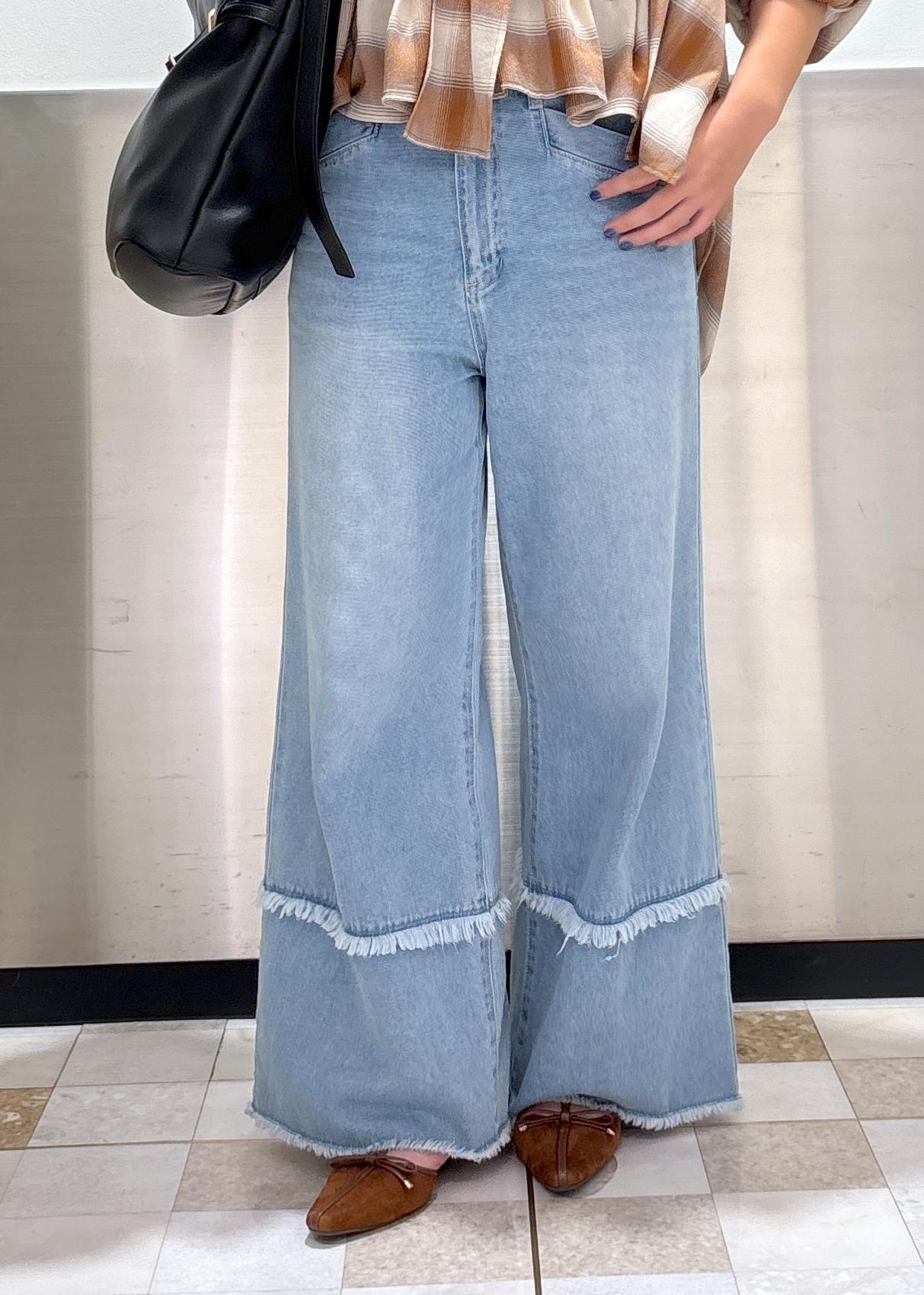 VISフリンジフレアデニムサックス / M¥4,395レビューフリンジデザインがポイントのデニムです!フレアシルエットなので美脚効果抜群です◎オールシーズン使っていただける生地になっています!
