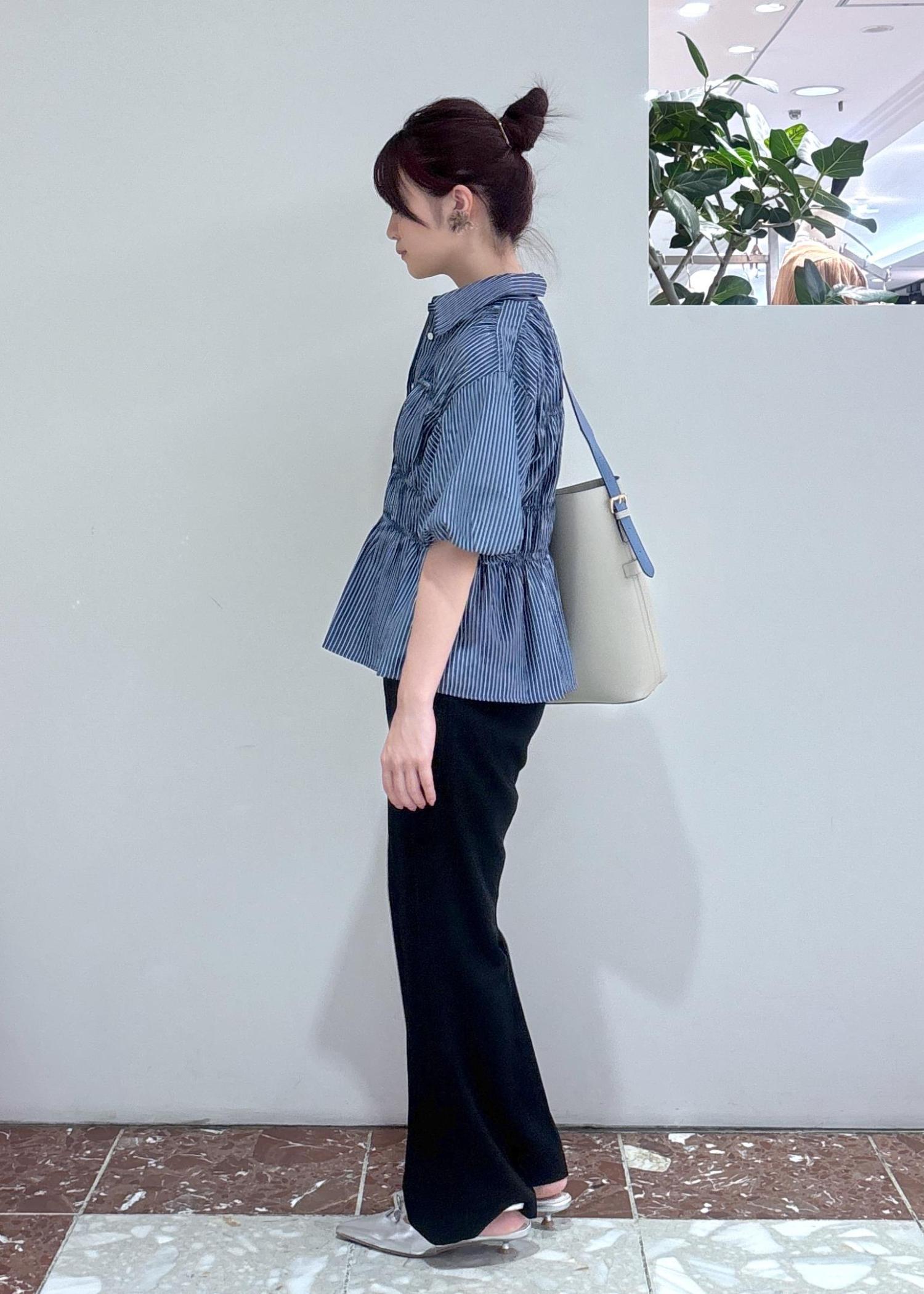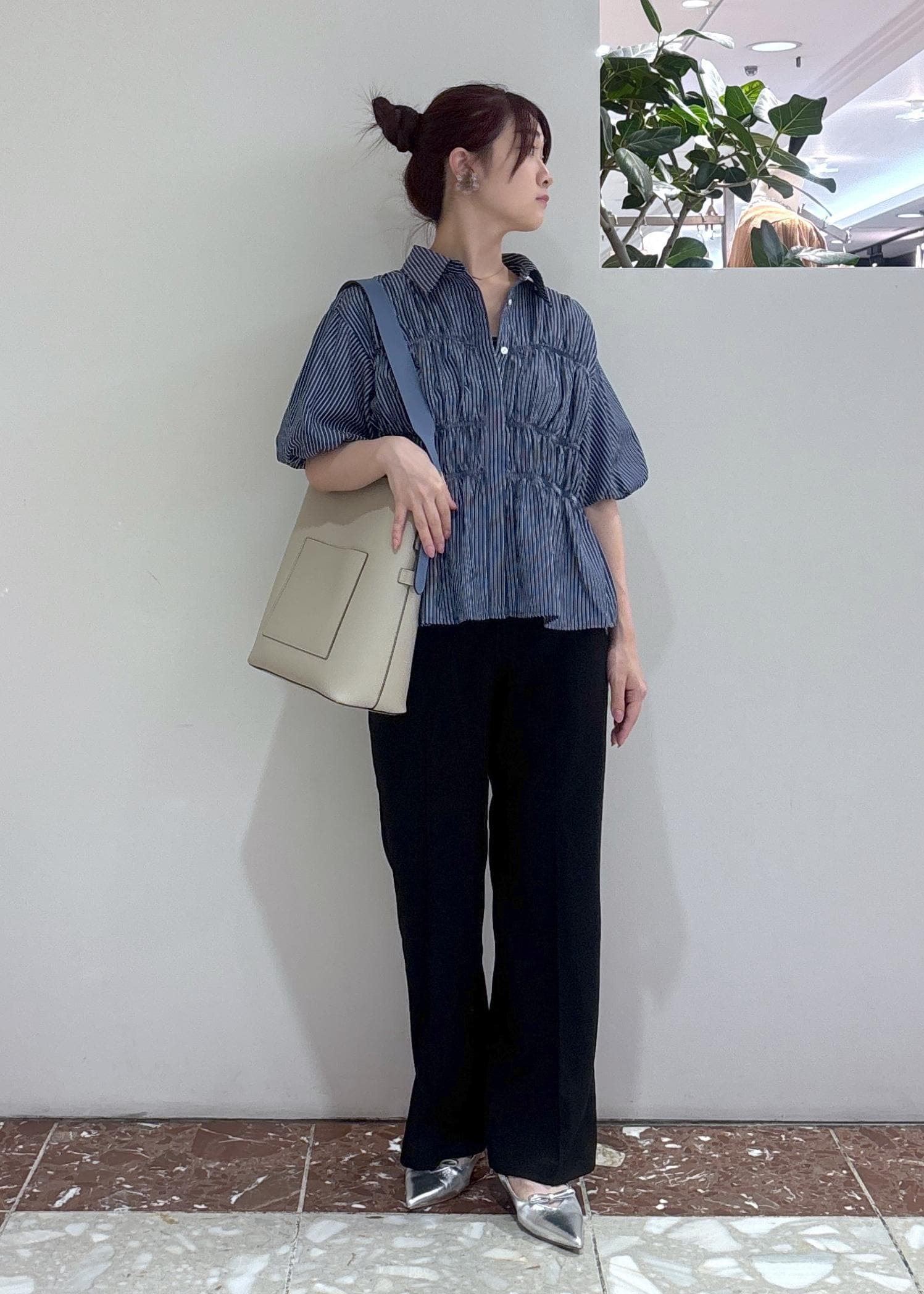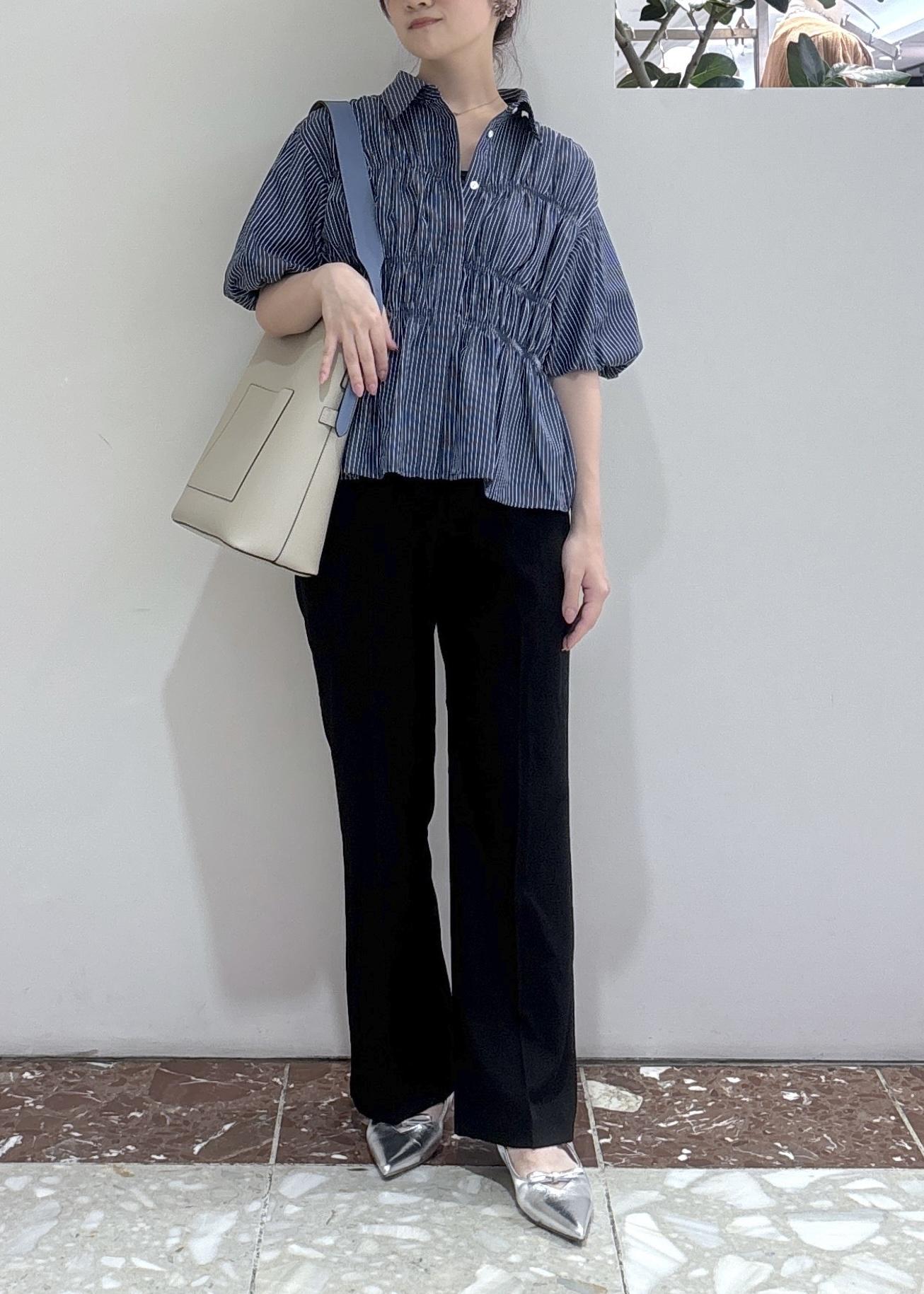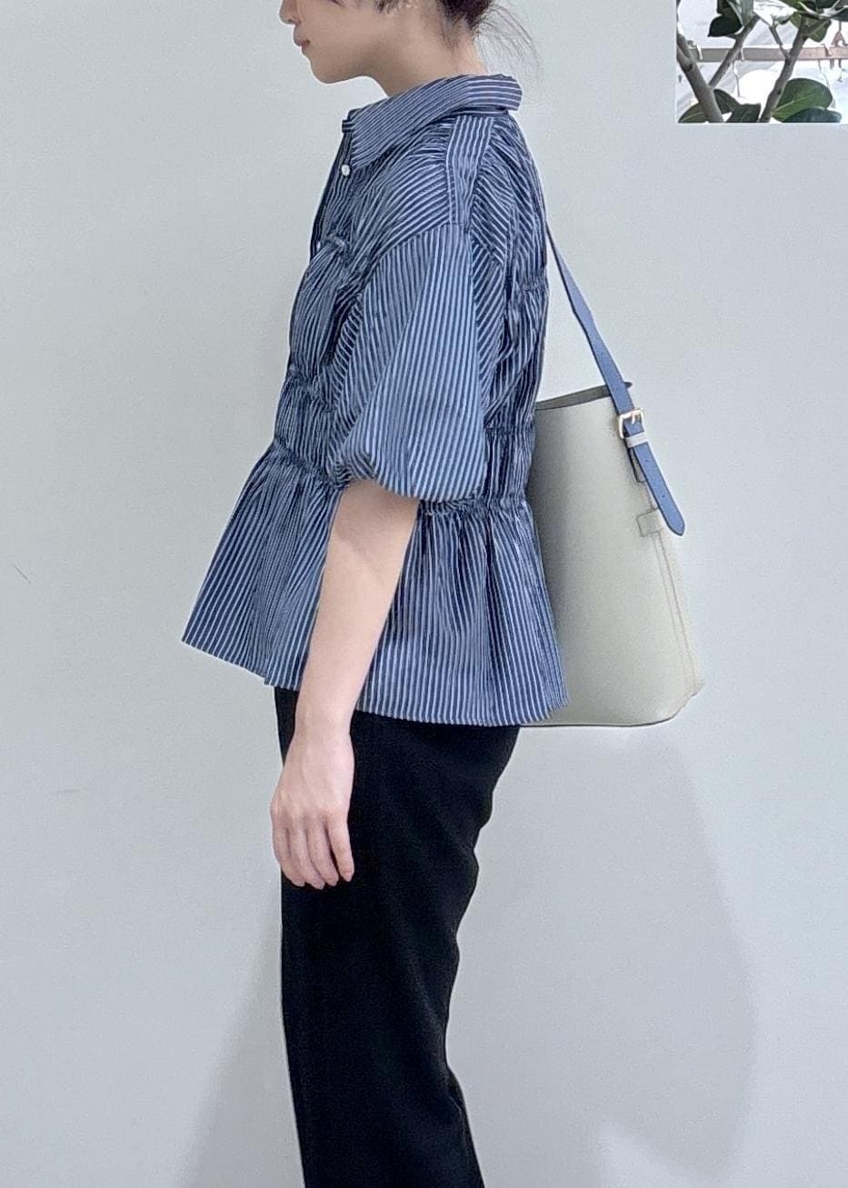 VIS【新色追加】【店頭人気】シャーリングバルーンシャツネイビー系 / F¥5,489レビュー昨シーズンも大人気の1枚。着丈は腰より少し下くらいで、気になる腰周りはフワッとカバーしてくれます◎