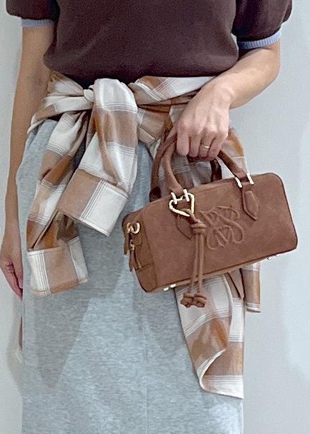 ハート型のチャームがついてとてもチャーミングです。取り外しが可能です。フロントのロゴやスウェードのような生地感が特別感があり可愛いです。