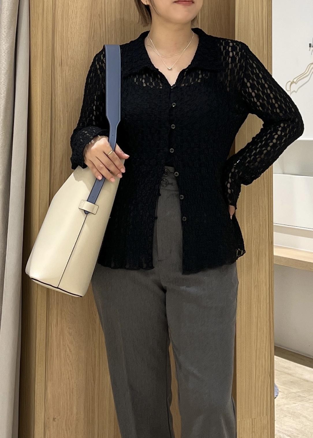 VISレースポロ襟カーディガンブラック / F¥3,842レビュー程良いフィット感ですがストレッチが効いているためとても着やすいです!