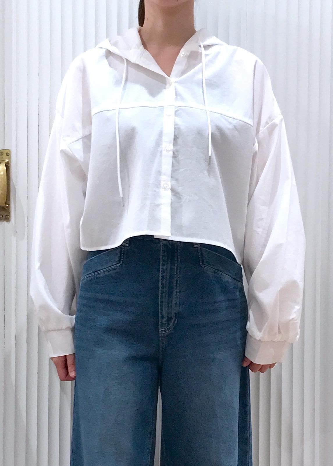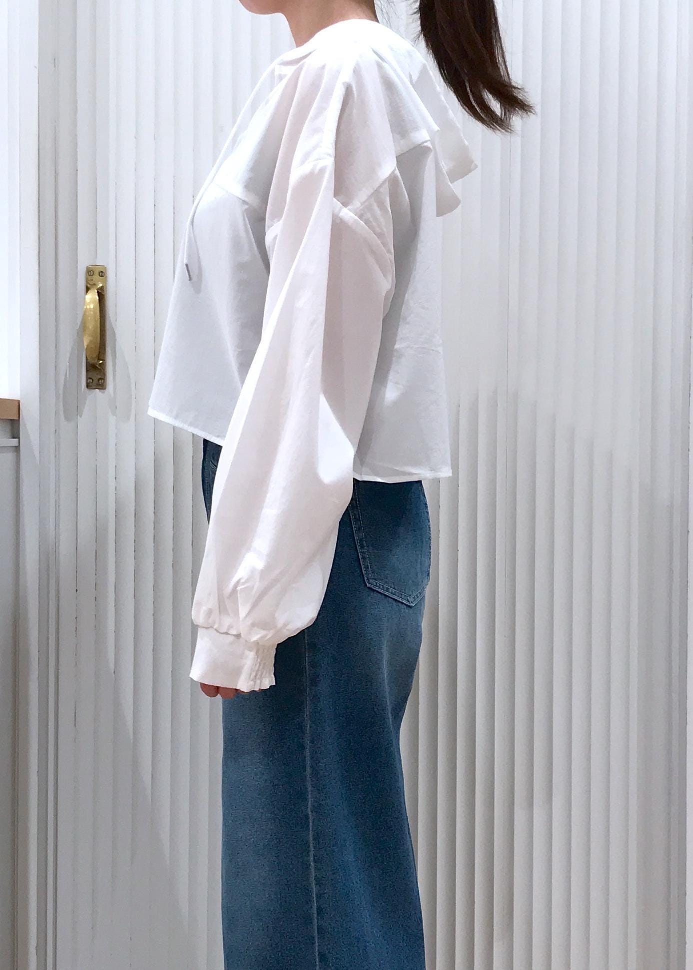 VISフード付きクロップドシアーシャツオフホワイト / F¥3,953レビュー私の身長で腰にギリギリかからない着丈感です。