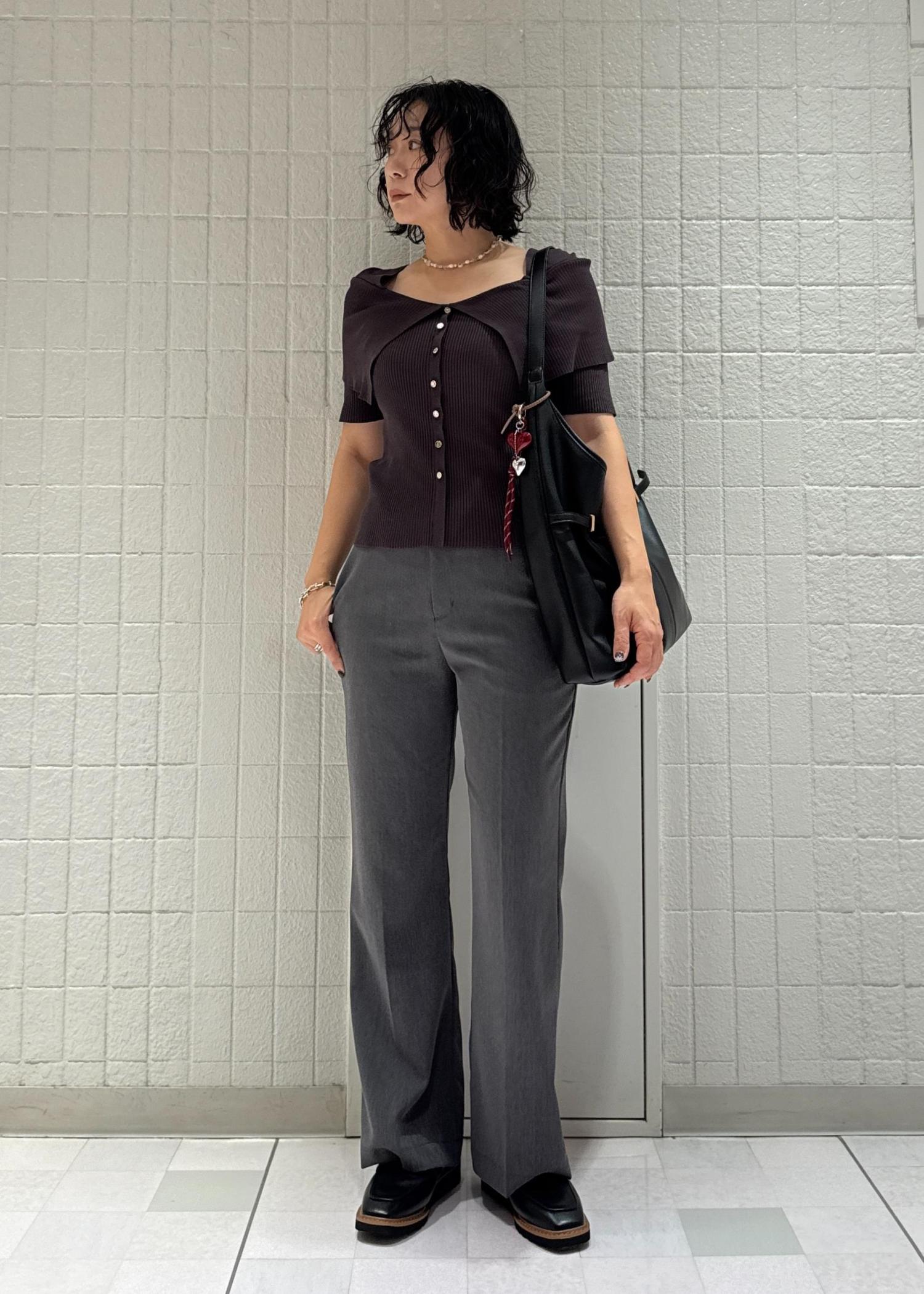 VISビックカラーオフショルハーフスリーブニットチャコール / F¥2,963レビューとっても伸び感あり柔らかいニット素材で楽な着心地です。