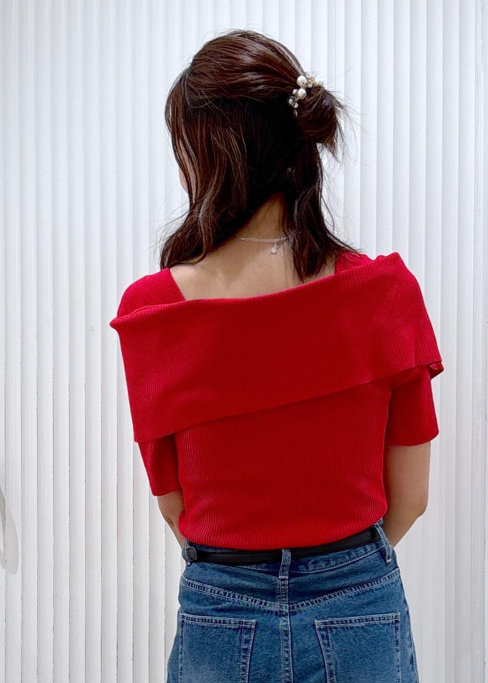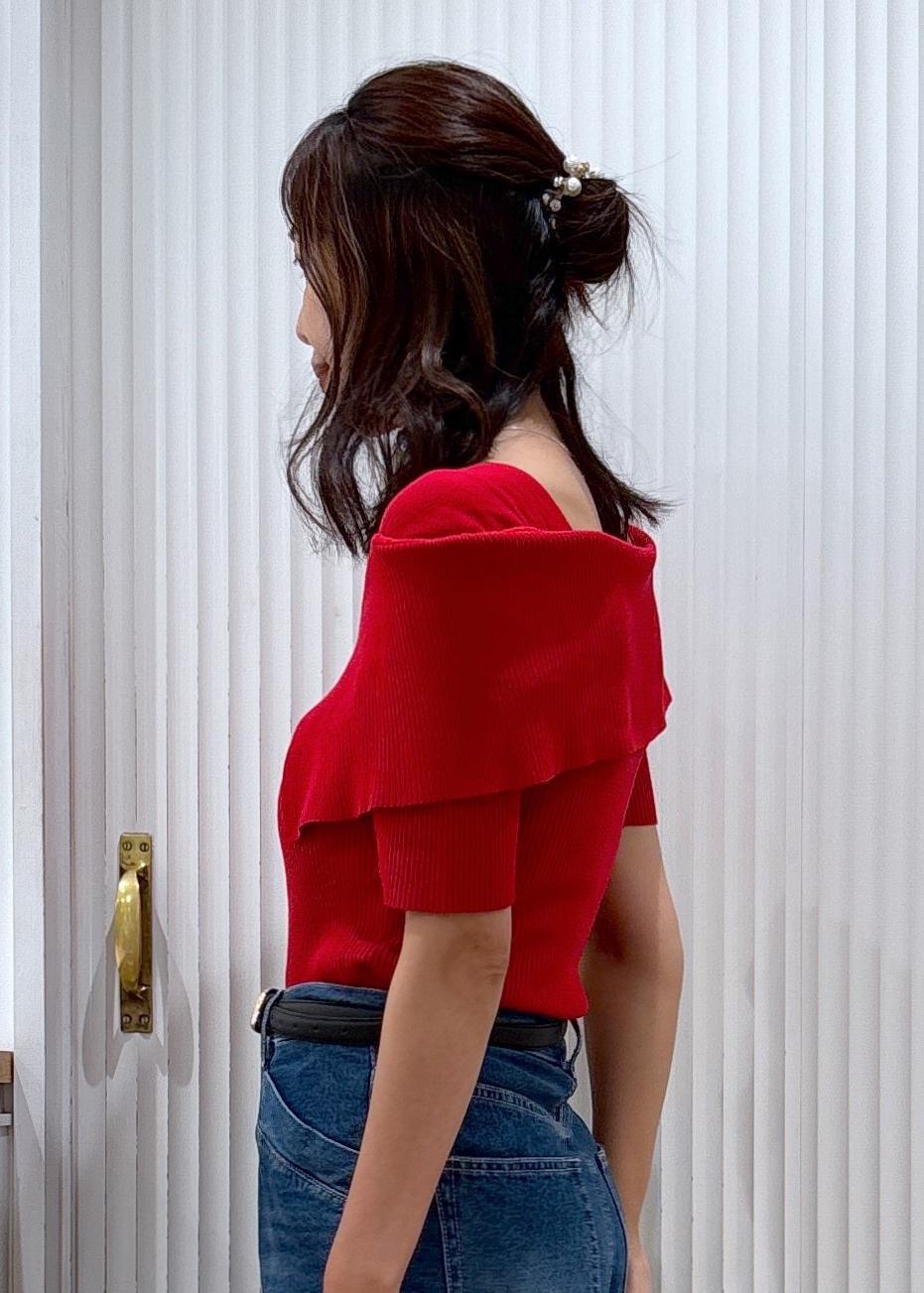 VISビックカラーオフショルハーフスリーブニットレッド / F¥2,963レビュー柔らかいリプですっきり着れるのに、ピタピタ感はありません。
