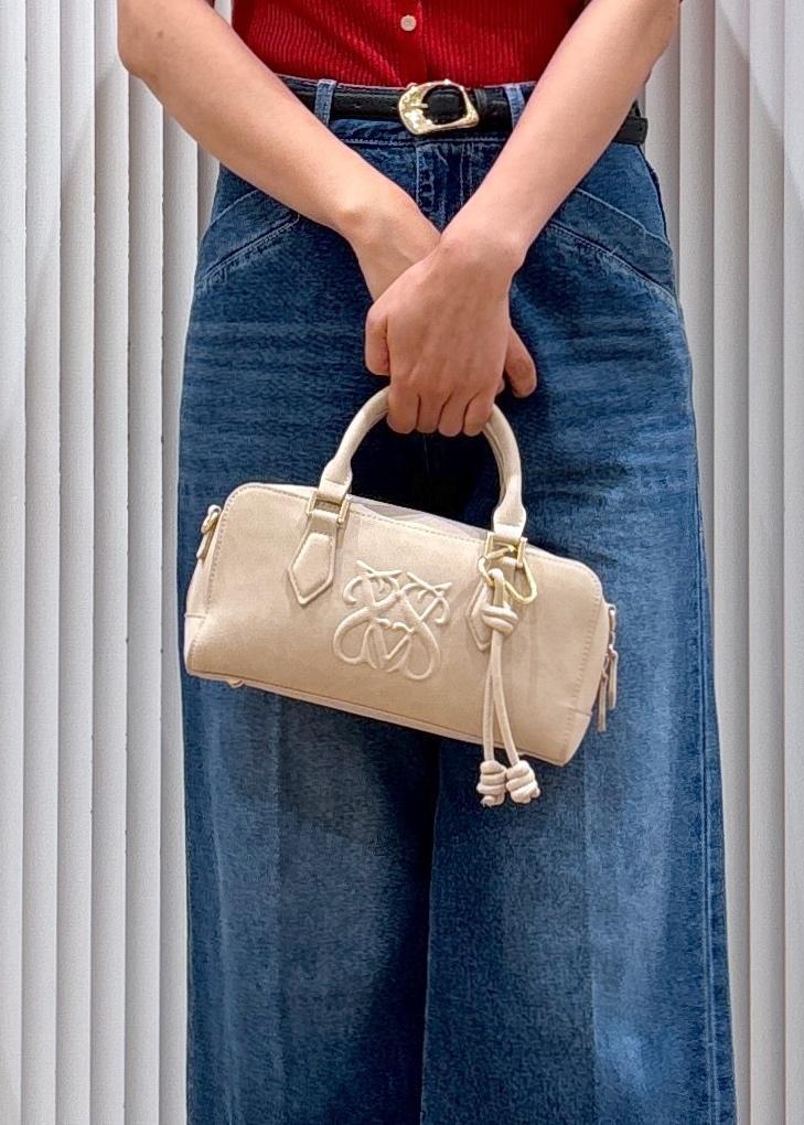 VISロゴスエードミニボストンバッグ/2WAYベージュ系 / F¥6,919レビュー小ぶりながらも、マチがあるので長財布、500mlのペットボトルもしっかり入ります。