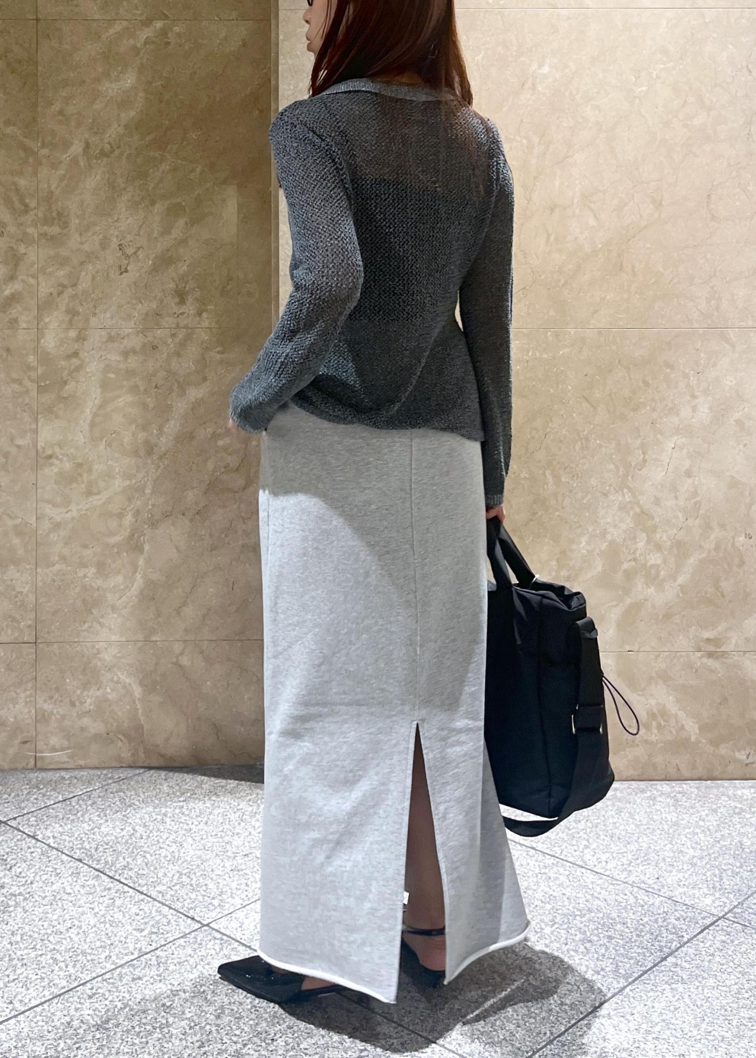 スウェットの楽な着心地はもちろんのこと、タイトすぎないながらすっきりとしたシルエット、後ろの深めのスリットでほどよい抜け感もあり、女性らしく着用できます。 -