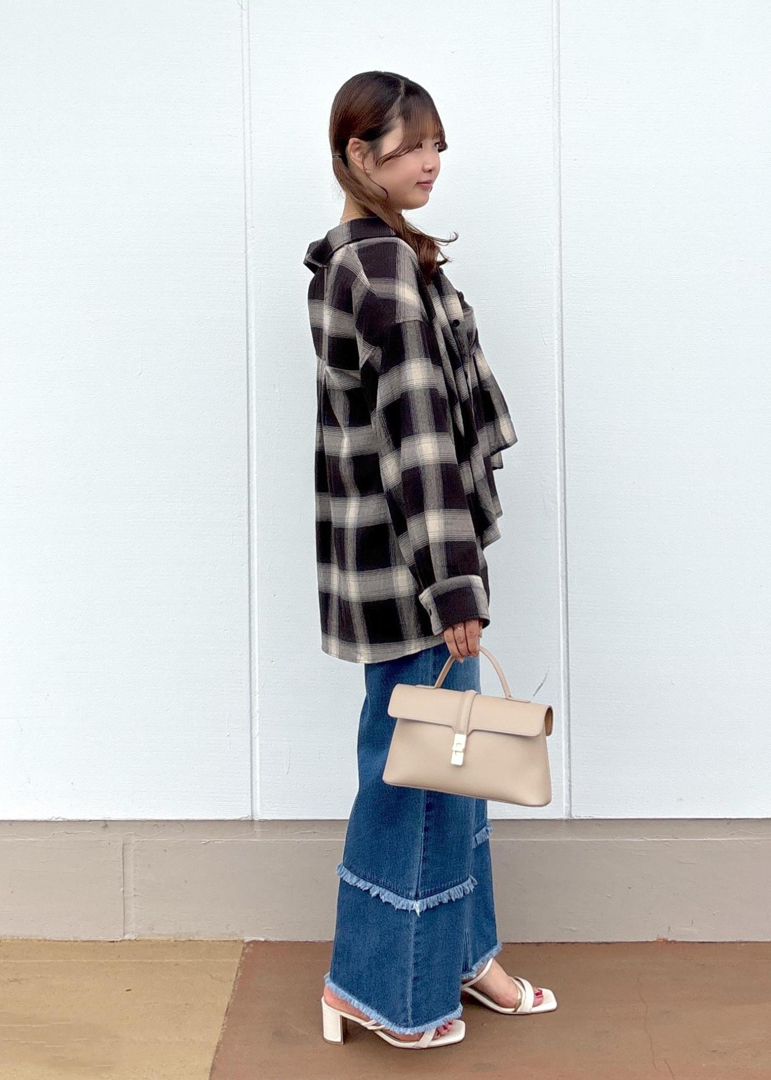 VISオンブレチェックオーバーシャツブラック系 / F¥6,589レビュー前後の長さに差があり後ろはお尻が隠れる長さでした!
