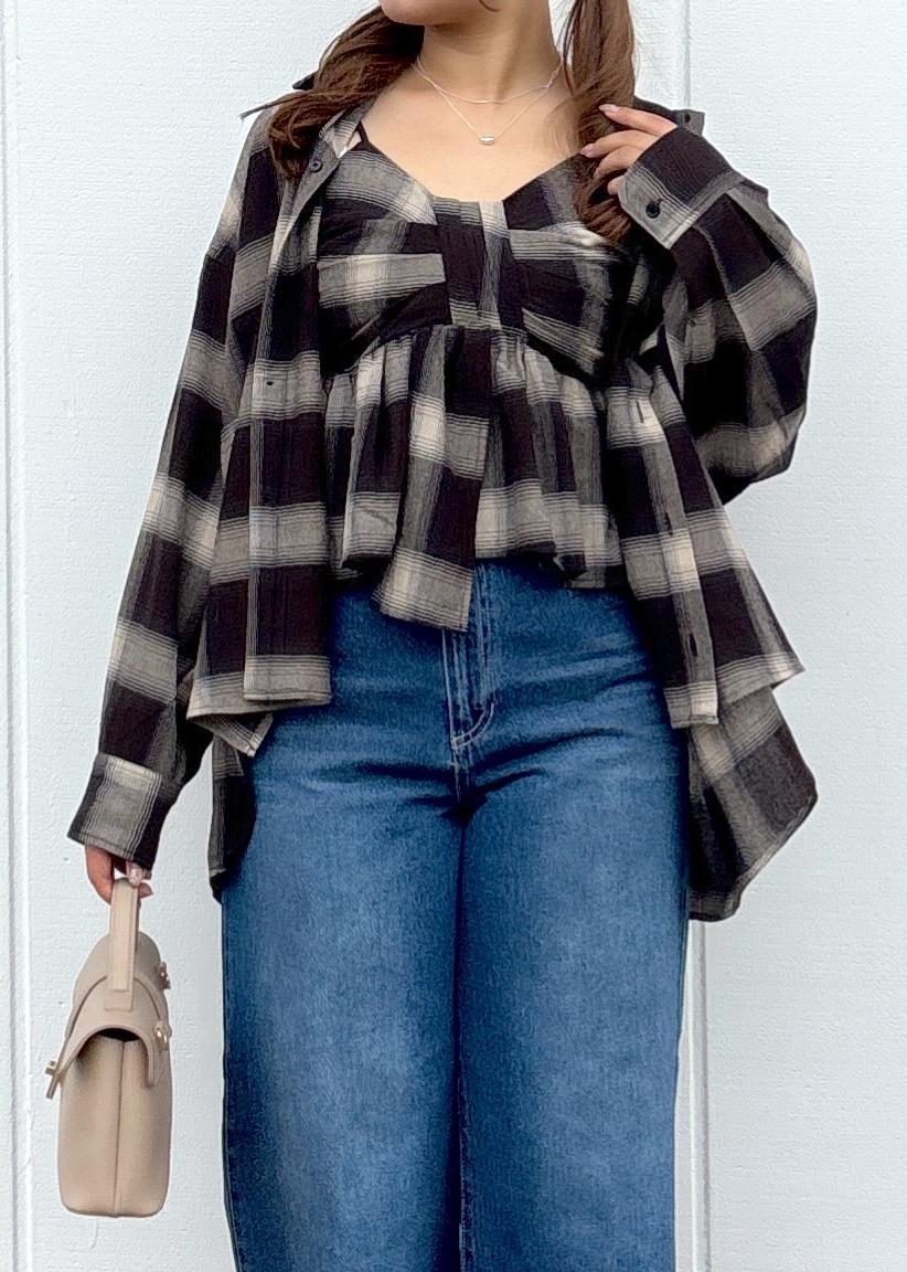 VISオンブレチェックリボンビスチェブラック系 / F¥5,489レビューシャツとセットアップで着用できるビスチェです!