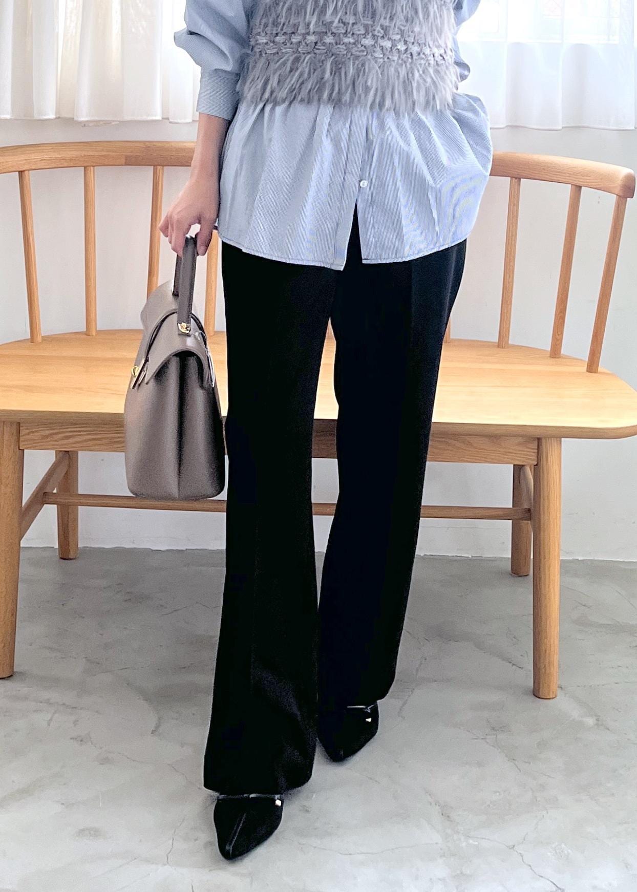 VISフレアーリラックススラックスブラック / S¥4,150レビュー152cmでSサイズ着用し、高めのウエストで着用してペタンコ靴でも床につかない丈でした。とってもシルエットがキレイ。ややフレアなデザインが脚長効果◎程よく薄手の素材感なので、今からすぐにお召しいただけます!キレイめにもカジュアルにも使えそうなパンツ。程よくフィットしてくれ、ストレッチも効いているので感動の履き心地です。