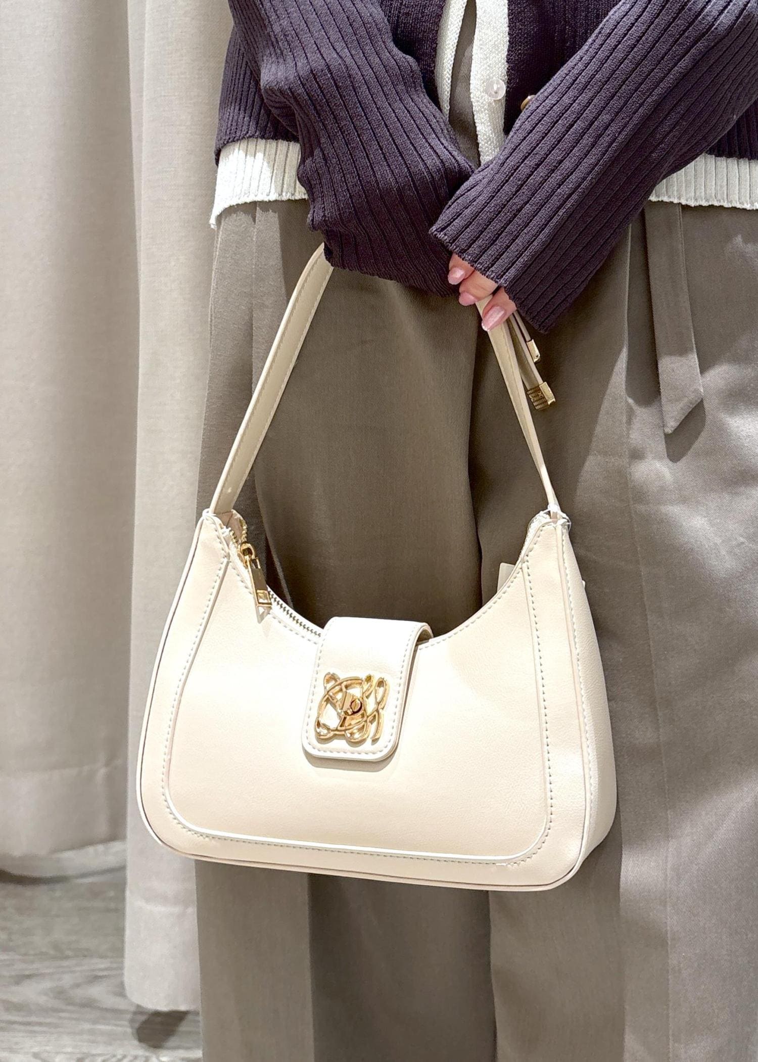 VIS【新色追加】【180℃美人見え】ハンドルリボンワンショルダーバッグキナリ / F¥5,929レビュー肩がけができる長さで、ゴールドの金具がコーデのアクセントになります!