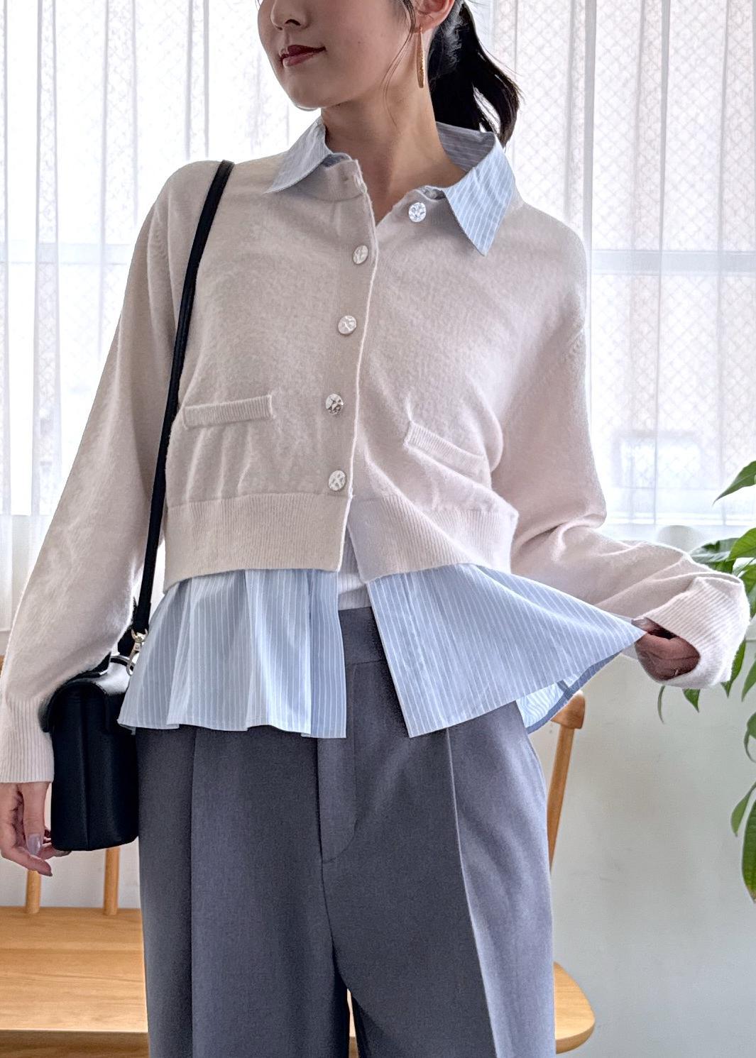 VISシャツレイヤード風メタルボタンカーディガンキナリ / F¥6,589レビュー簡単にレイヤードスタイルが叶うトップス。