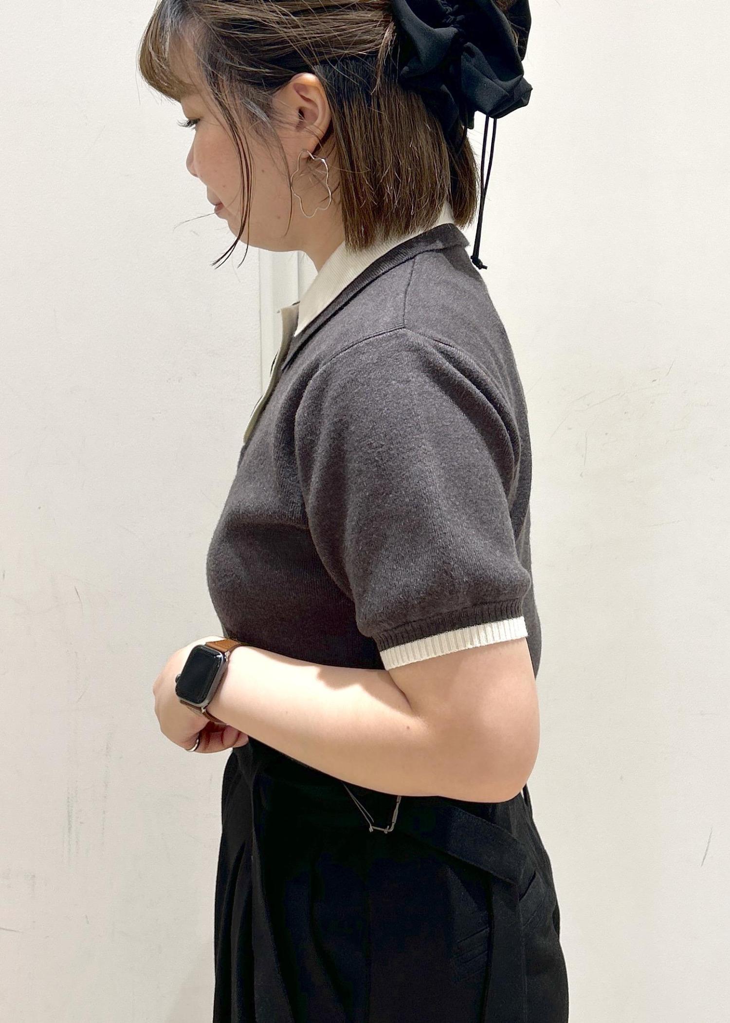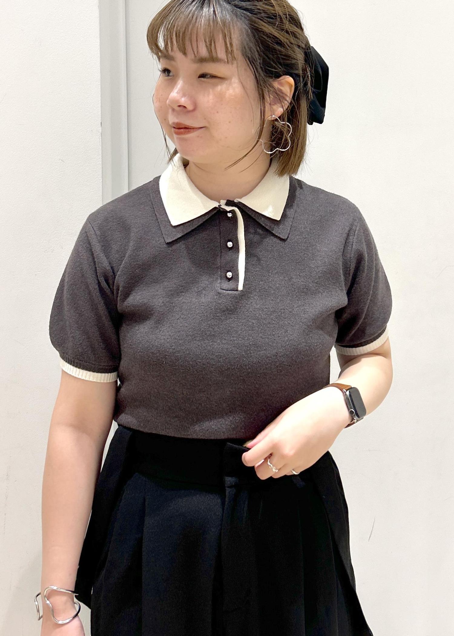 VISダブルカラーポロトップスチャコール / F¥5,929レビュー配色のダブル襟が可愛いニットです!