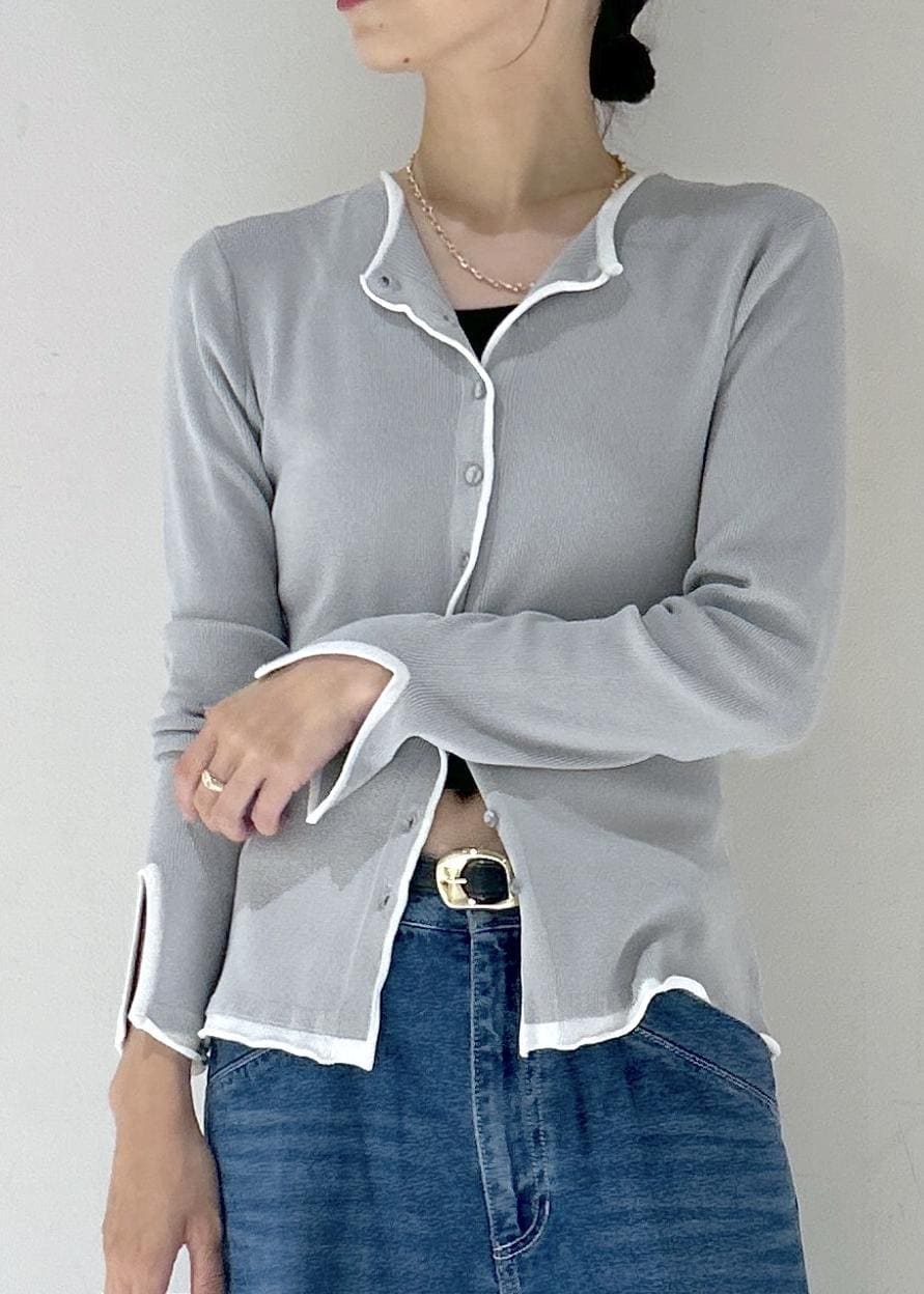 VIS【WEB/一部店舗限定】配色メローバイカラーカーディガングレー / F¥3,295レビュー身長164cmで腰にかかるくらいの丈感。