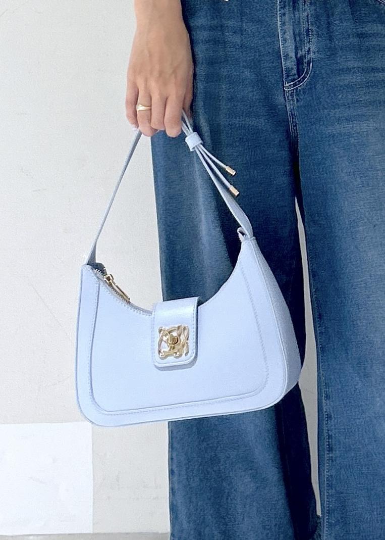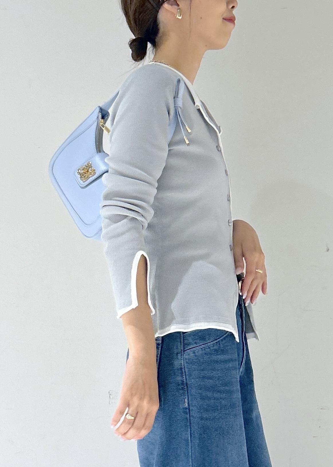 VIS【新色追加】【180℃美人見え】ハンドルリボンワンショルダーバッグサックス / F¥5,929レビューミニ財布とスマートフォン、ポーチが入るサイズ感です。