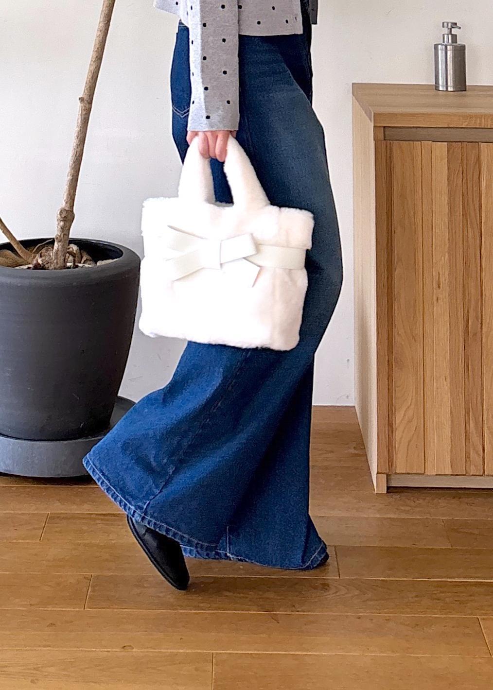 VIS【2WAY】ファーリボントートバッグキナリ / F¥6,919レビュー季節を感じるファーバック♪柔らかふわふわファーに大きめリボンをあしらった大人可愛いデザインが目を惹きます◎とても軽くて持ちやすく、斜めかけのショルダー暇がセットなのも嬉しいポイント。長財布や500mlのペットボトルが横向きで入るサイズ感です。