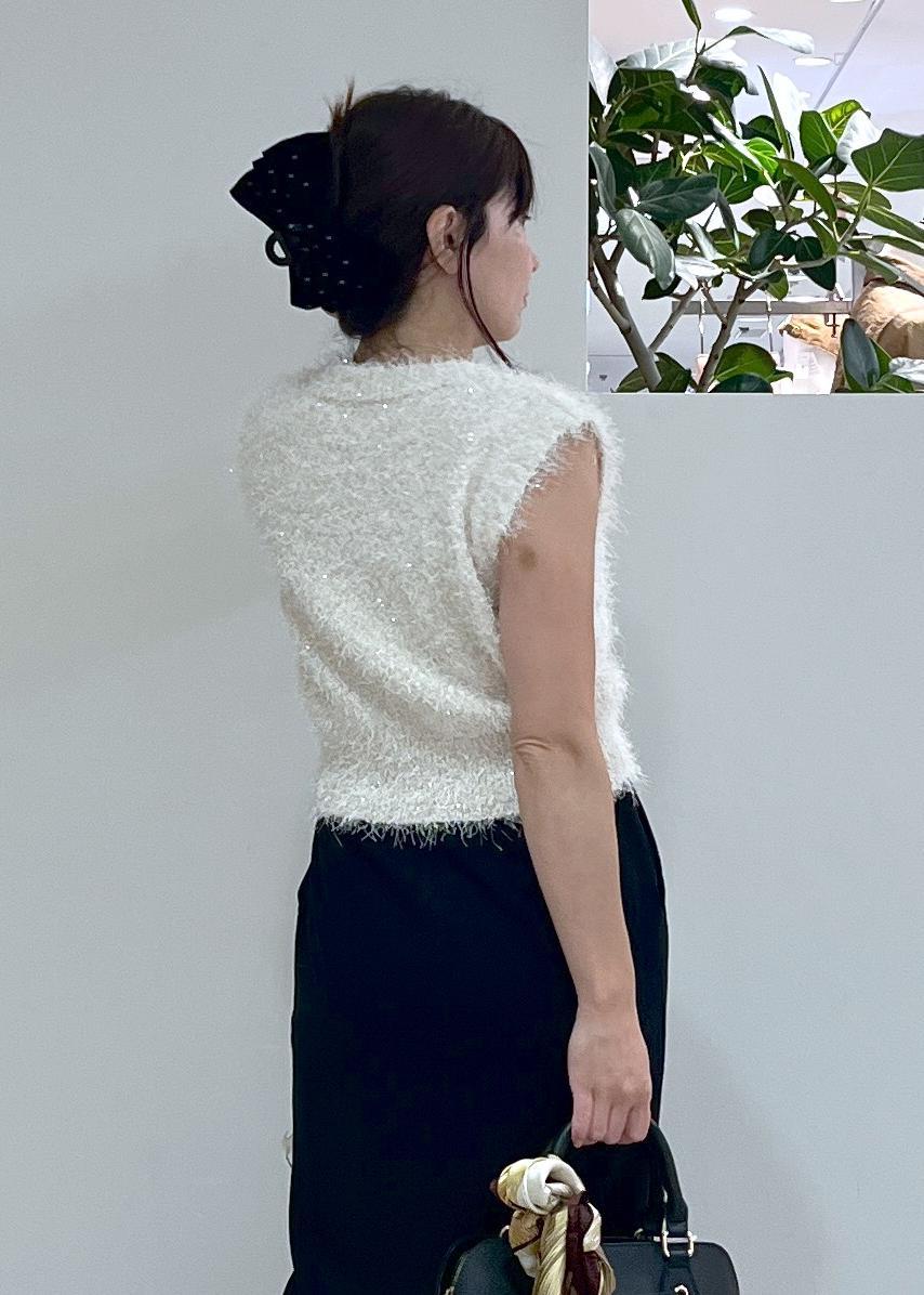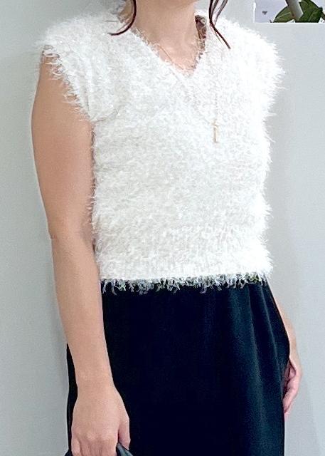 VIS【WEB限定サイズ:MT/着丈が選べる】【洗える】フェザーヤーンニットベストキナリ / M¥3,293レビューキラキラと華やかなベストのようなトップスです。