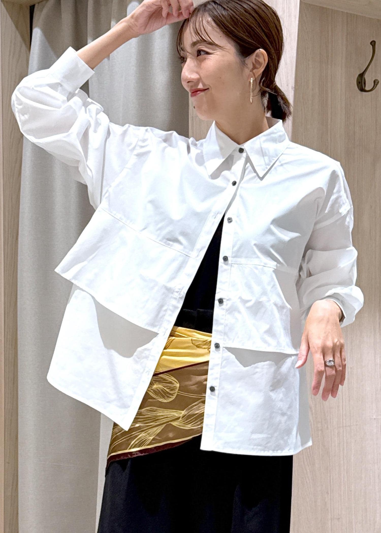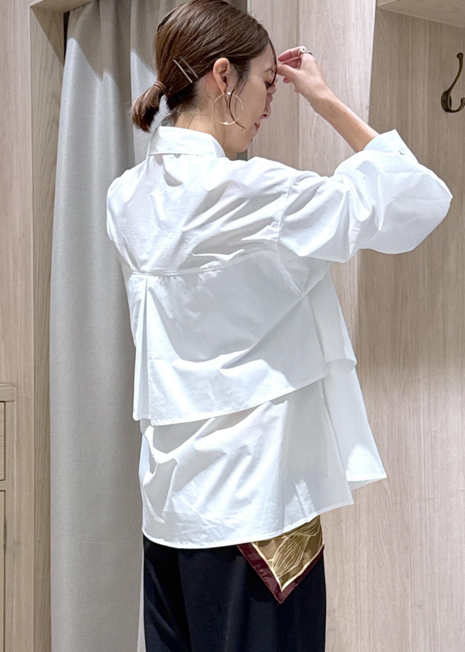 VIS裾ティアードオーバーシャツ/UVケア・イージーケアホワイト / F¥3,557レビューティアードが可愛いオーバーシャツです♪ボタンを全て留めて着ても可愛かったです!