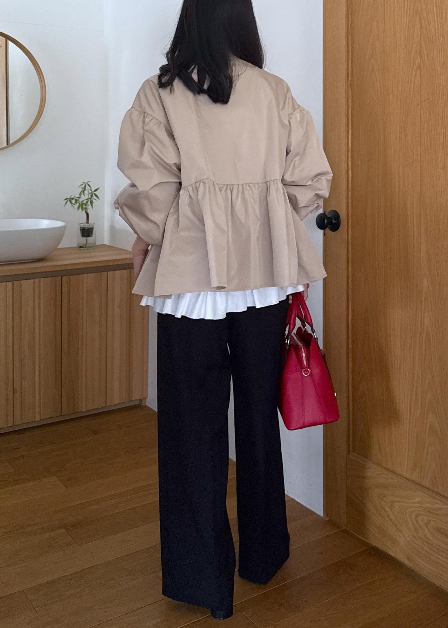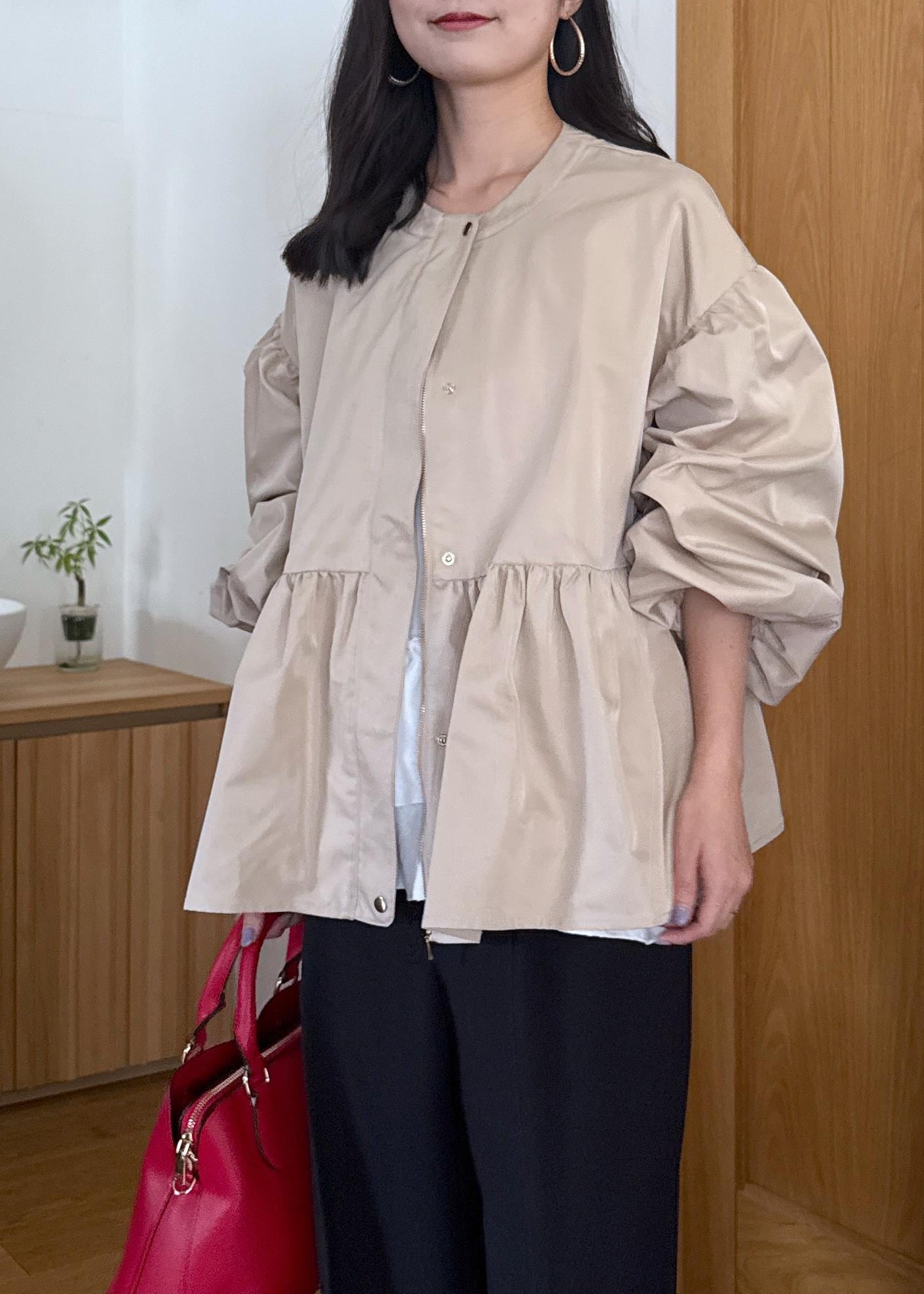 VIS【WEB限定】バルーンスリーブペプラムブルゾンベージュ / F¥5,382レビュー適度なハリ感と光沢感があり、綺麗見えするブルゾン。