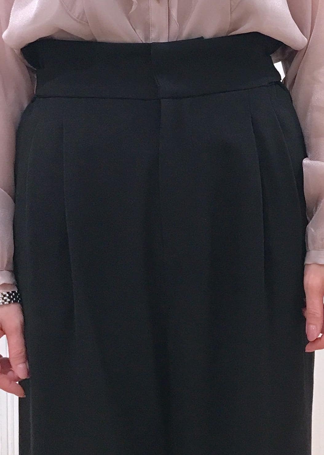 ウエストは手の甲が2つ入るくらいゆとりがありますが、両サイドのベルトを絞ってぴったりのサイズ感で履けます。