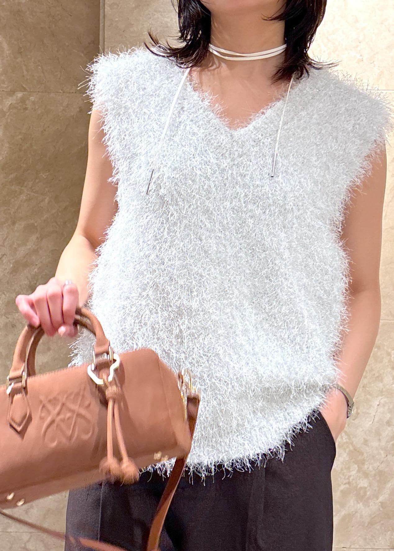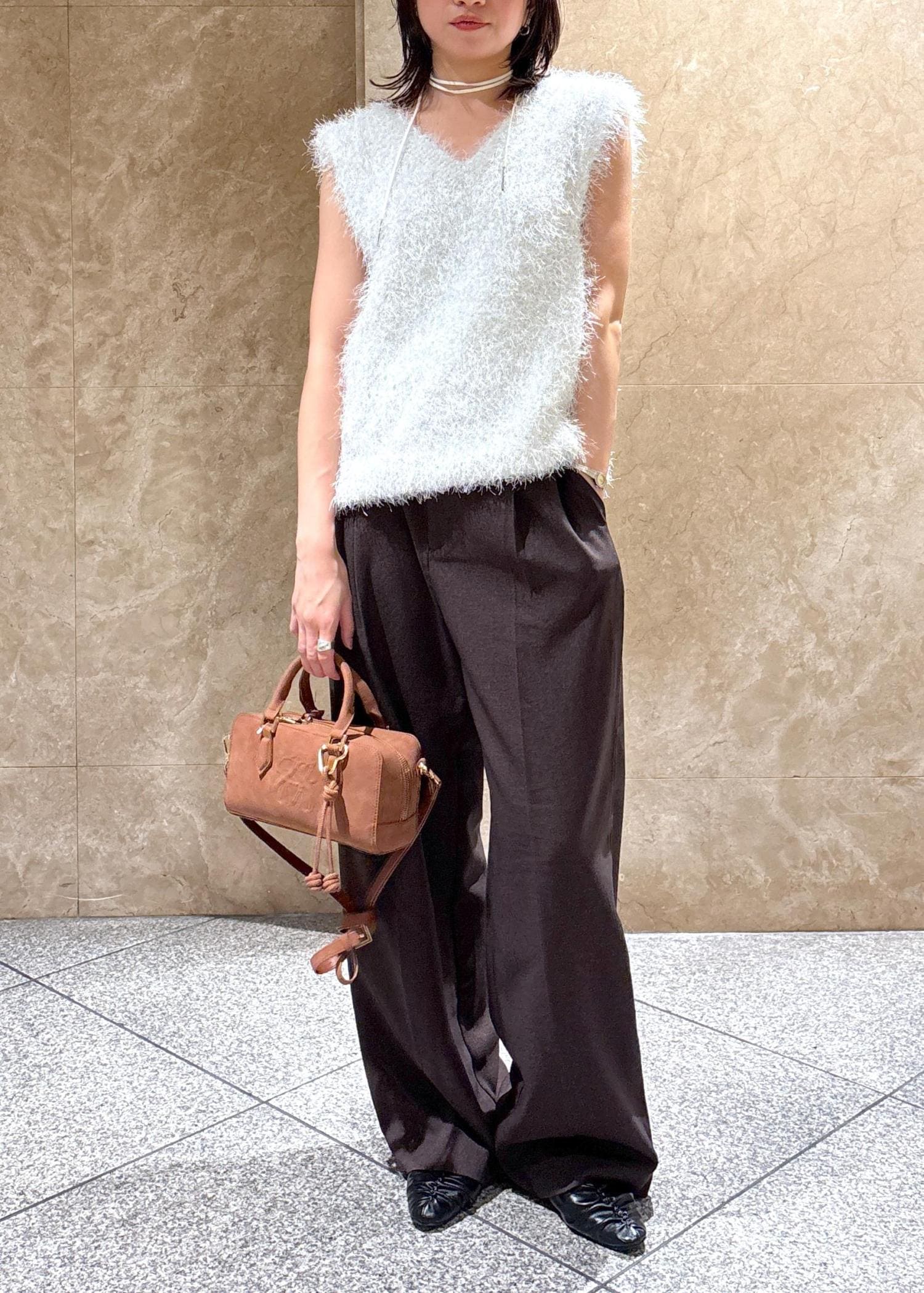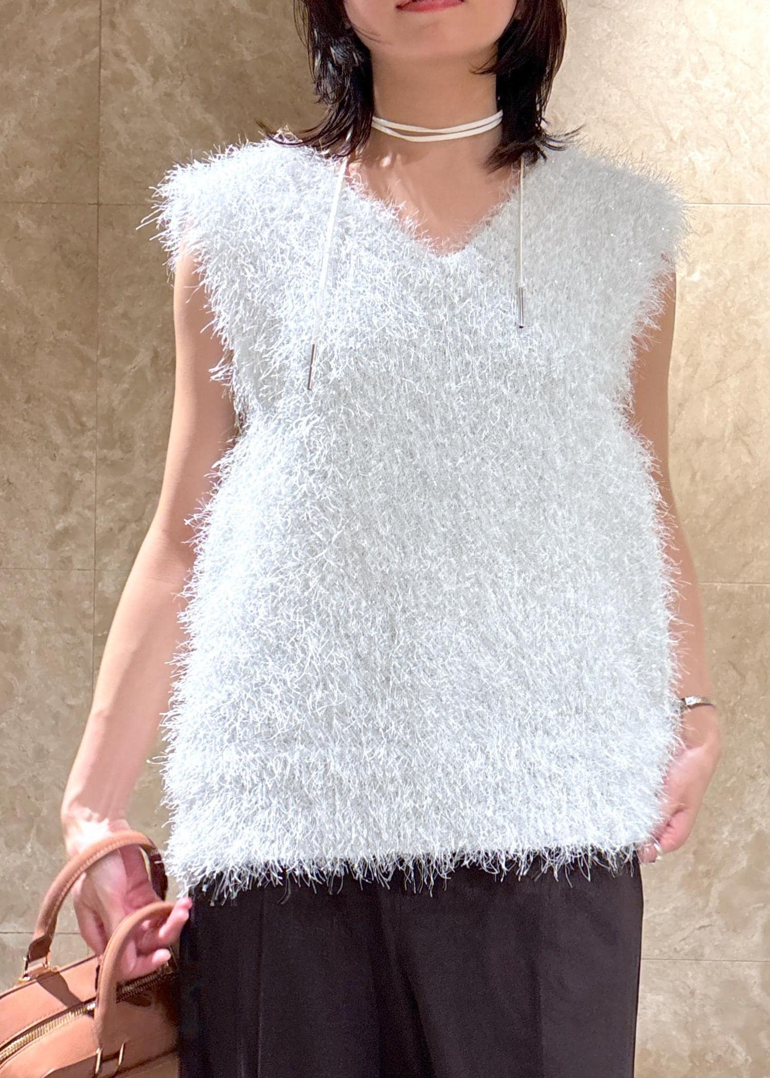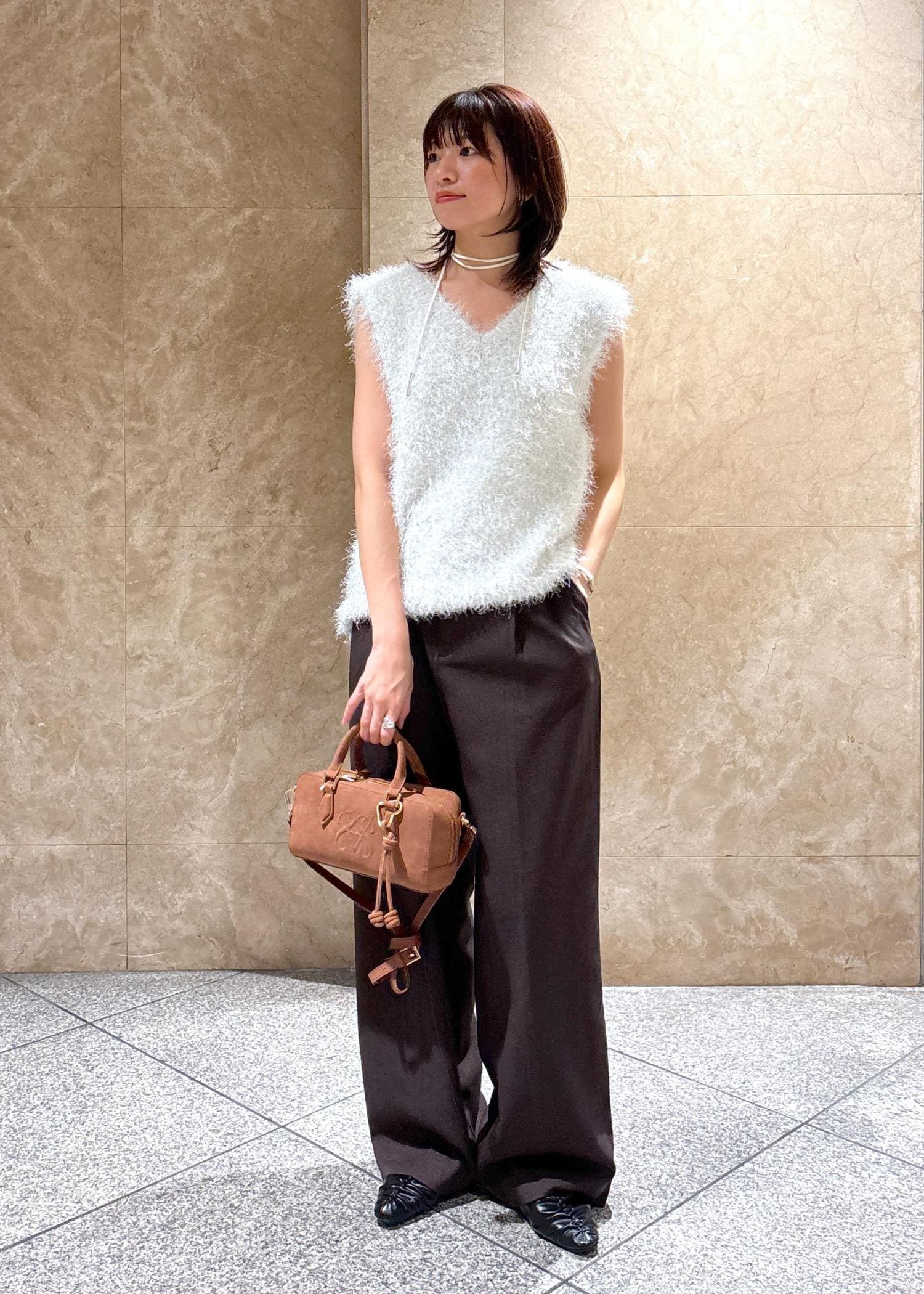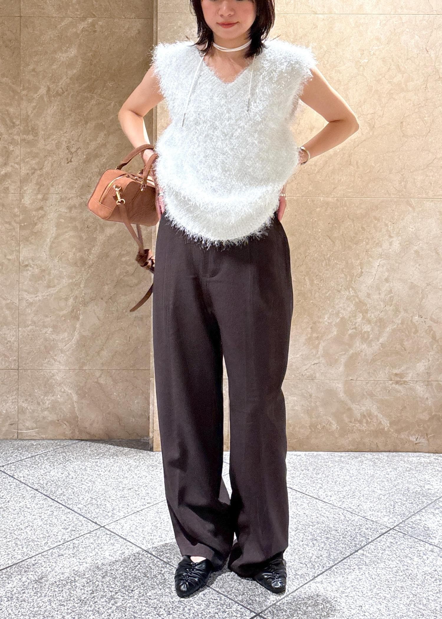 VIS【WEB限定サイズ:MT/着丈が選べる】【洗える】フェザーヤーンニットベストホワイト系 / MT¥3,293レビュー腰が隠れるくらいの丈感です。