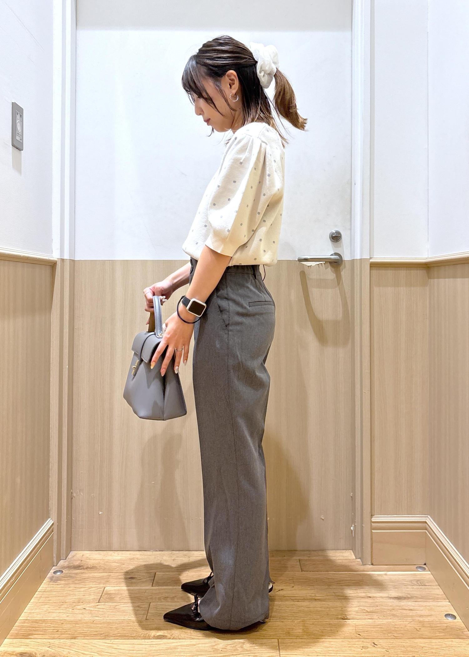 ニットの素材感は肉厚なので、透け感やインナーを気にせず使えます。