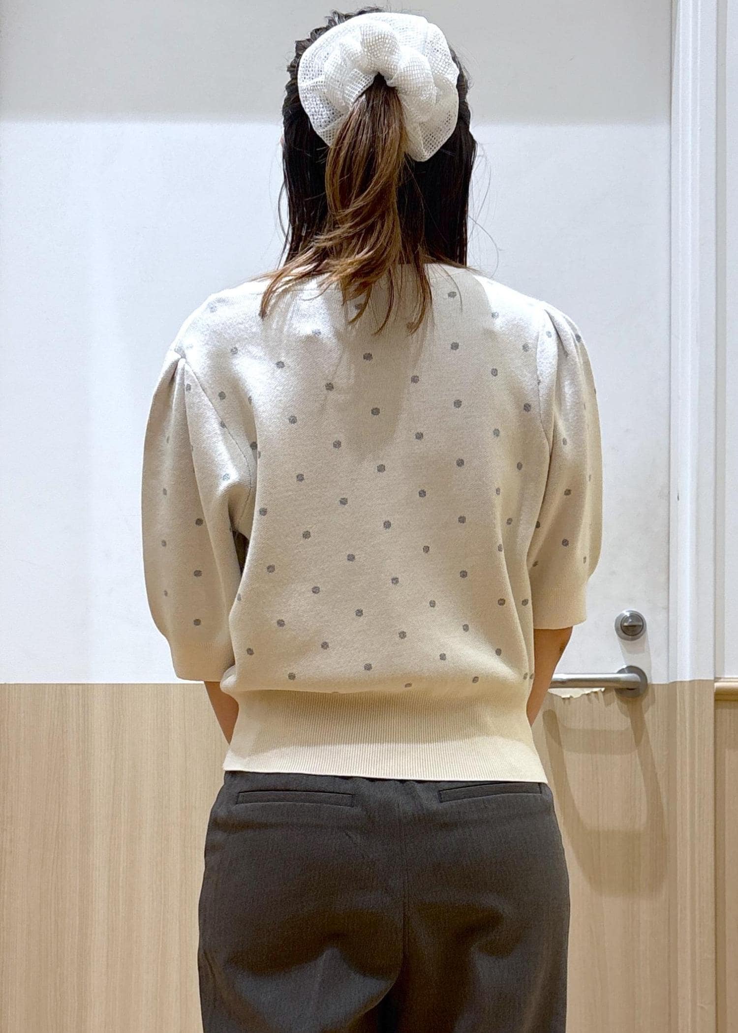 お袖のパフスリーブも、肩から大きくならずに膝にかけてゆるやかに丸いシルエットなので、肩幅も気にせず着用できます。