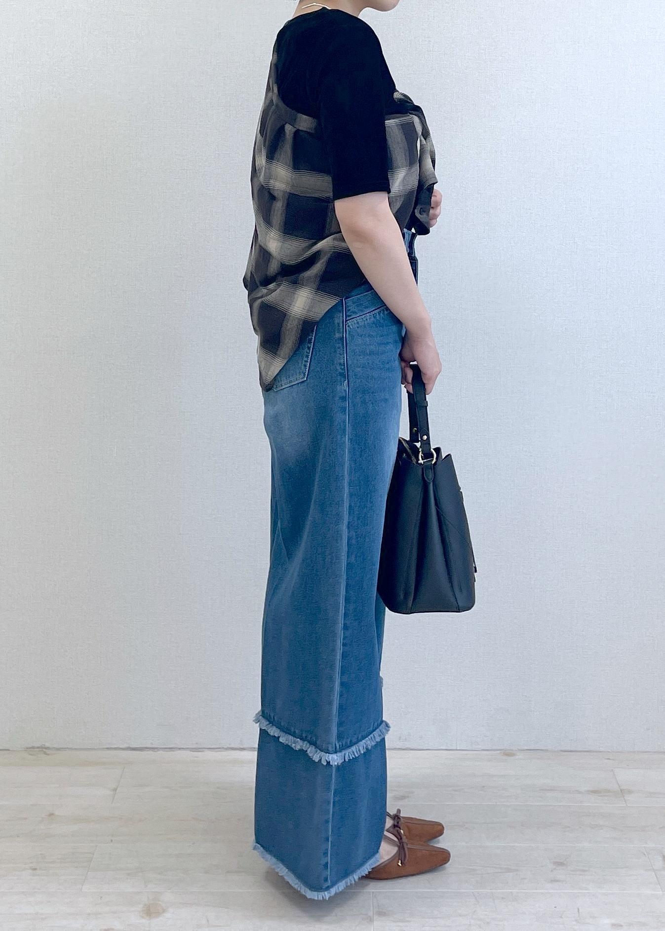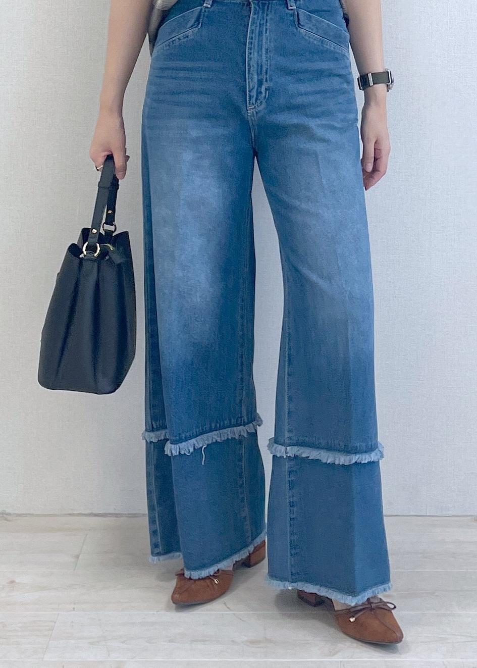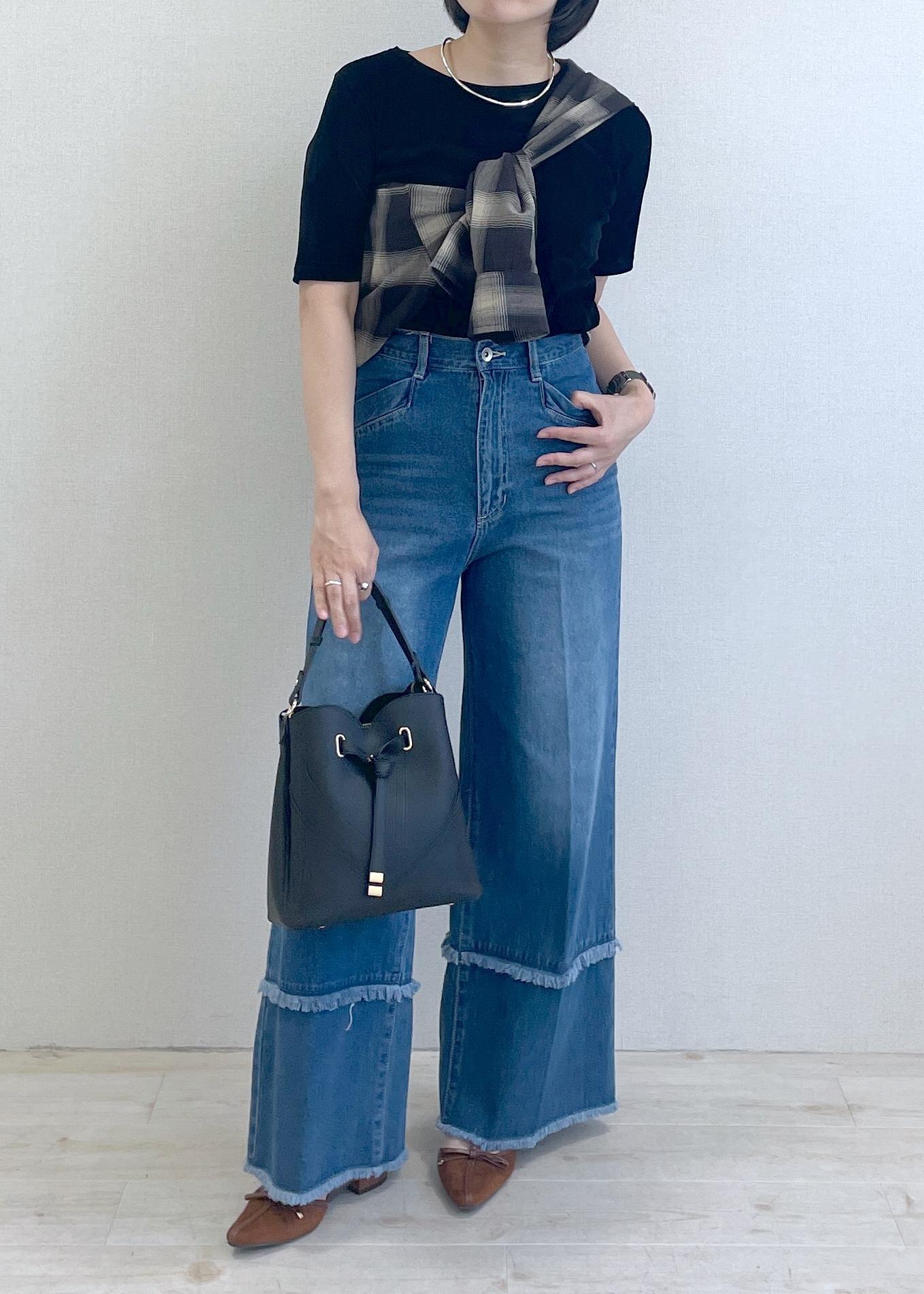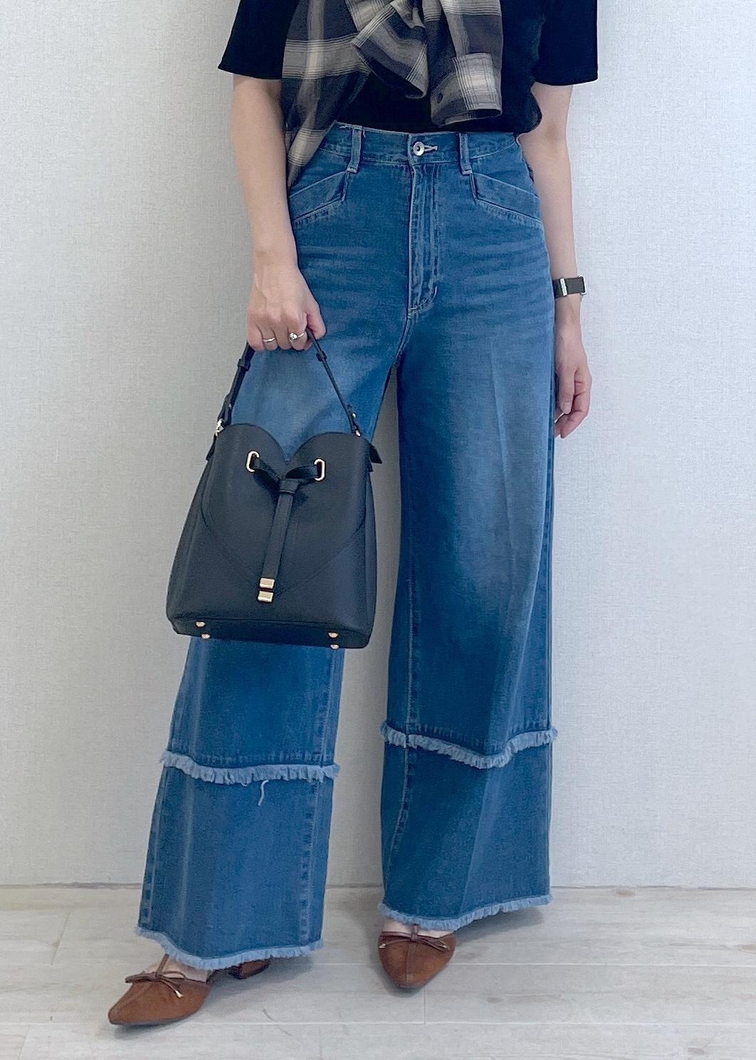 トレンド感のあるフリンジデザインがかわいく、デニムをお持ちの方でも新鮮な着こなしができます。