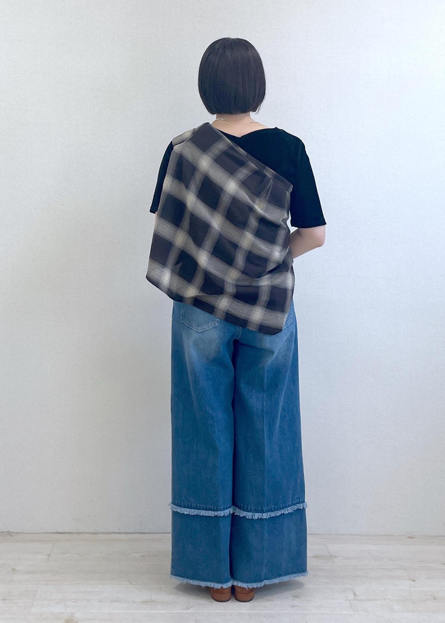 チェックシャツをたすきがけすることで、アクセントとなり、おしゃれ見え抜群です◎