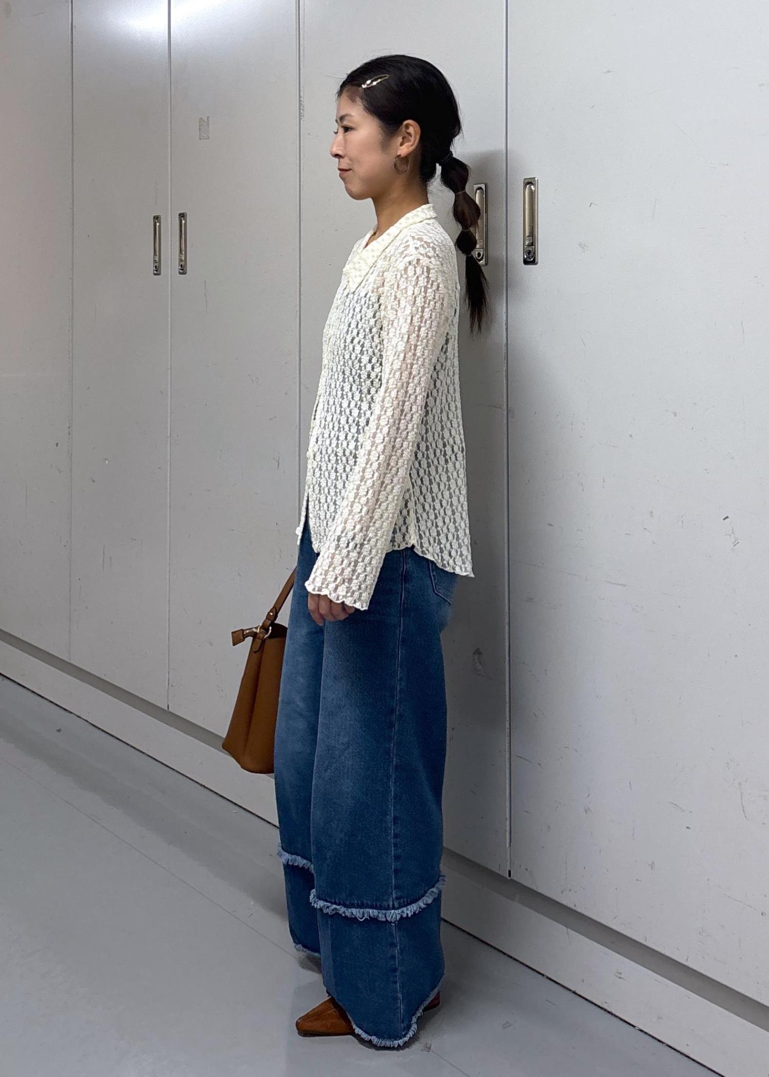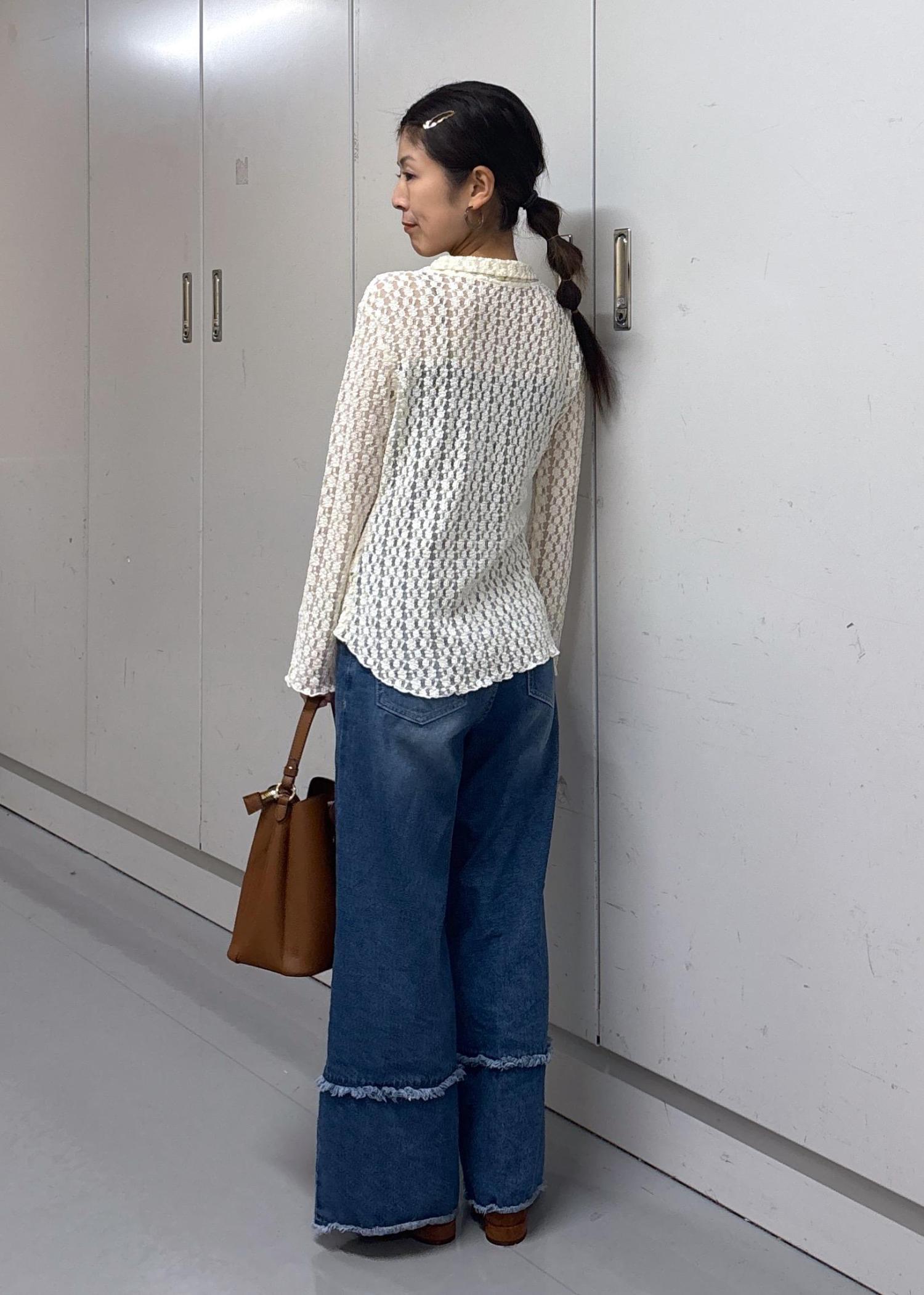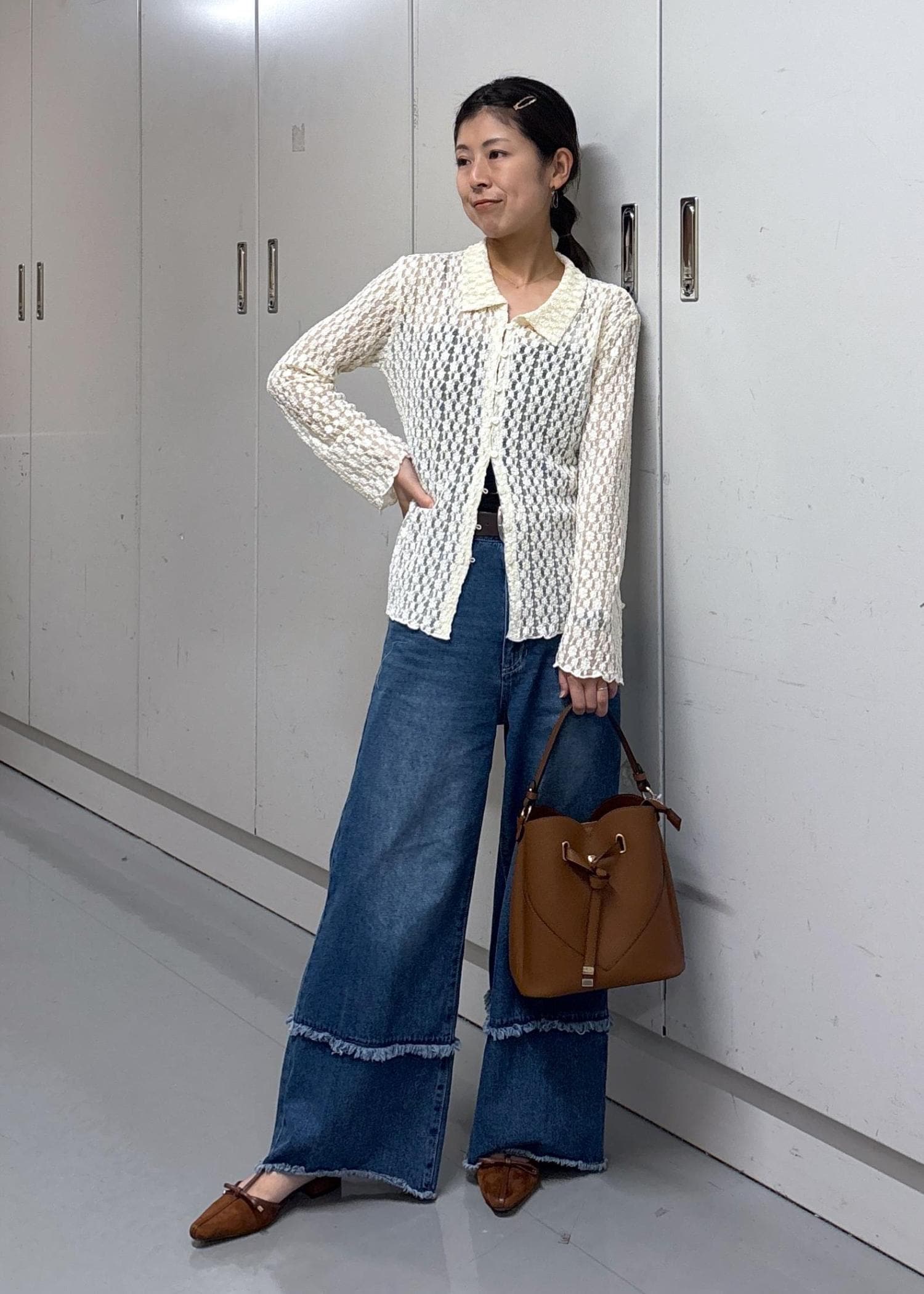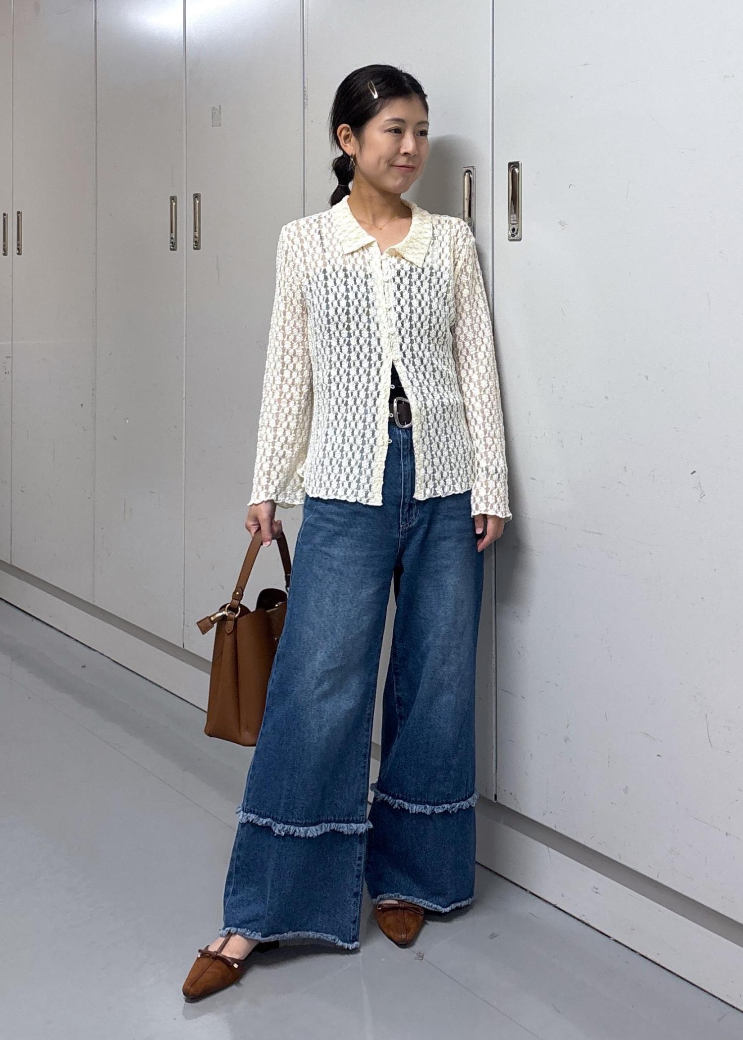 VISレースポロ襟カーディガンキナリ / F¥3,842レビュー156cm/F着用。着丈はお尻が半分隠れる長さで、身幅はややすっきりしてます。サラッとした肌触りでほどよい透け感。レイヤードスタイルのインナーにも使えそうです◎