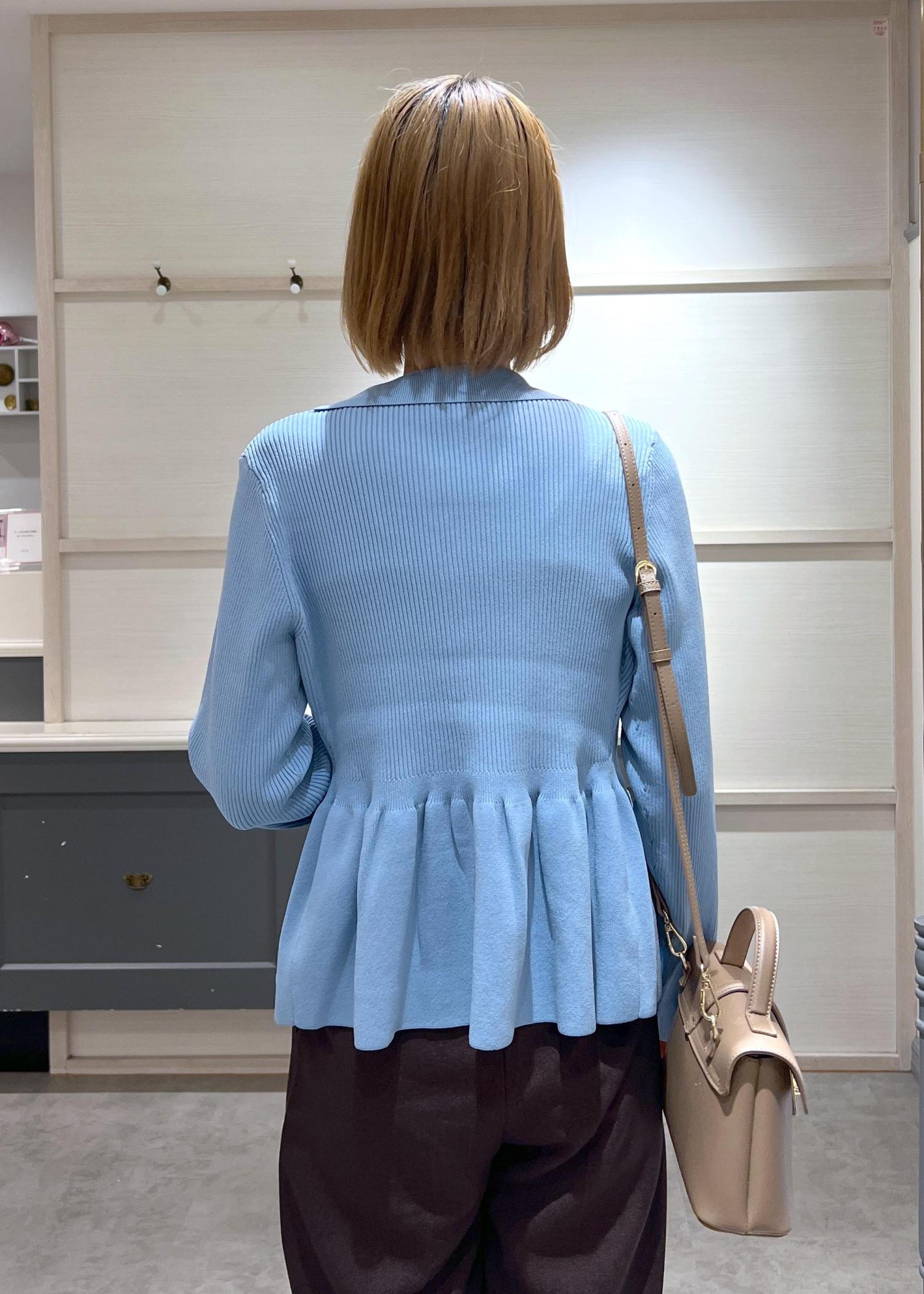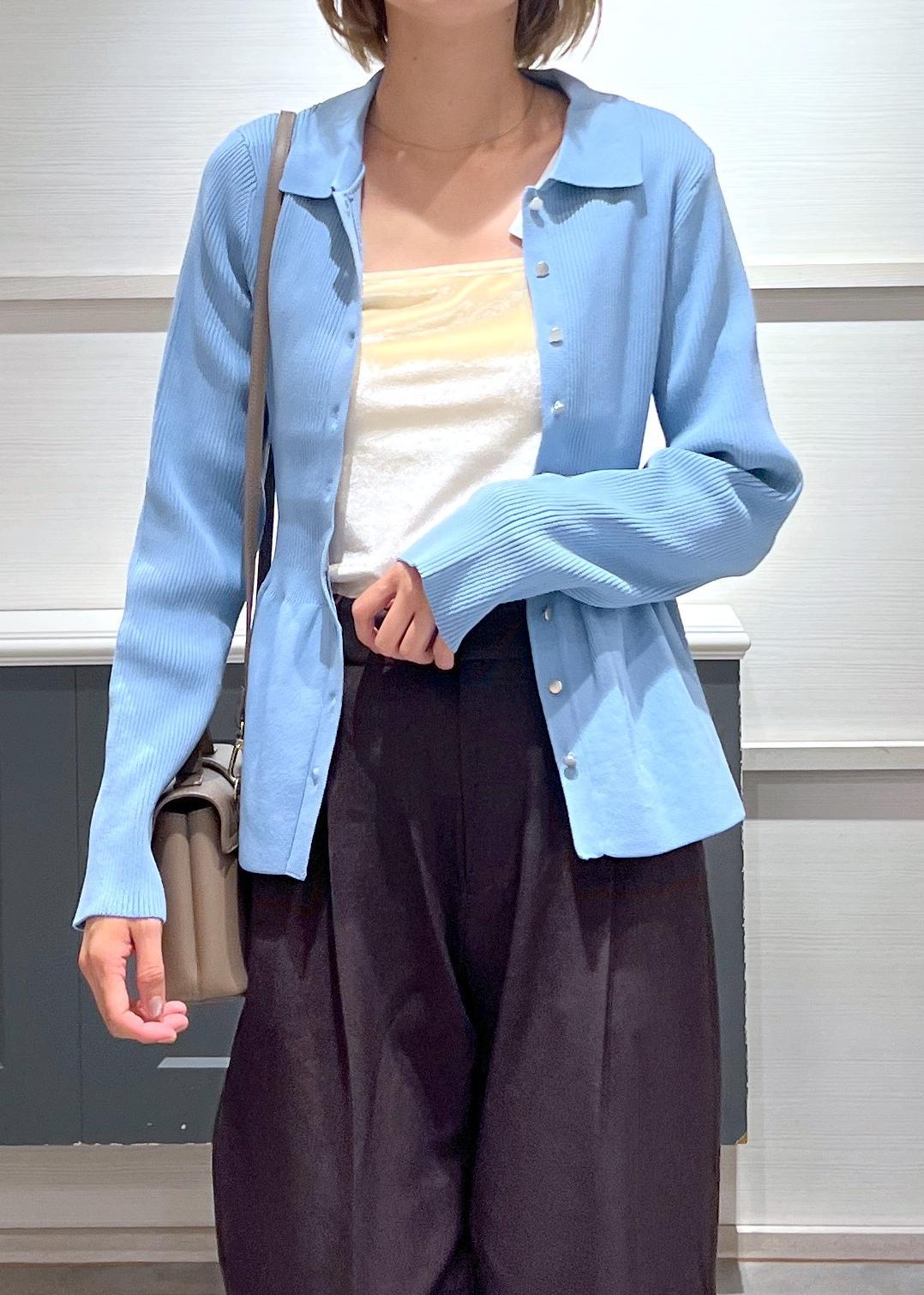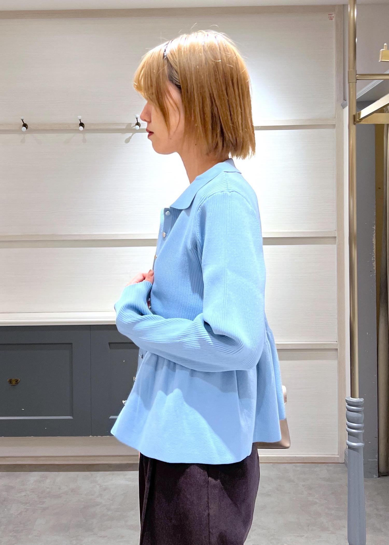 VIS【洗える】襟付きペプラムカーディガンブルー / F¥6,589レビュー166cm/Fサイズ着用