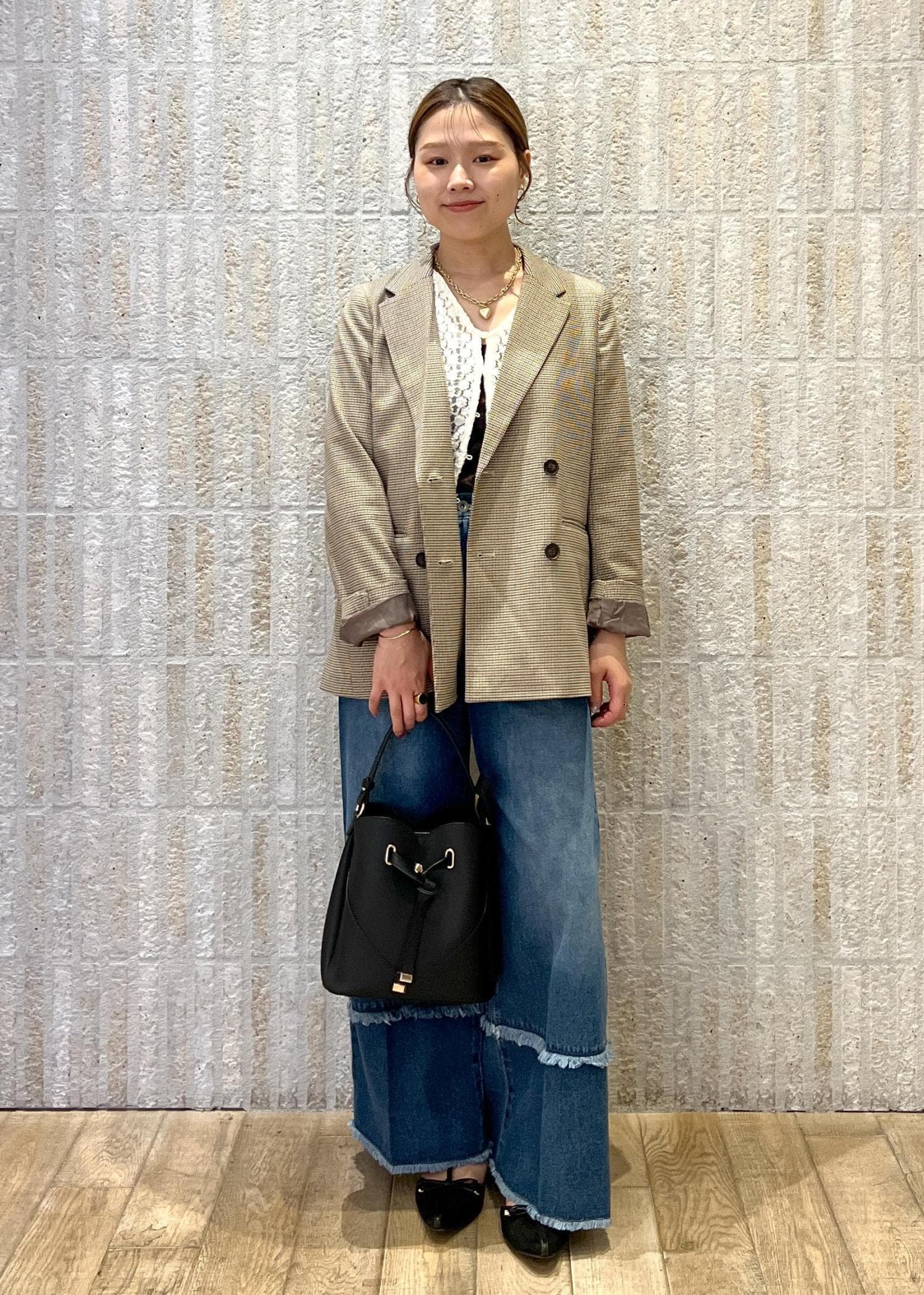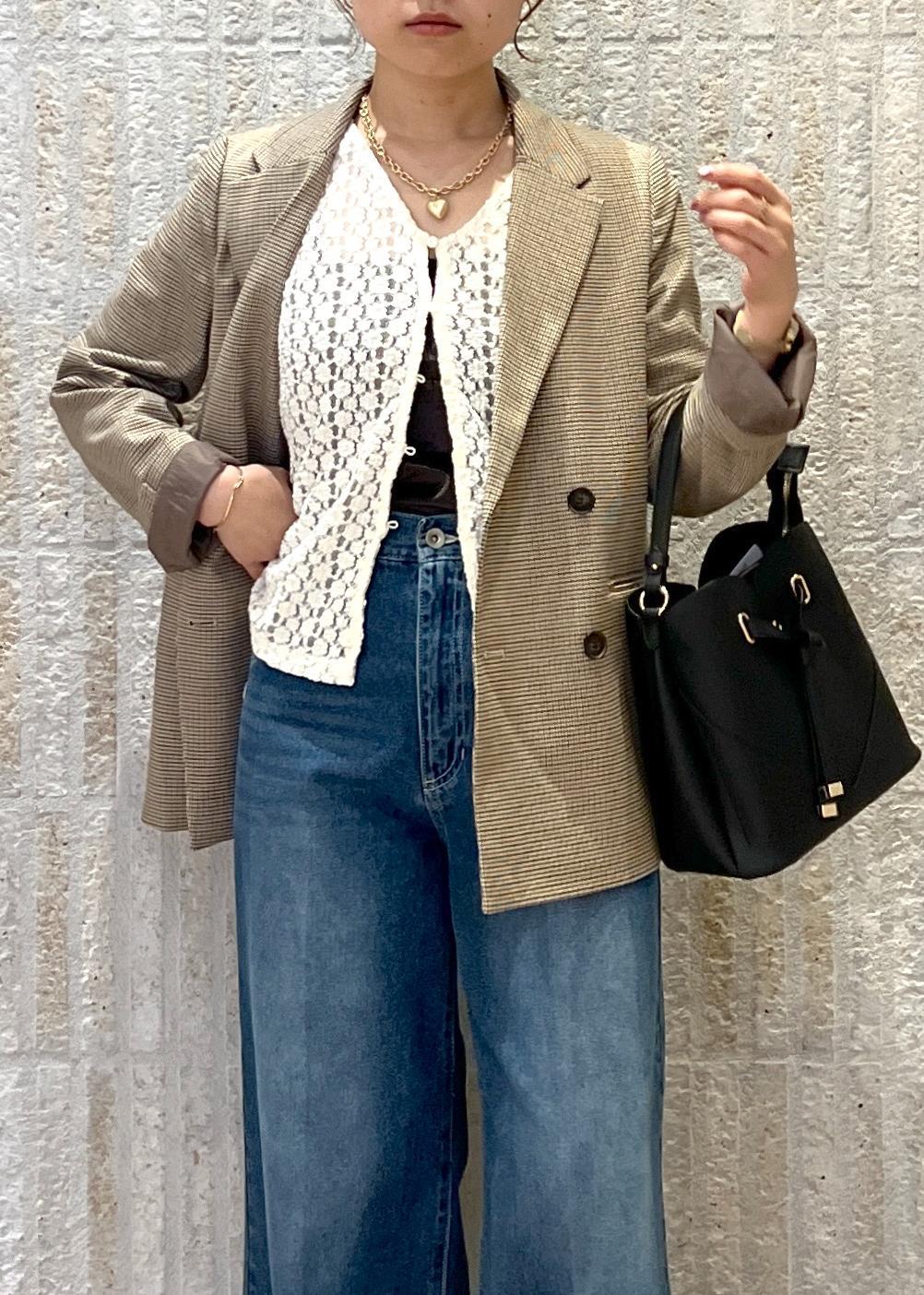ジャケット×デニムでどんな場面にも合わせやすいコーデにしました◎レースのトップスを入れることで可愛らしさをプラスしたのもポイントです♡〻