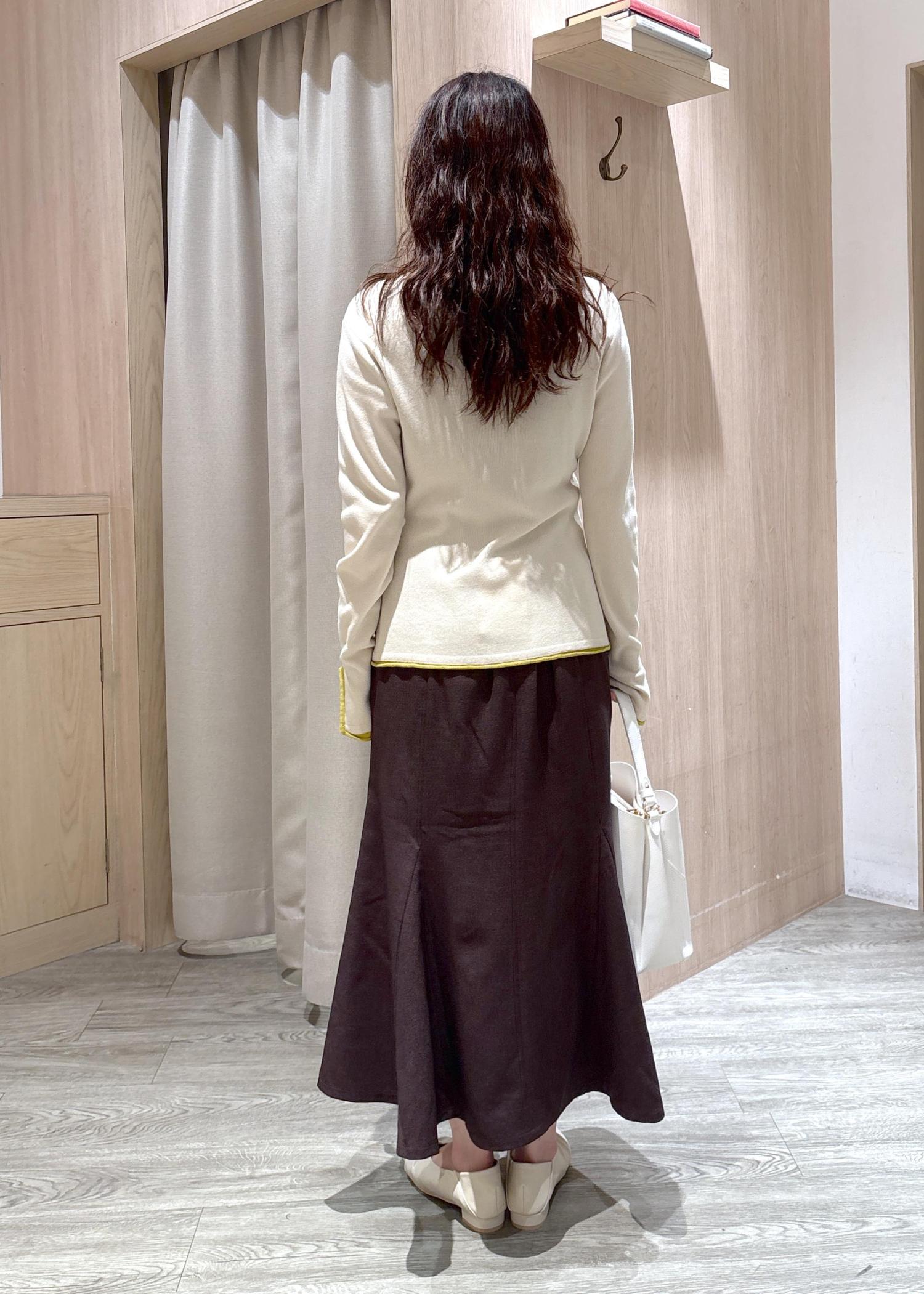 VIS美easyウーリッシュマーメイドスカート/セットアップ対応・イージーケアダークブラウン / S¥6,589レビューSサイズ着用。くるぶしがしっかり見える丈の長さでウエストもぴったりでした。
