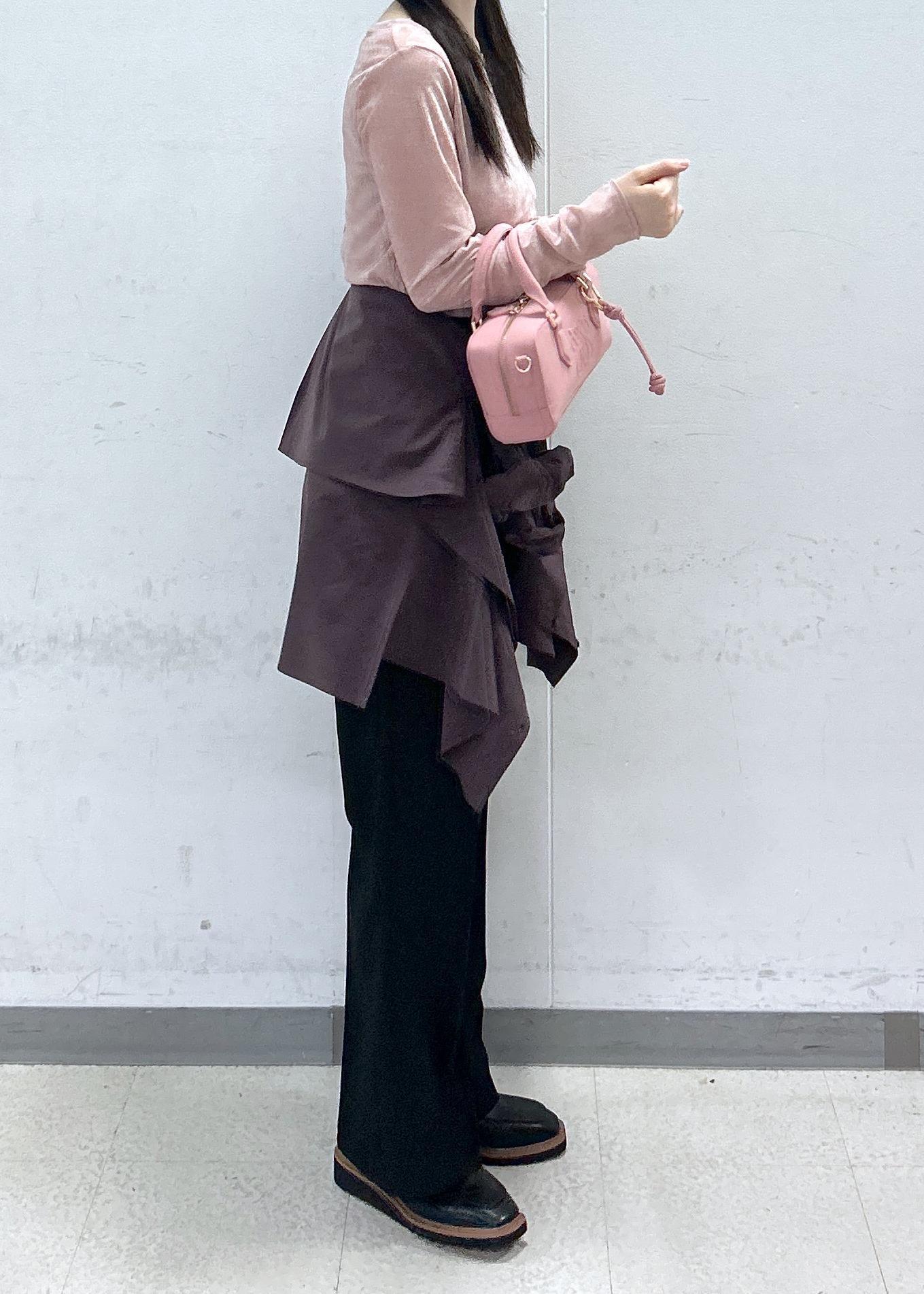 VIS裾ティアードオーバーシャツ/UVケア・イージーケアダークブラウン / F¥3,557レビューティアードデザインが個性的なオーバーサイズシャツです。上半身が寂しくなりがちな骨格ウェーブだと、オーバーサイズはメンズライクな印象になるので、他のアイテムに女性らしい色のものを合わせたり、ボトムにキュッとしたシルエットのパンツやスカートを持ってくるのがオススメです!