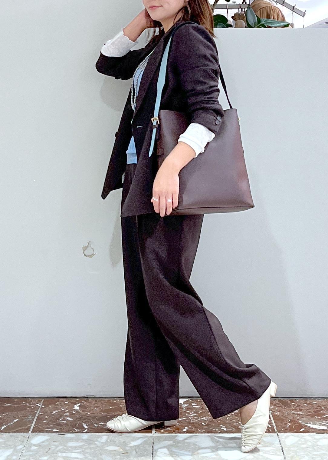 VIS【美easy】ウーリッシュワンタックワイドパンツ【セットアップ対応/洗える】ダークブラウン / S¥6,589レビューダークブラウンが秋にピッタリな1着です。生地はしっかり目で、お洗濯出来るのできるのでお手入れが楽です。普段156センチでSかゆったりめでMを履きますが、Sで長さも丁度良く履けました。