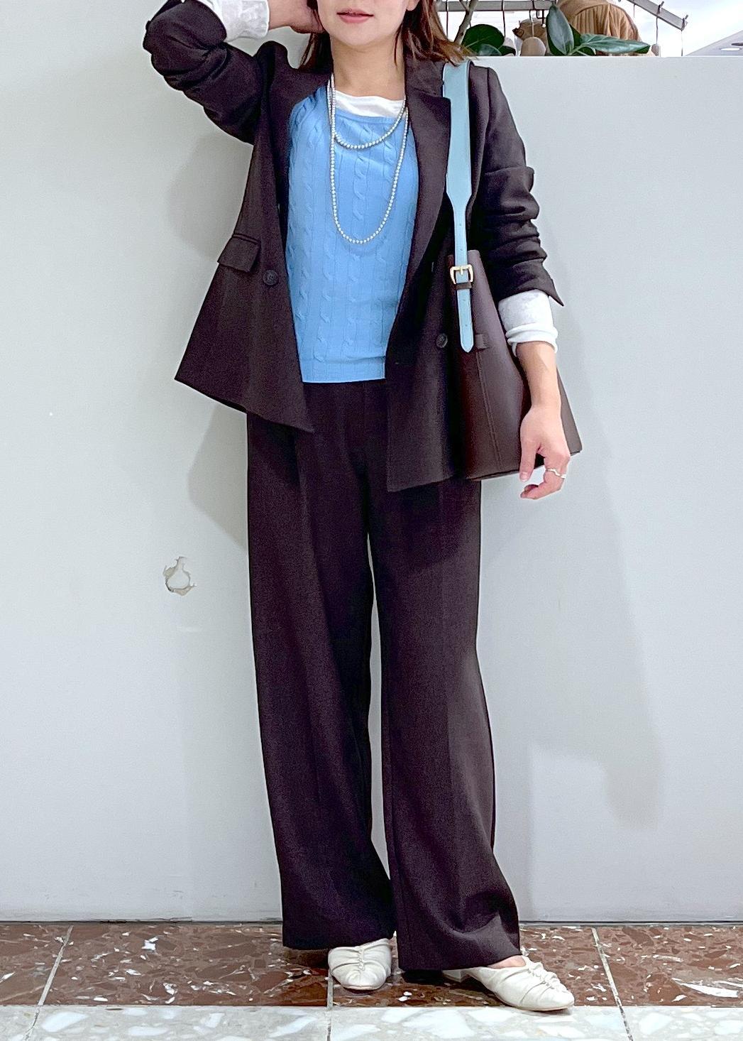 VIS【前後2WAY】ケーブルニットタンクトップサックス / F¥2,633レビューカラーが目を引くトップスです。ニットですが、チクチク感もなくロングTシャツの上に重ねて着ることも出来ました。ベージュはラメがキラキラして可愛いです。ブルーとチャコールはシンプルで合わせやすいです。ジャケットのインナーに合わせて少し色やレイヤードを遊んでみました。