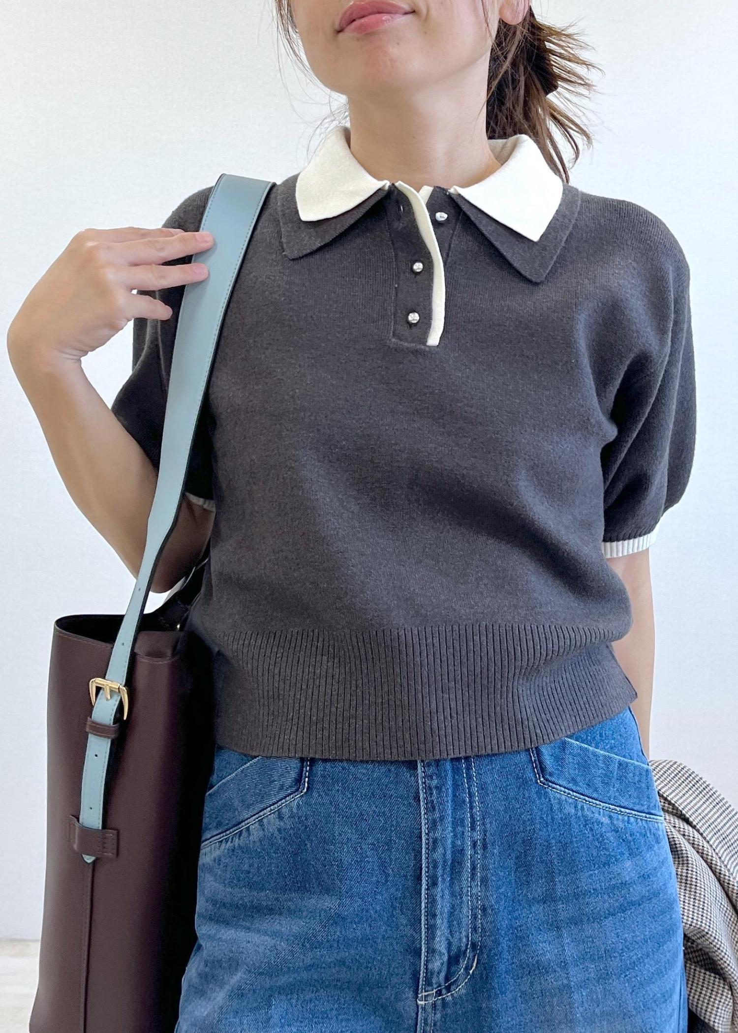 ダブル衿ポロニットでつくるフレンチカジュアル