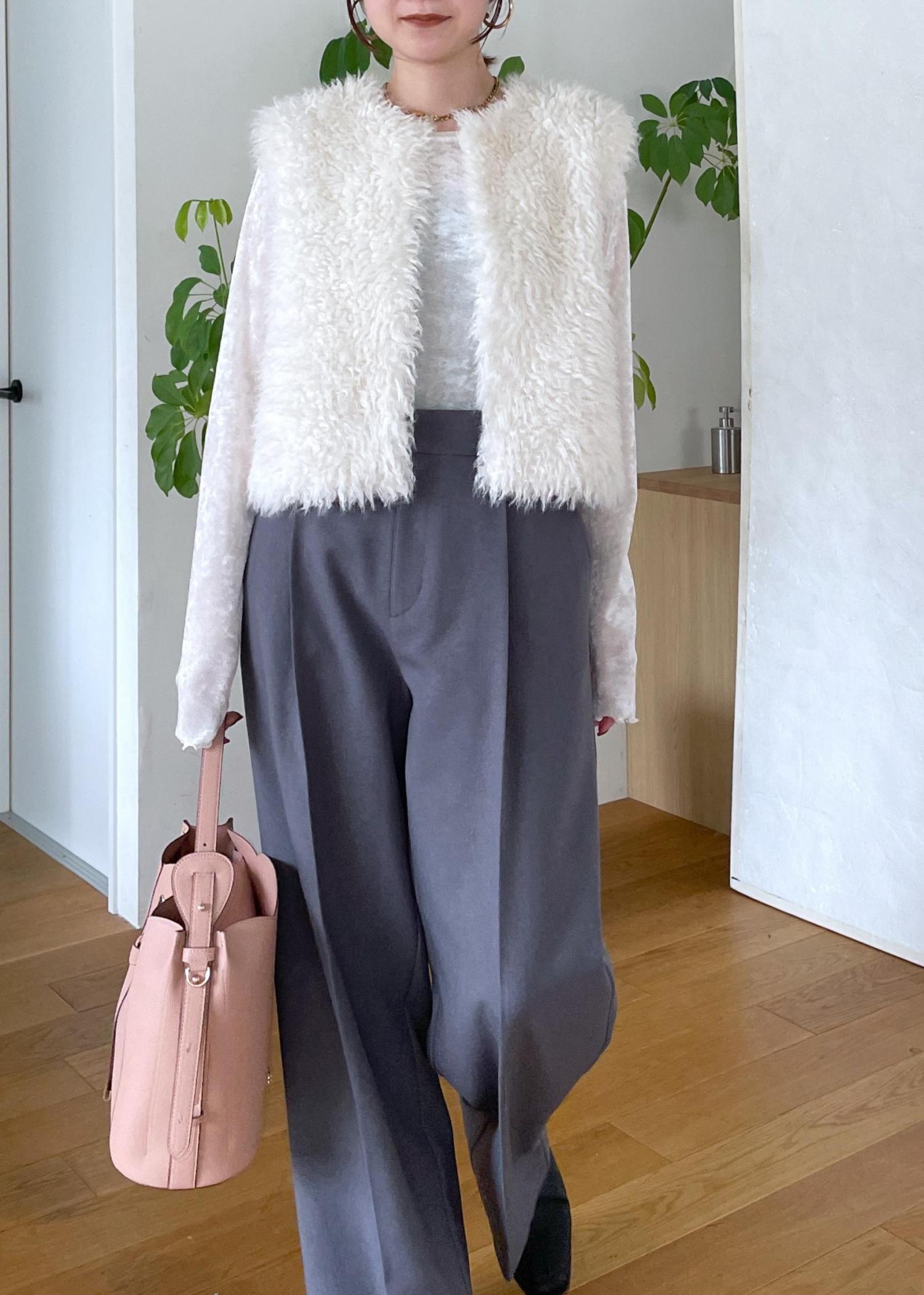 VISアソートファーショートベストキナリ / F¥6,229レビュー一気にトレンド感の出るファーベスト♡程よいボリューム感、骨ストのわたしも上半身の厚みを気にせず着れました!コンパクトな丈感なのでボトムは選ばず合わせやすいです◎綺麗め〜カジュアルまで色んなシーンで着用できます!