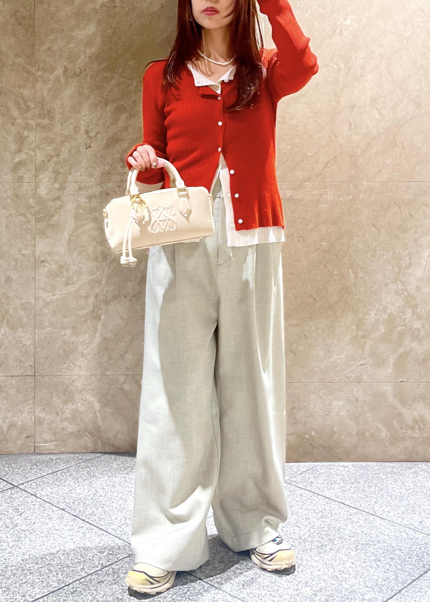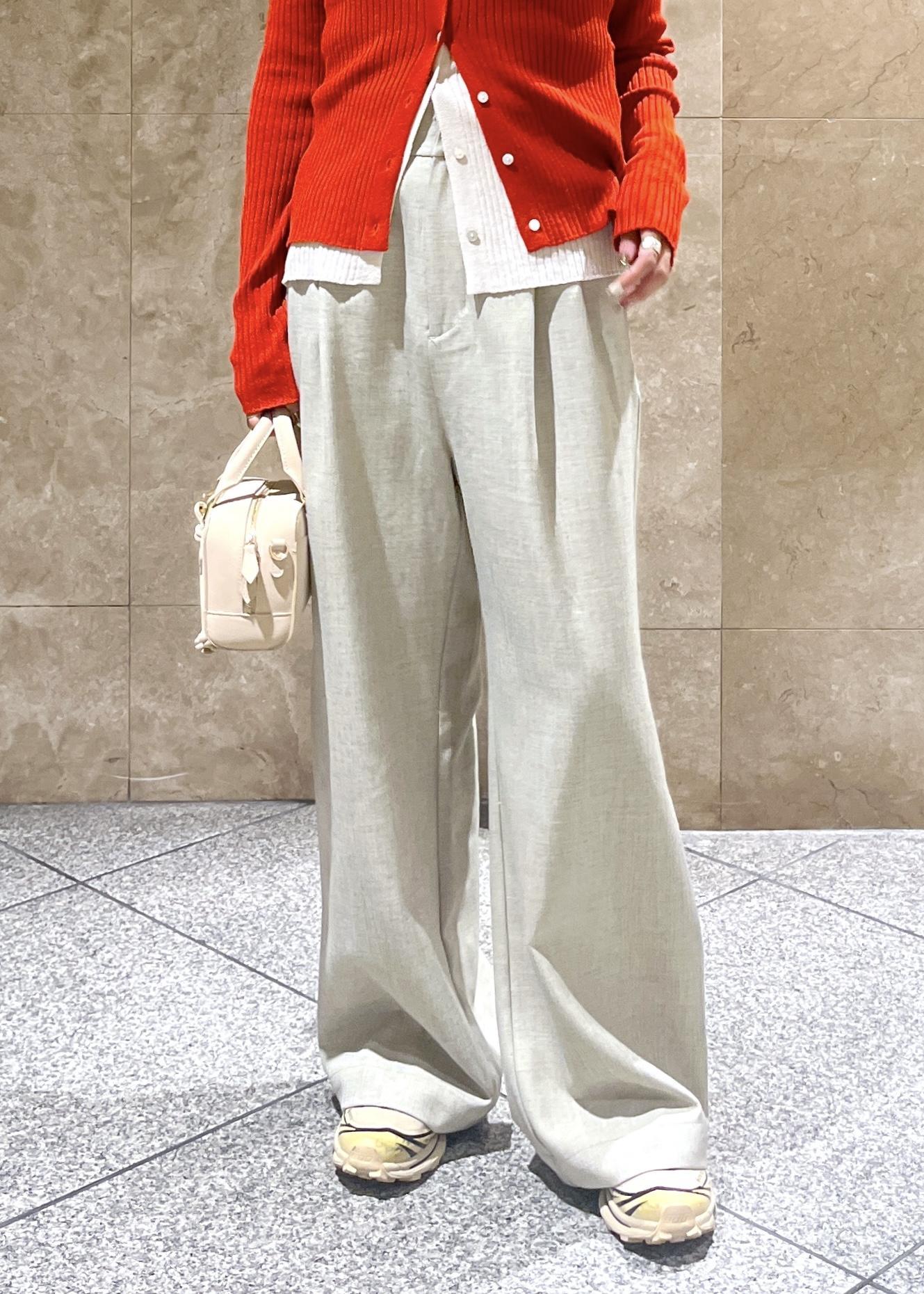 ほどよい厚みの素材感で落ち感もあるため、楽ちんな着心地ながら女性らしくも、またカジュアルにも着られてコーディネートの幅も広い!