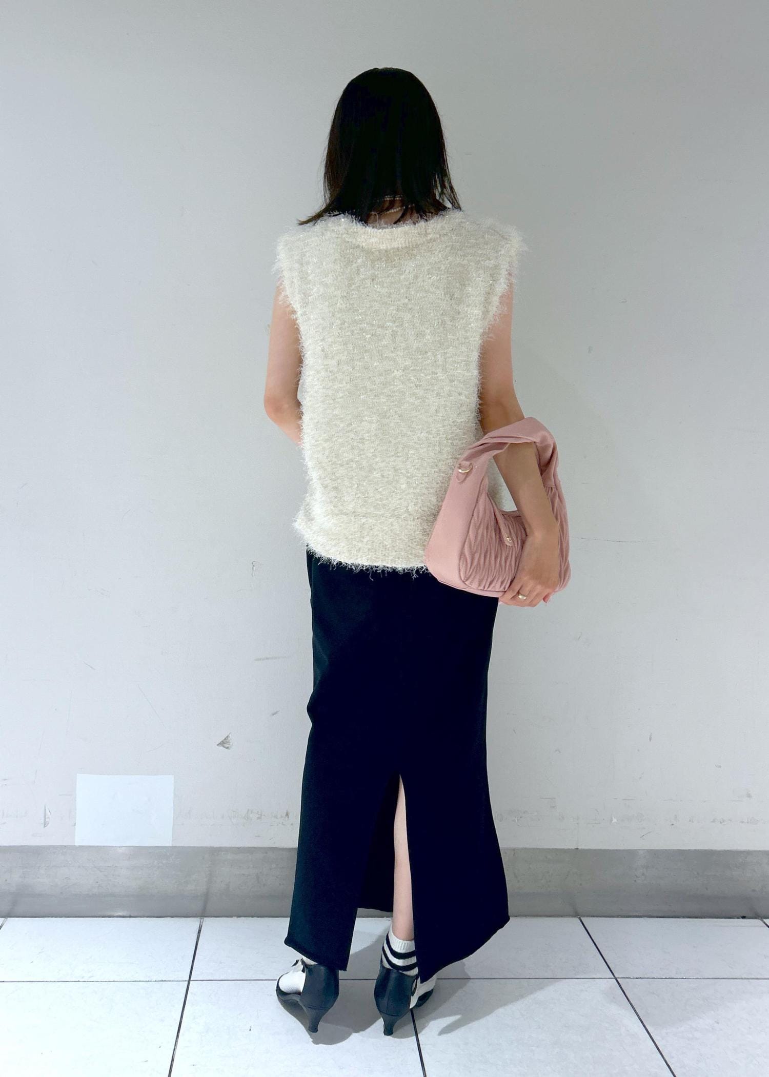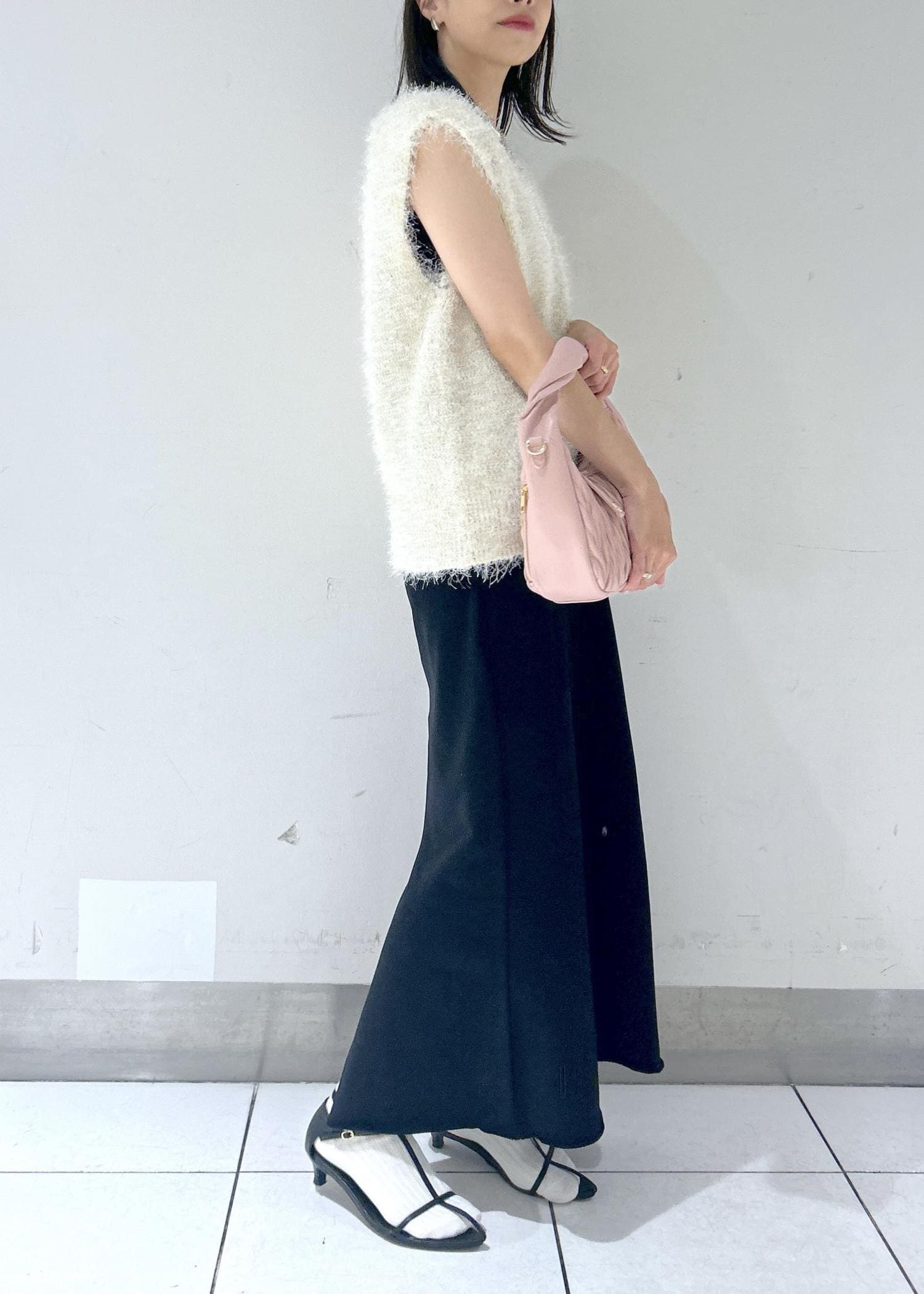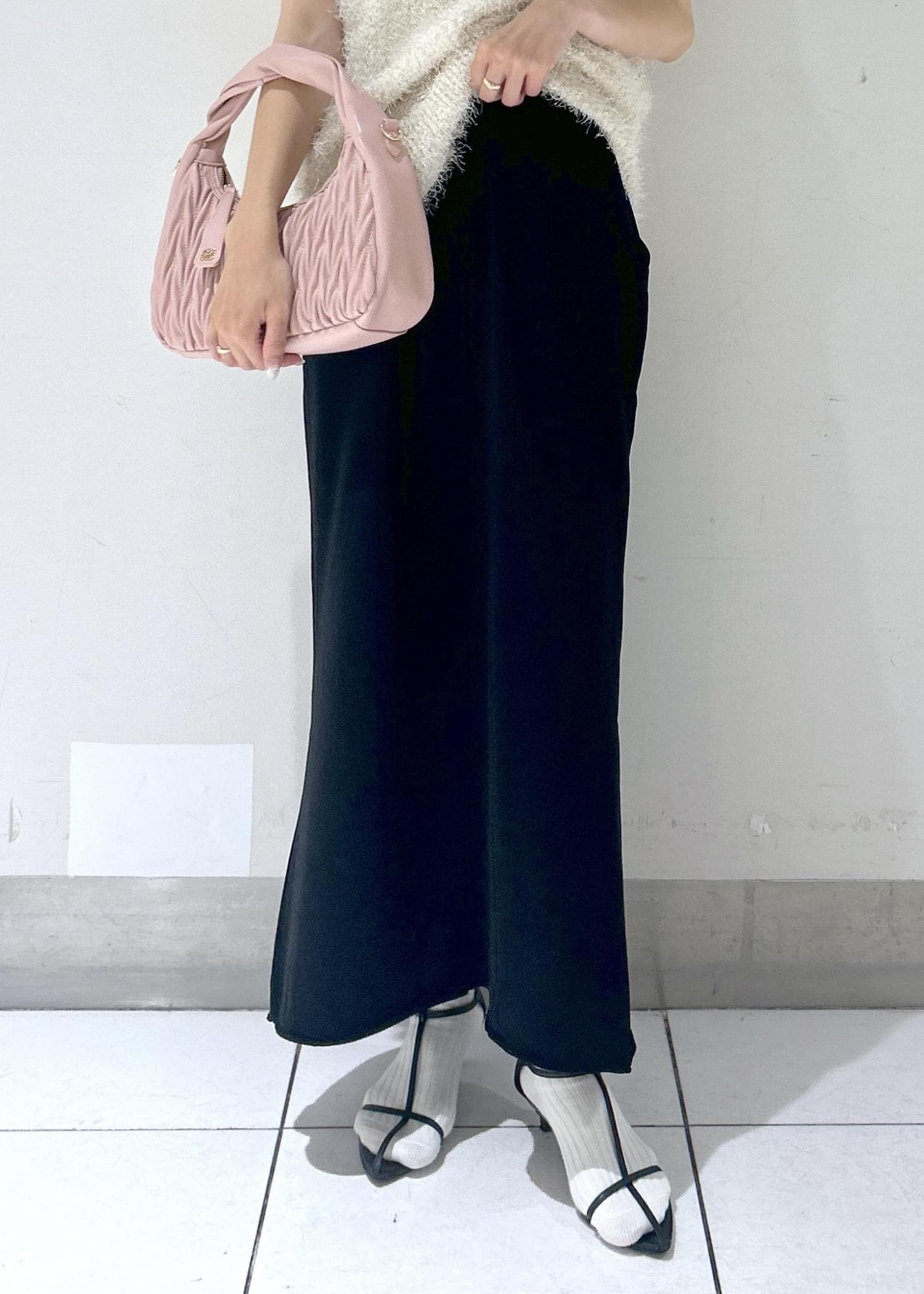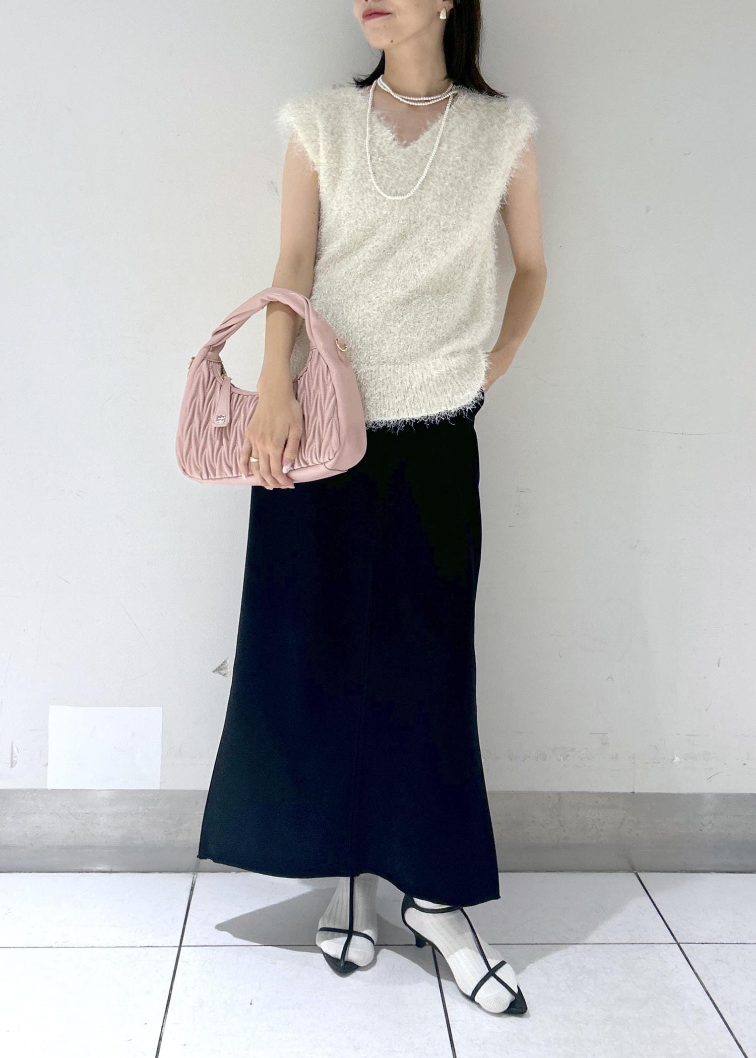 ナロースカートで合わせた女っぽスタイル。