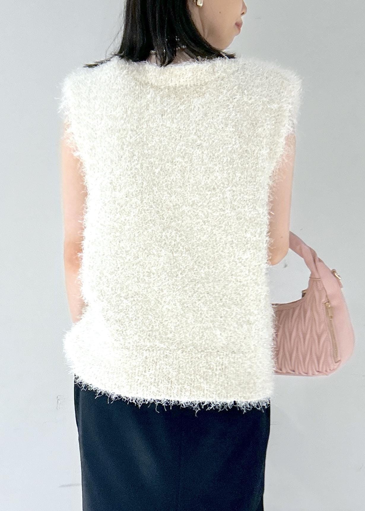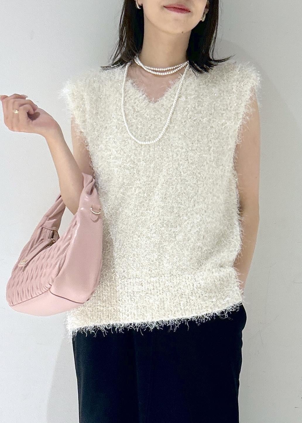 VIS【WEB限定サイズ:MT/着丈が選べる】【洗える】フェザーヤーンニットベストキナリ / MT¥3,293レビュー身長164cmでお尻にかかるくらいの丈感。