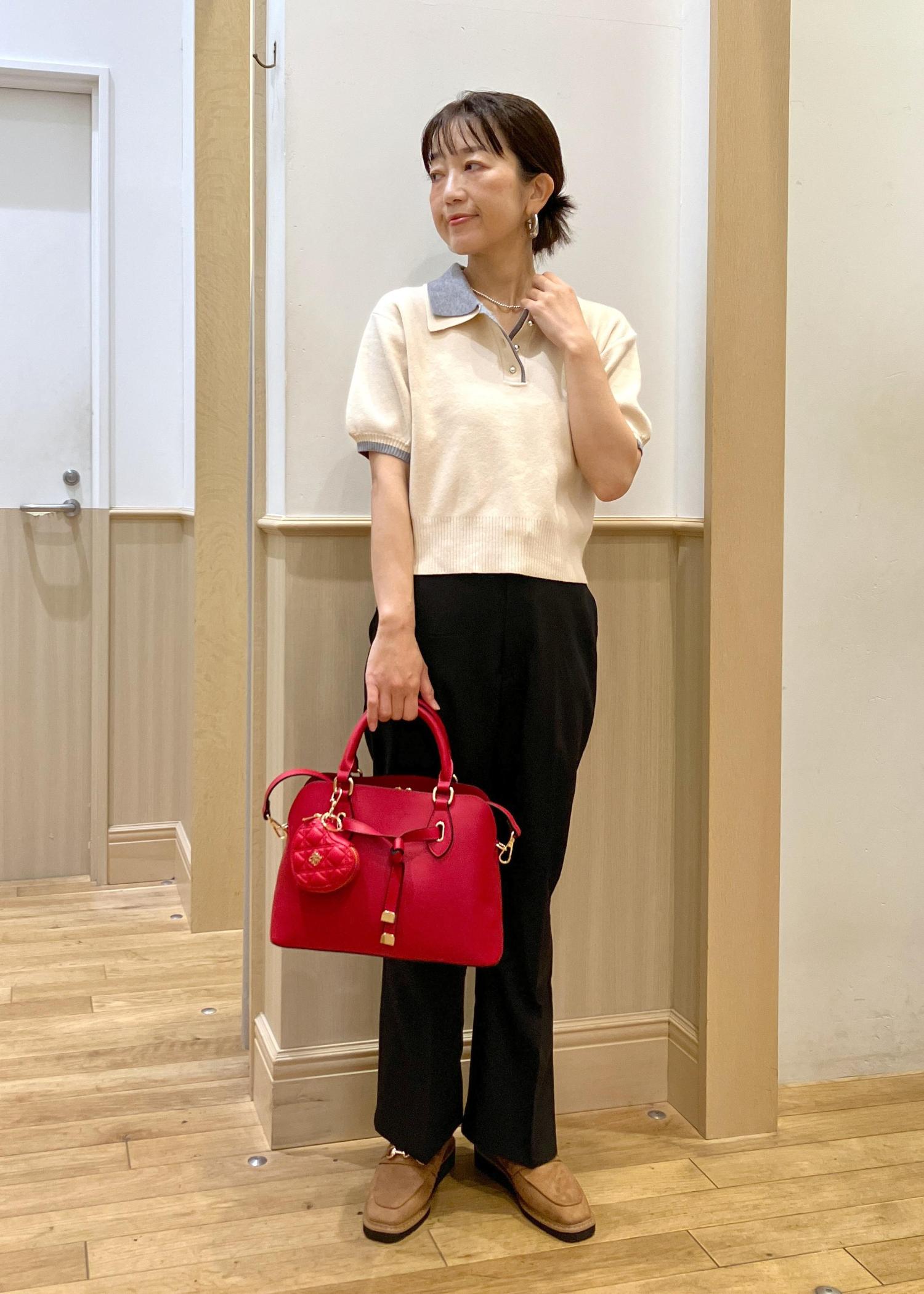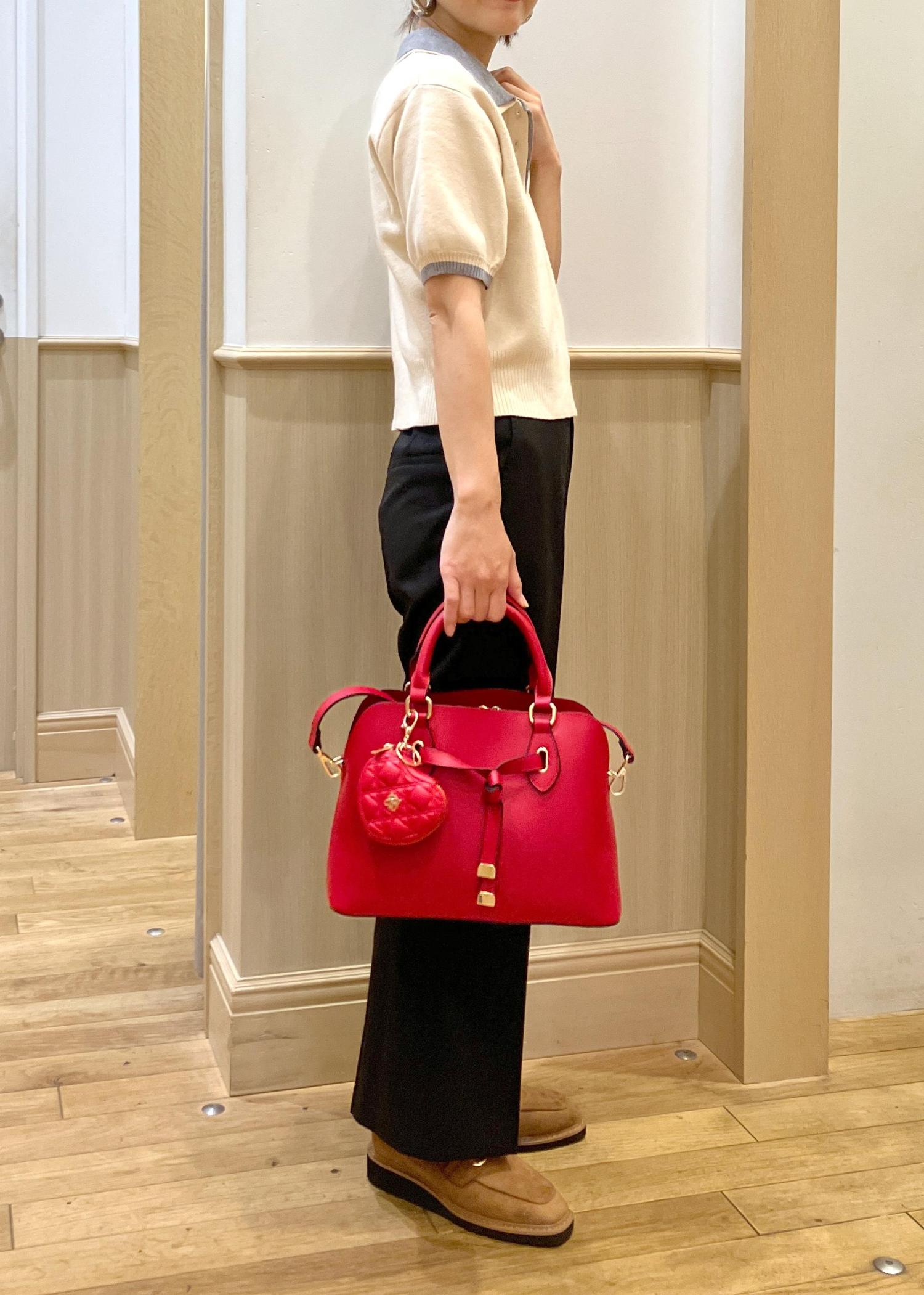 トレンドの真っ赤なレッドカラーのbagもポイントです。