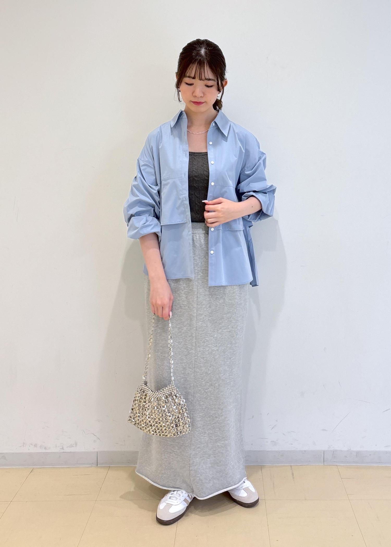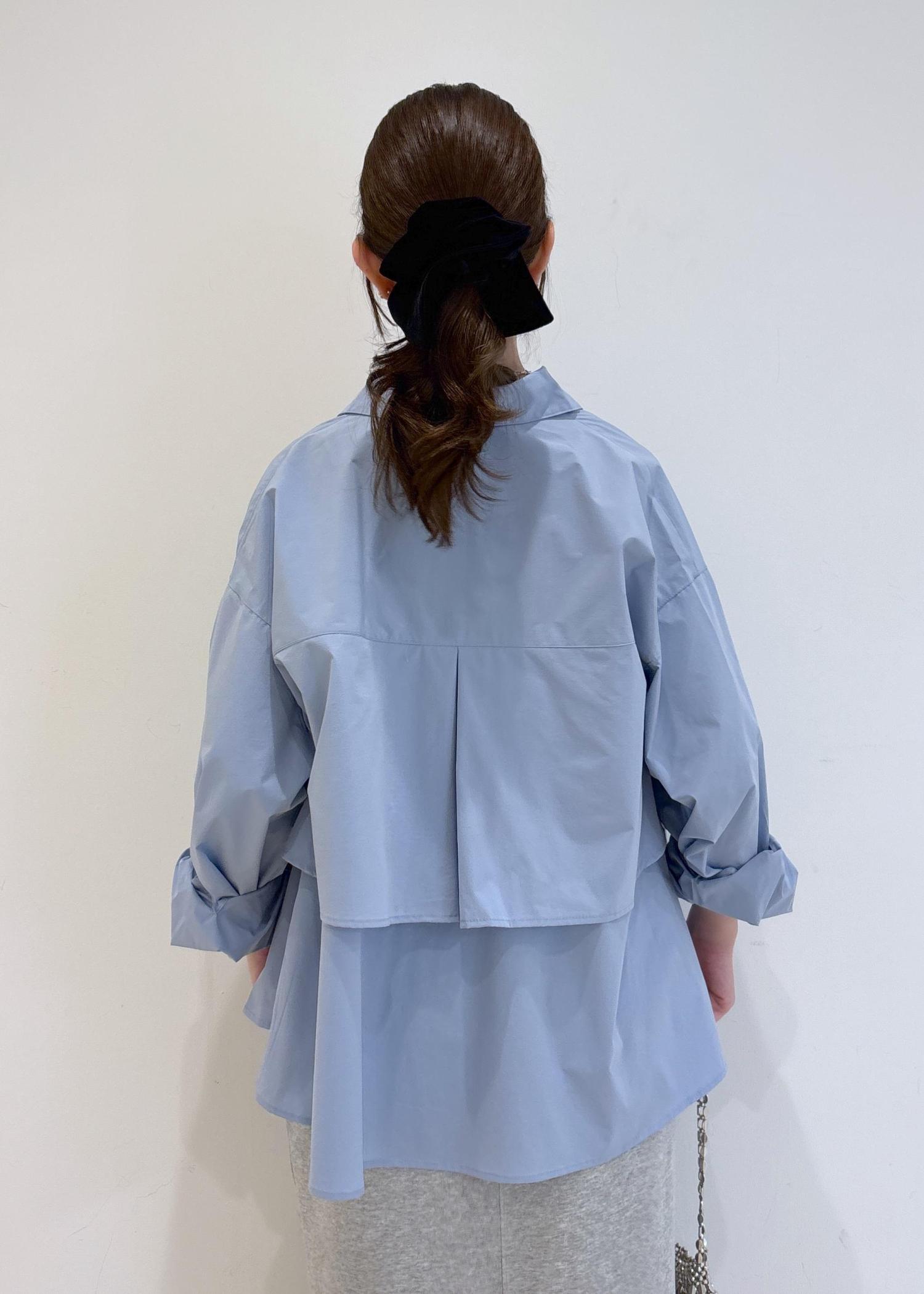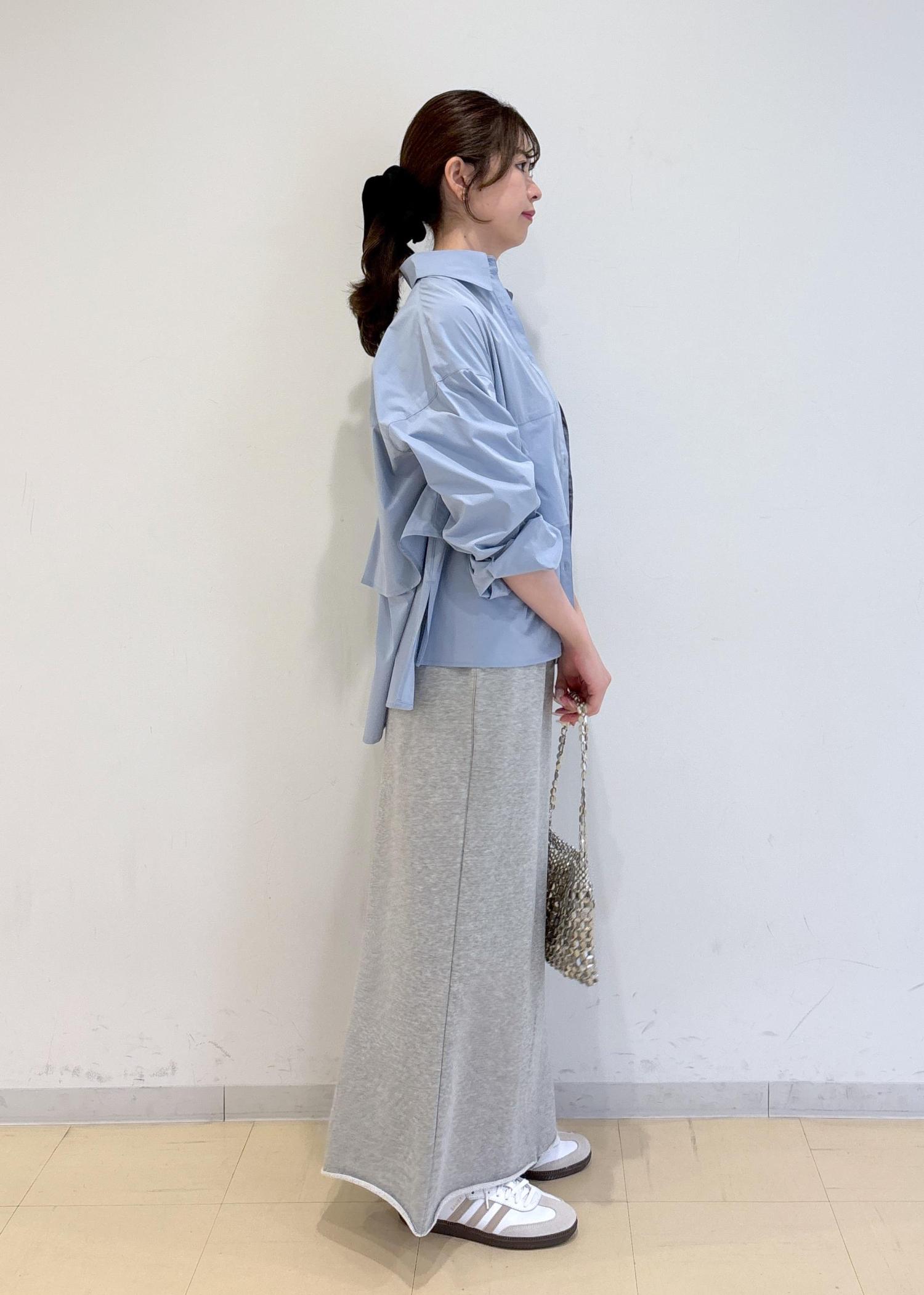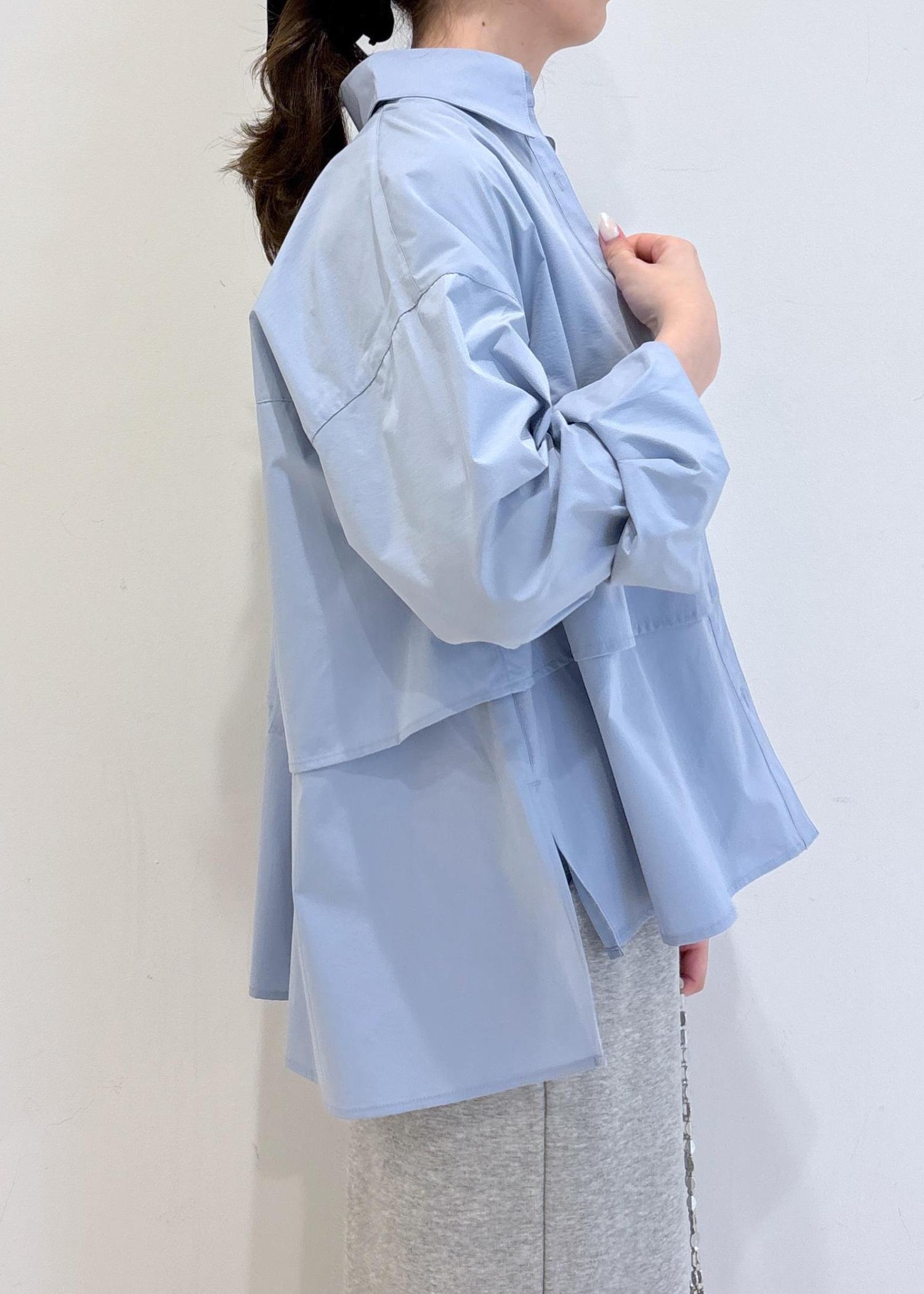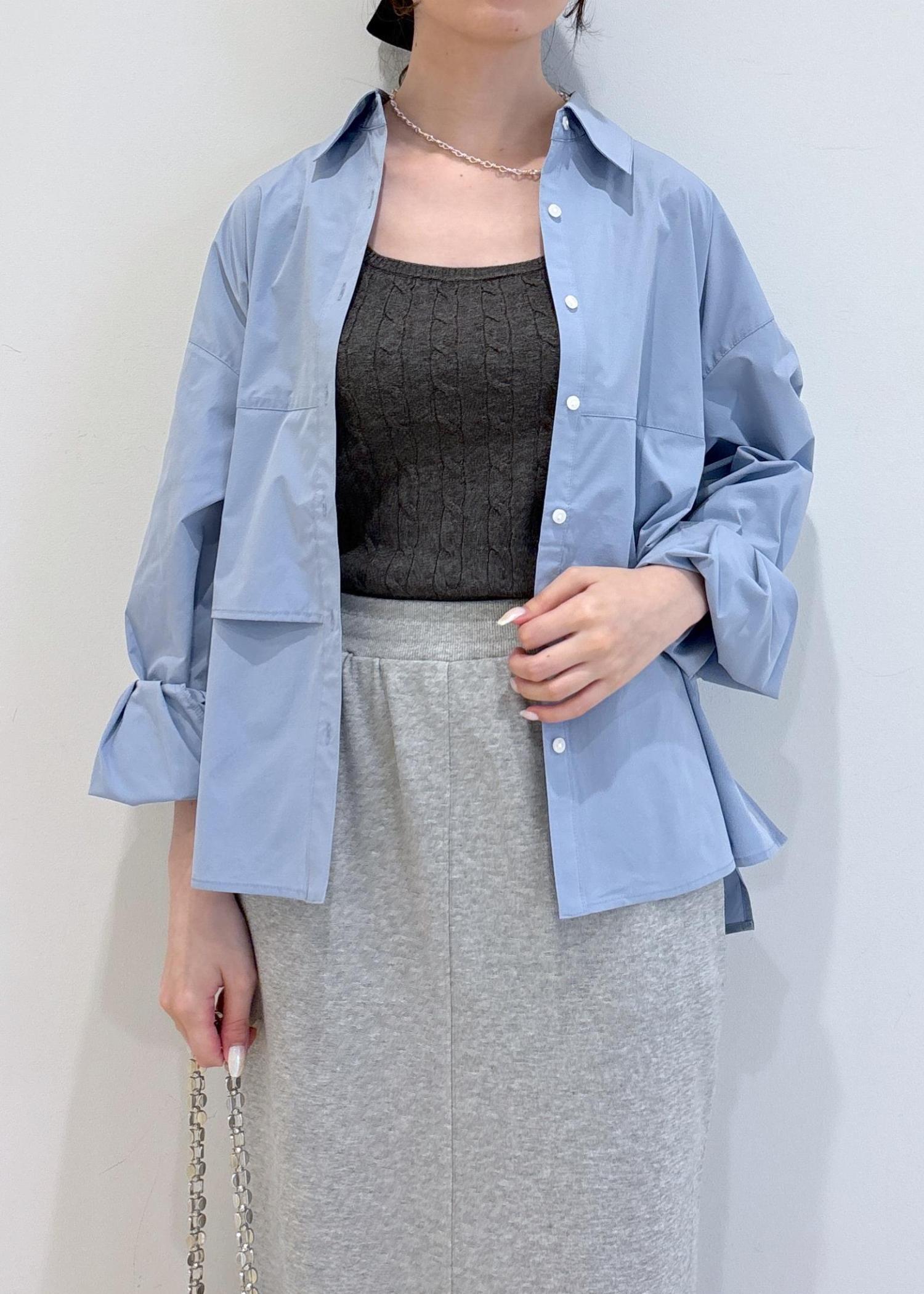 ボリューム感があるシャツでも、落ち着いたブルーの色味で軽さがあります!