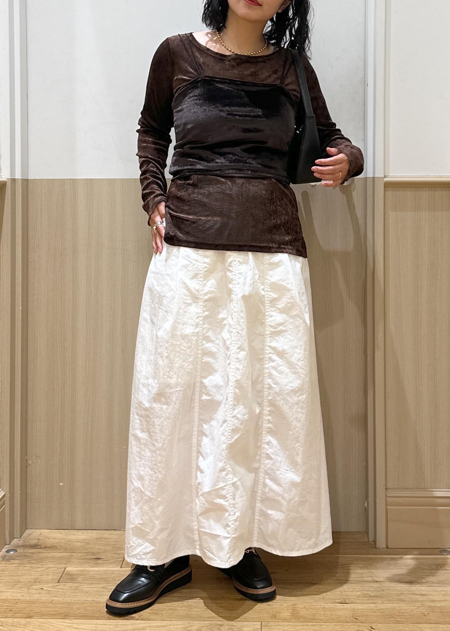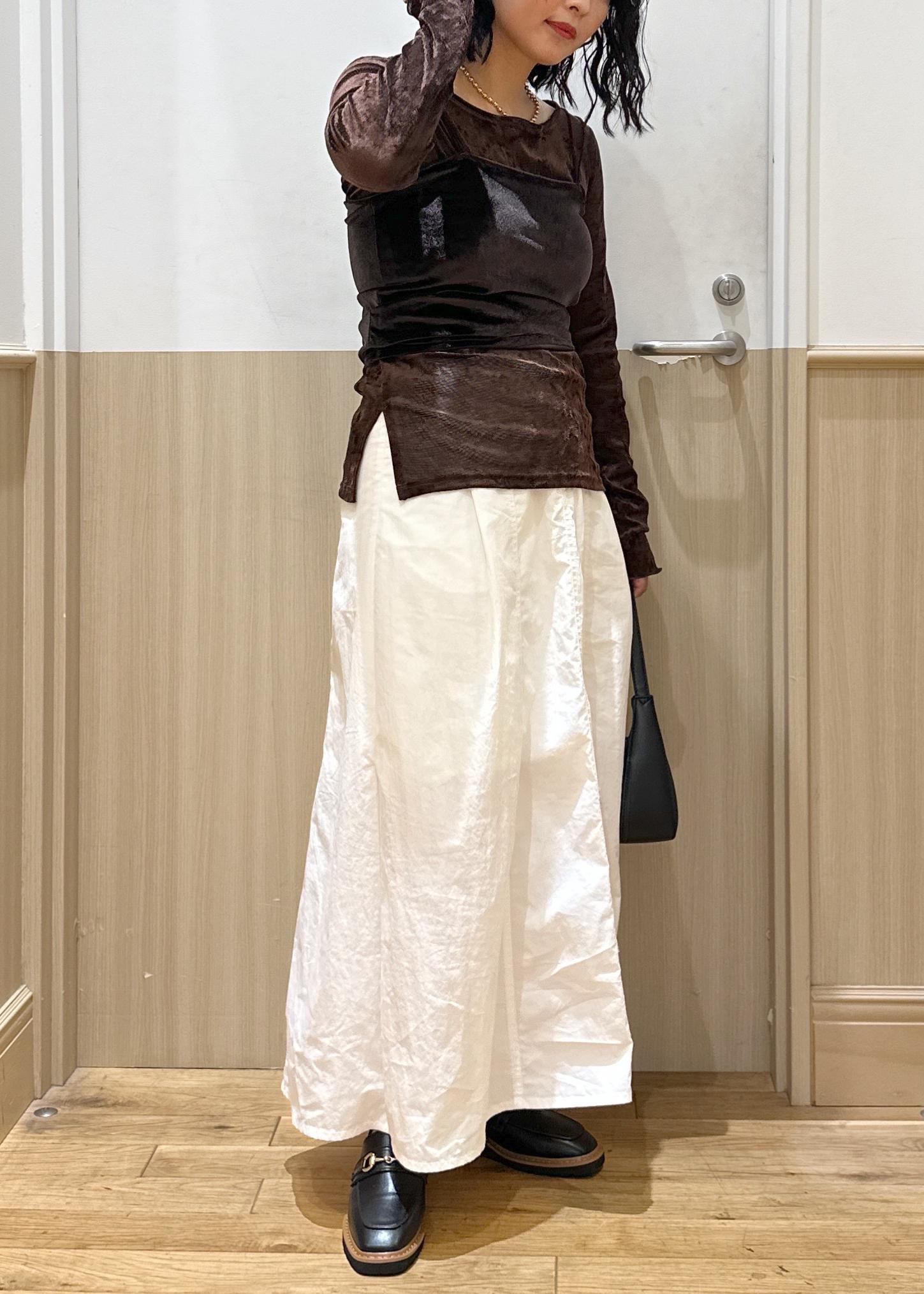 トレンドのベロア素材、カーデやシャツのインナーに合わせて今年らしいコーデに! -