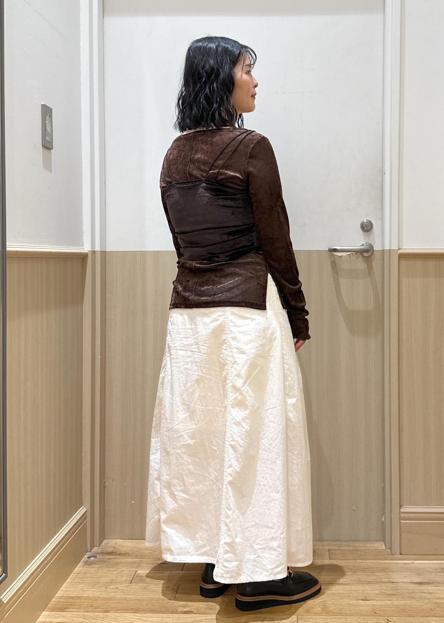 VISウエスト切替デザインフレアスカートオフホワイト / F¥3,953レビュー157センチ、骨格ウェーブ、ちょうどくるぶしにくる丈感です。