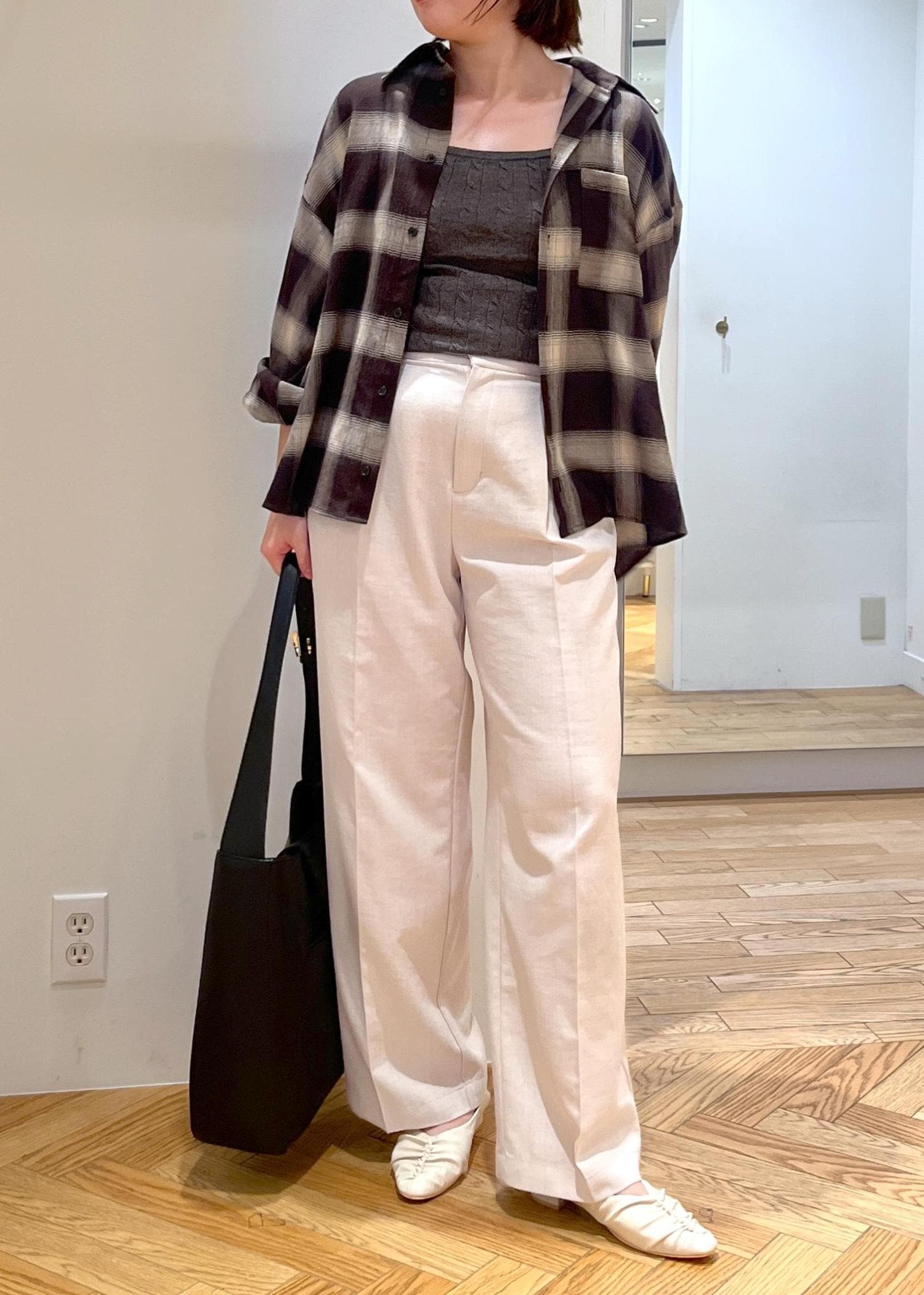 インナーは秋っぽさを感じさせるケーブル柄のニットタンクトップをイン!